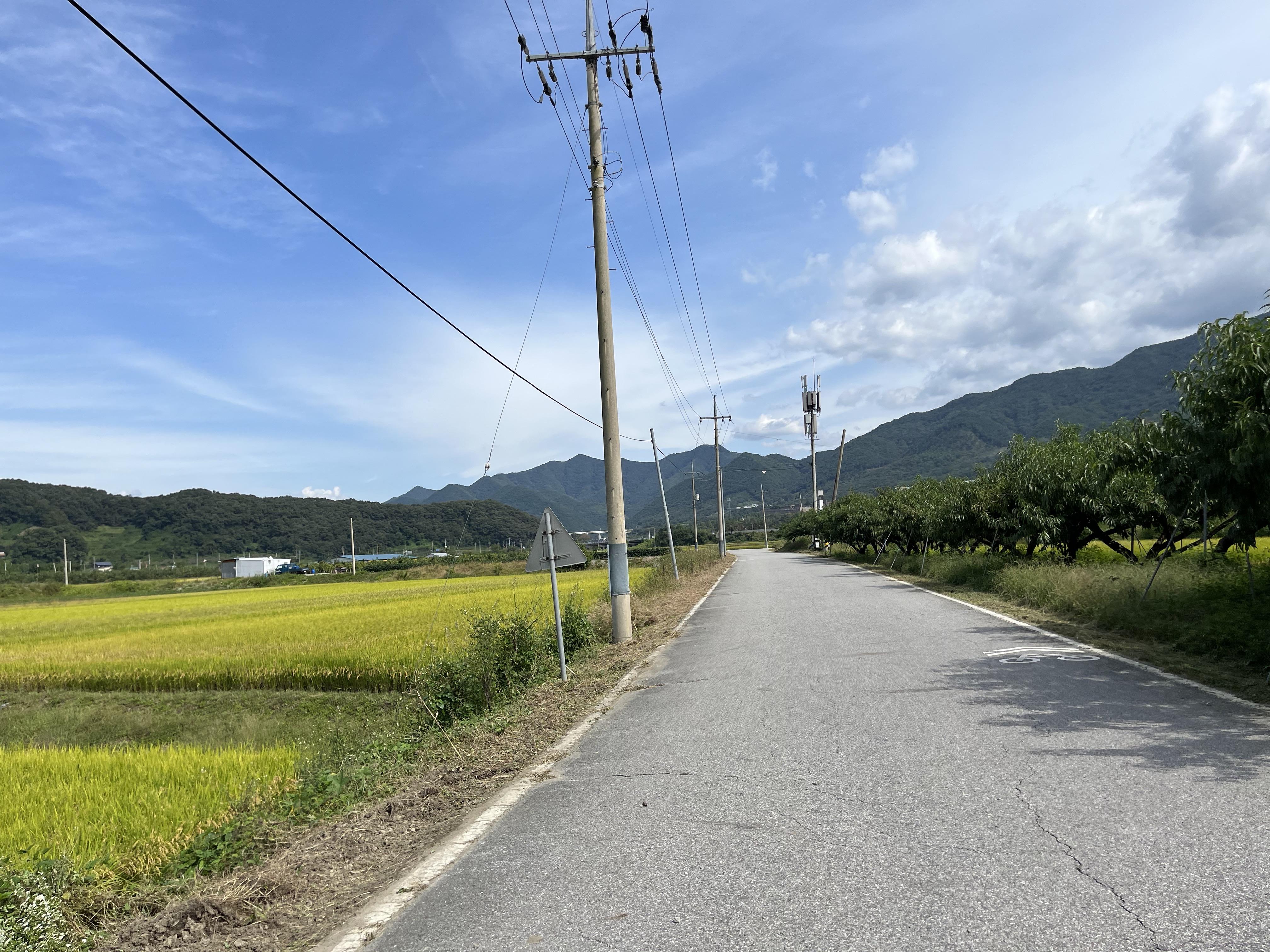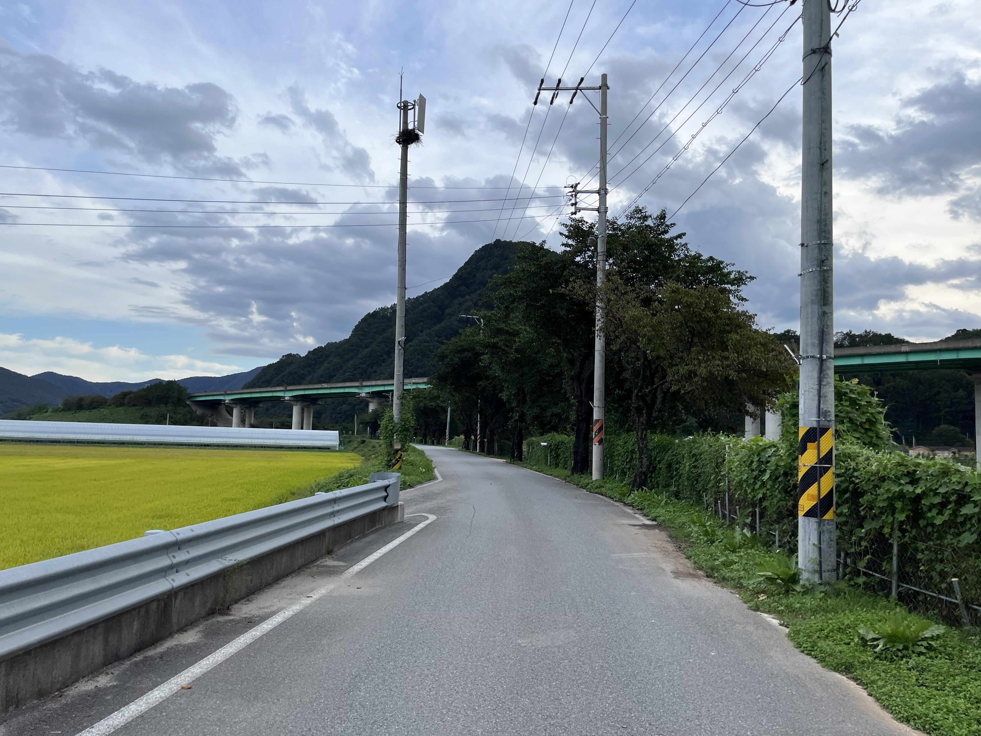 문경 시내를 지나면 다시 아무 것도 없는 농로를 달리게 된다. 나는 한 번 가봤던 길에 대한 기억력이 꽤 좋은 편인데 이상하게 이 쪽을 달리면서 '왜 예전에 이 쪽에 왔던 기억이 없지?' 하고 계속 의아했었는데 잘 생각해보니까 내가 전에 달렸던 날은 비가 미친듯이 와서 진짜 앞이 아무것도 안 보였었어서 기억을 못 하는 것 같다. 진짜 그 날만 생각하면....