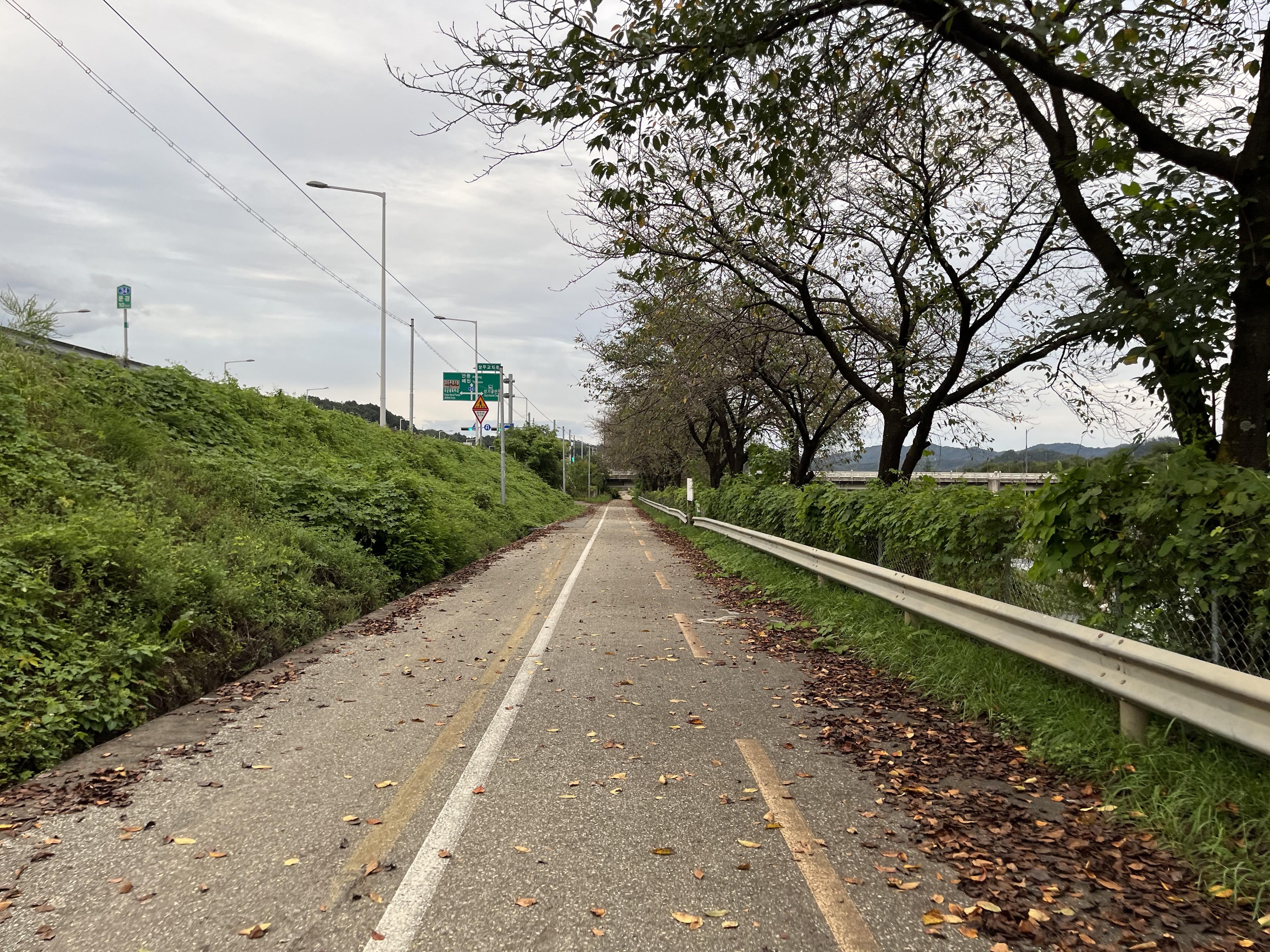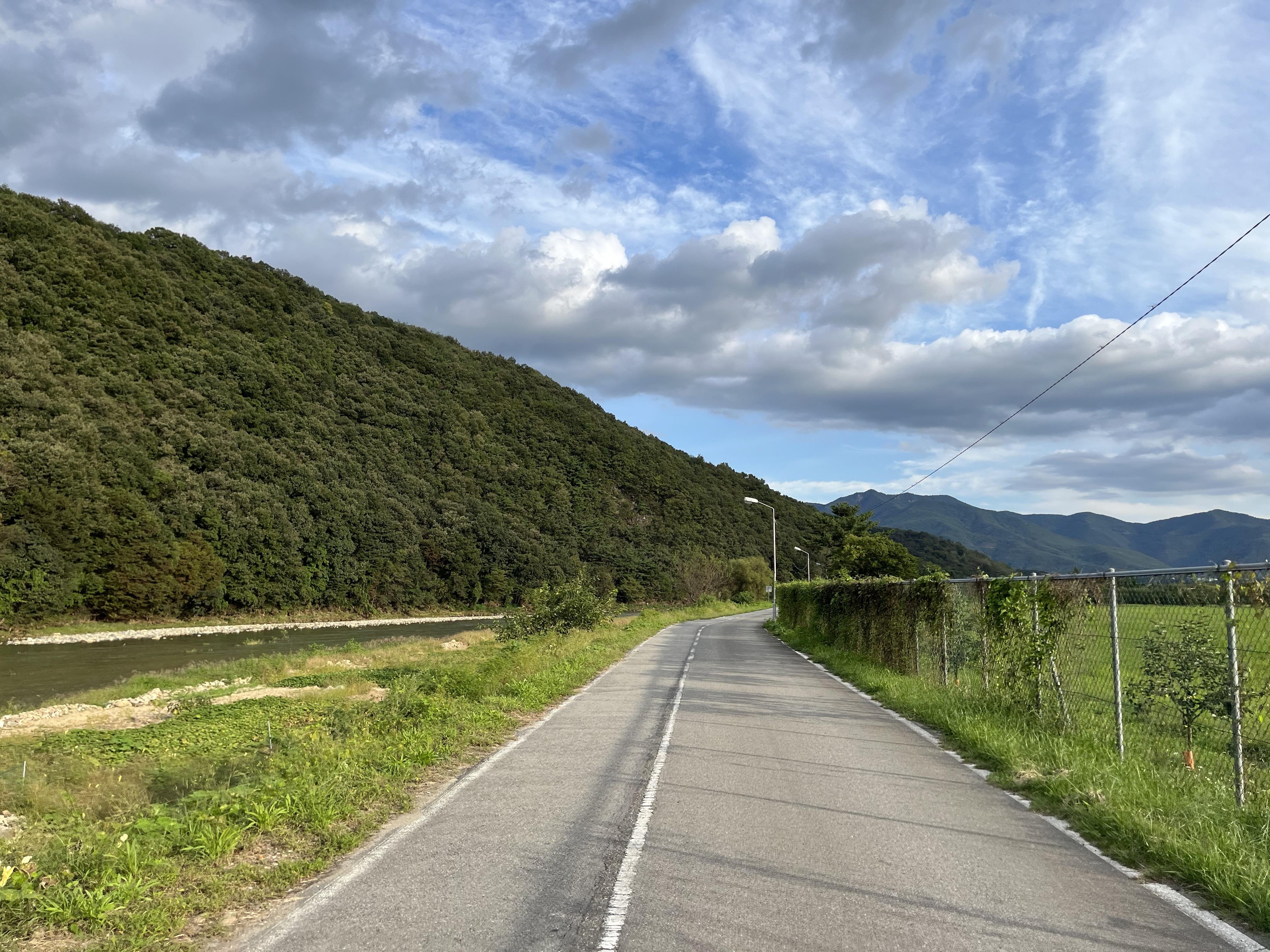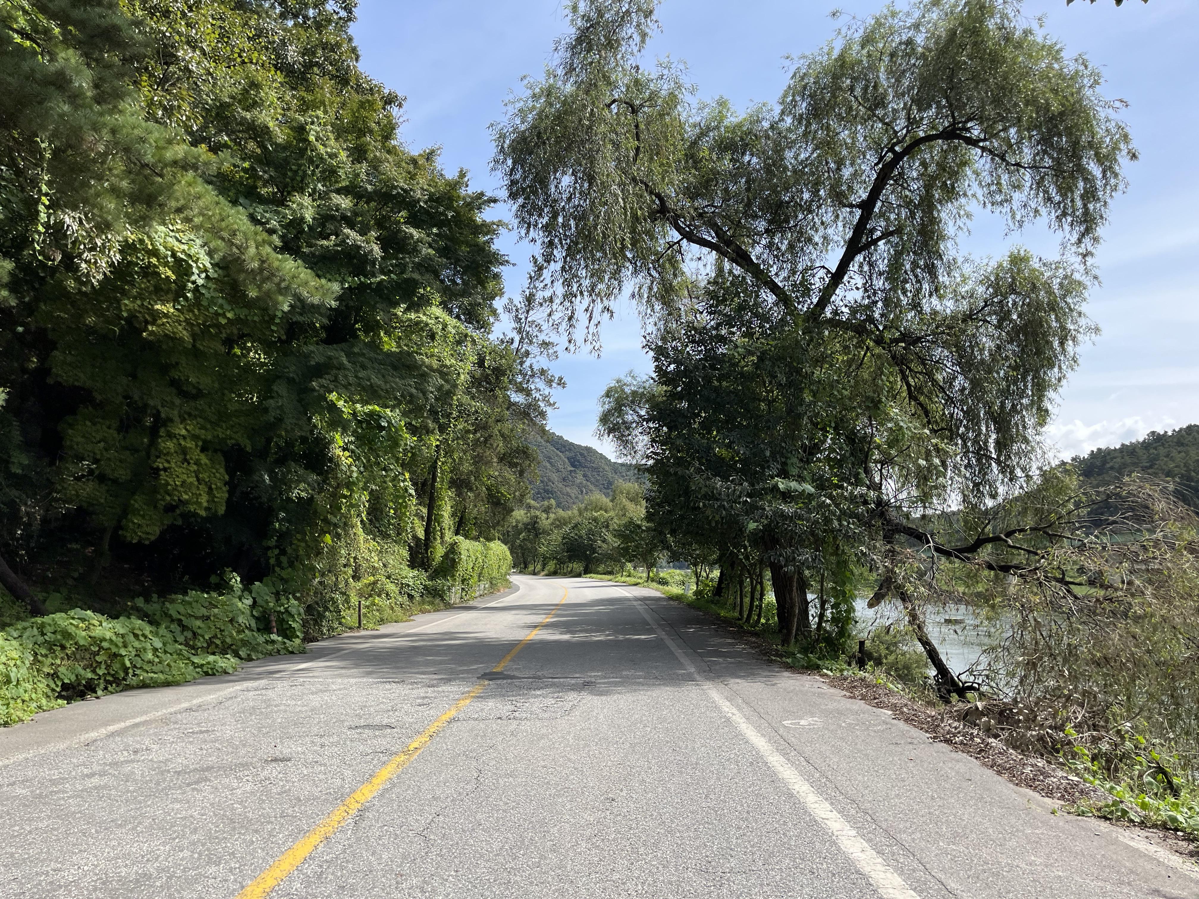 이 쪽 구간은 전에 왔었을 때도 자전거 도로의 상태는 꽤 좋은 편에 속했었는데 포장을 새로 한 구간이 많은지 이전보다 길이 더욱 좋아진 듯한 느낌이었다. 거기다 경치도 너무나도 예뻤는데 9월 말인 지금 이 시기에도 꽤 예뻤으니 10월 달에 이 쪽 코스를 달린다면 그야말로 황금물결 속에서 라이딩을 할 수 있을 것 같다.