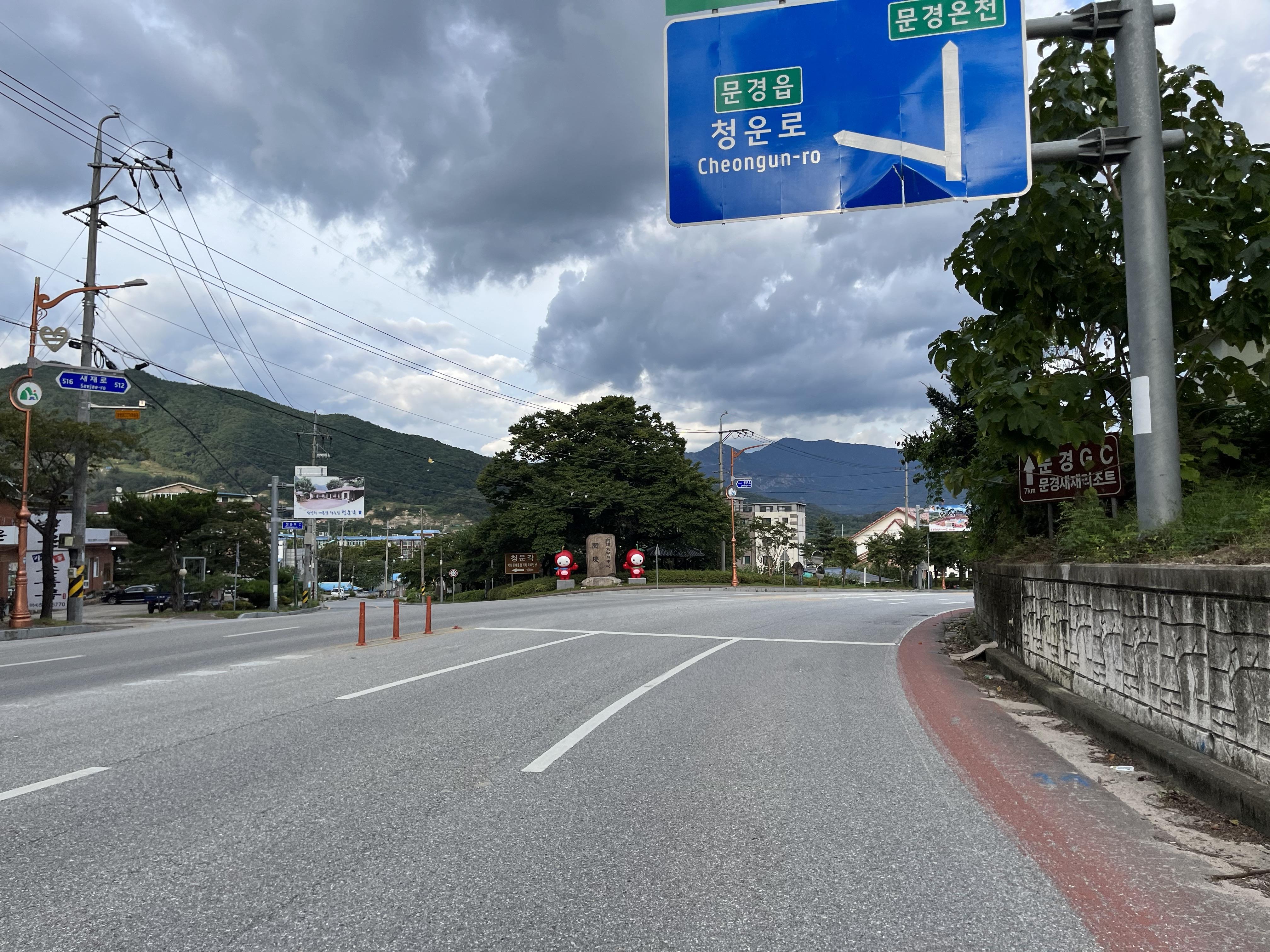 이화령 고개의 대략 7km 정도 되는 신나는 다운힐이 끝나면 문경 시내로 들어서게 된다. 여기까지 올 때까지도 그랬지만 문경 시내에서도 어느 정도 공도를 이용해서 이동을 해야 하는데 지금까지와는 다르게 차량 통행량이 조금 있는 편이므로 차량에 조심해서 이동하도록 하자.