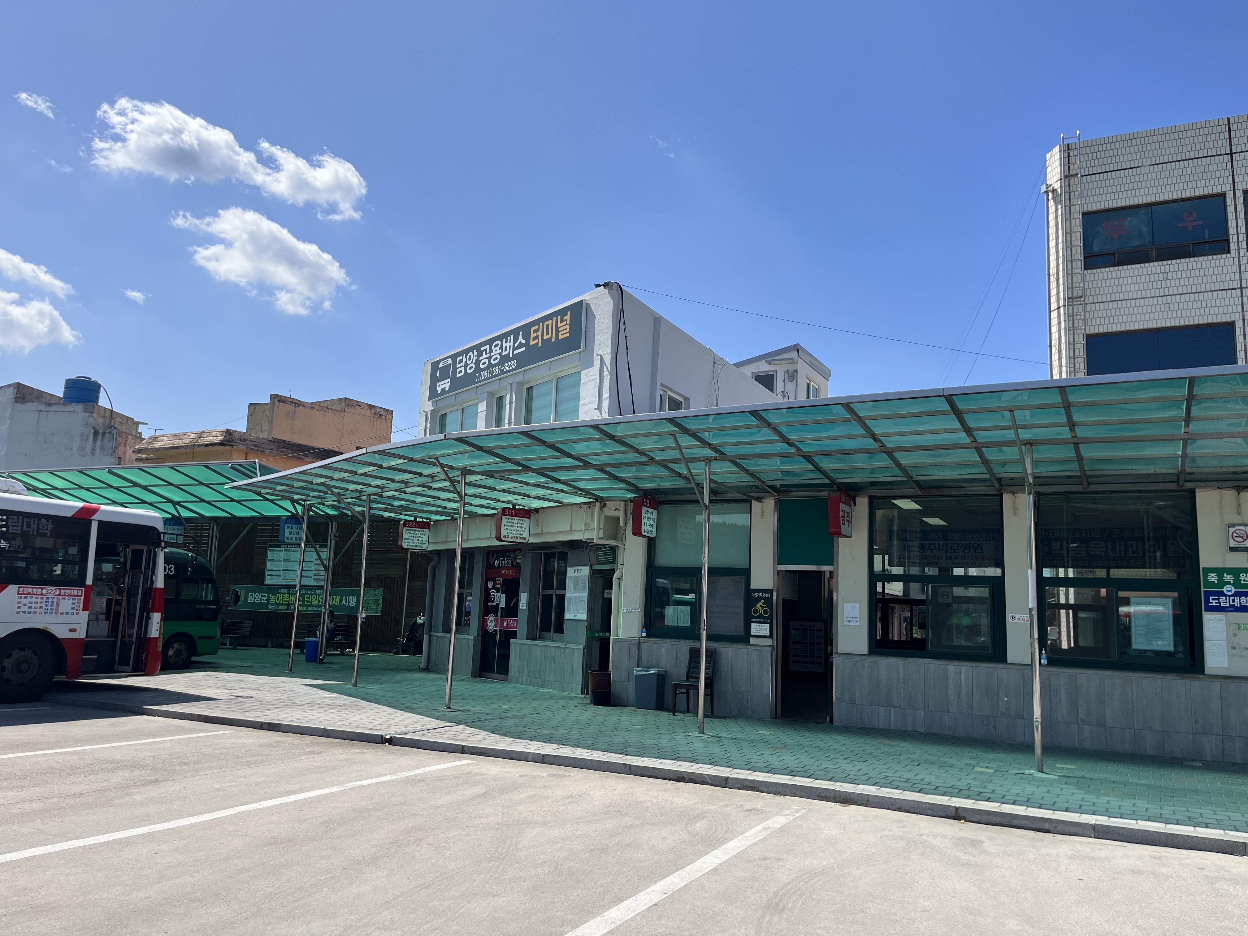 버스는 정확히 아침 8시 10분이 되어서 출발했고 중간에 휴게소에 한 차례 들려 휴식을 취하기도 하면서 정확히 4시간을 달려 담양공용버스터미널에 도착했다. 보통 버스를 타고 가면 예정 시간보다 30분 정도씩 늦는 게 국룰인데 이 쪽으로 가는 도로는 막히지 않나보다.