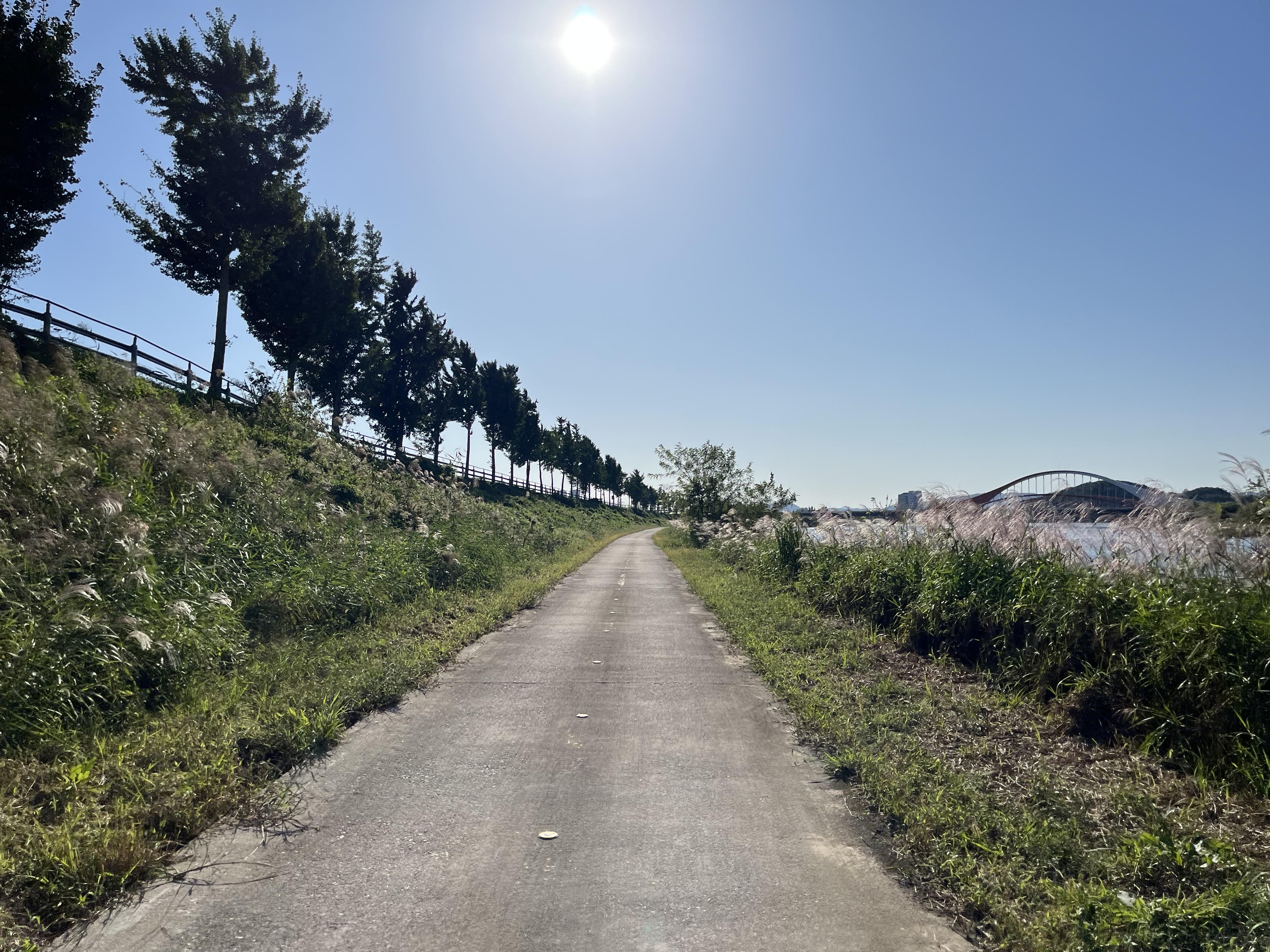 정답은 어차피 같은 경로로 달리고 결국에는 뚝방길에서 만나게 되니까 달리고 싶은 곳으로 달리면 된다. 우리는 뚝방길로 쭉 달렸는데 달리면서 보니까 뚝방 밑 하천길은 비가 온건지 물이 넘친건지 도로가 젖어있는 곳이 많았다. 그러니까 반드시 여기로 달려야 한다 라는 법은 없고 그 때 그 때 상태를 보면서 달리도록 하자.