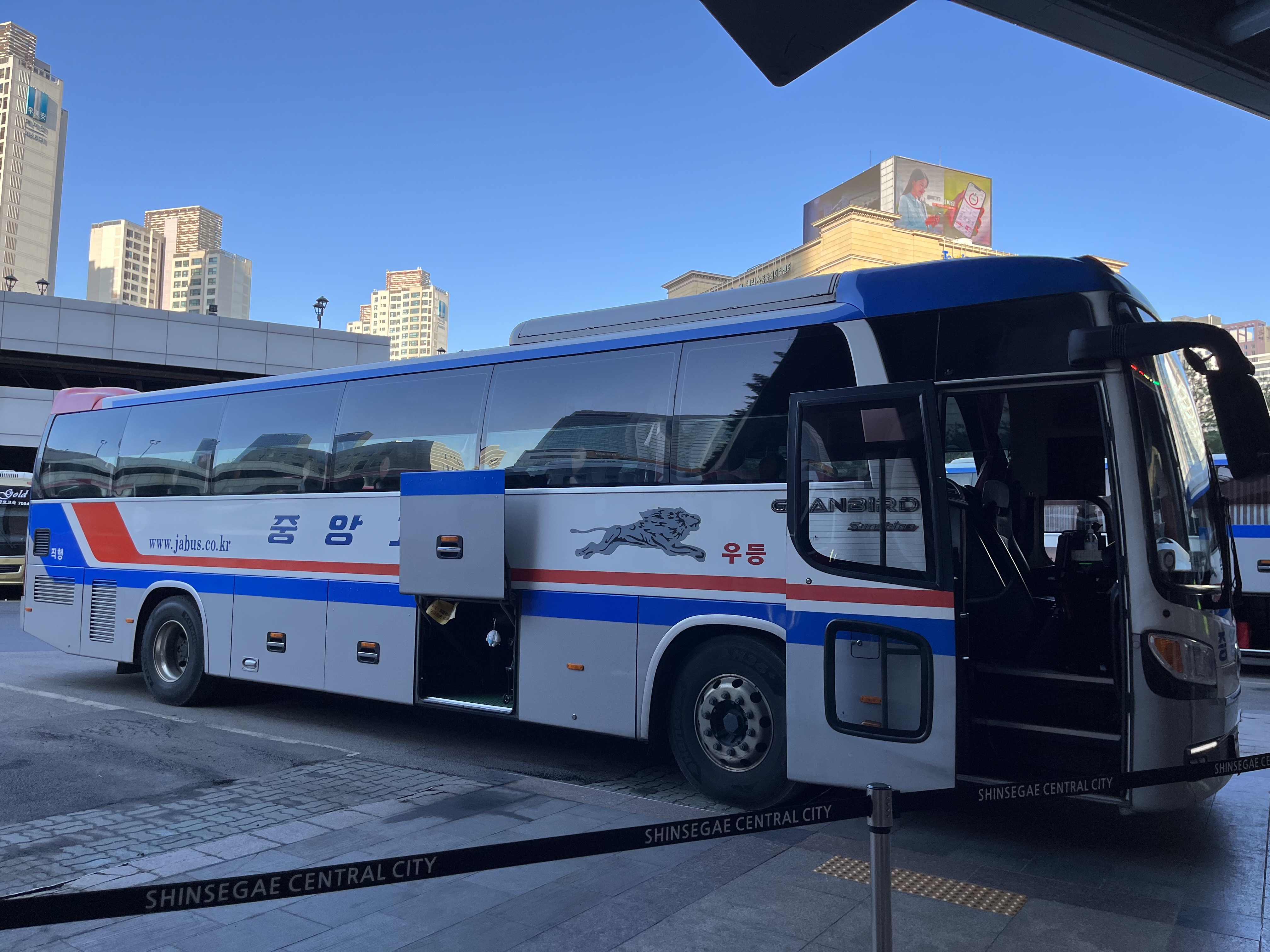 센트럴시티 터미널을 살짝 둘러보고 내가 타야하는 듯한 버스가 벌써 승차홈에 도착해있는 것 같아서 밖으로 나가봤더니 이미 MTB 를 갖고오신 분과 로드를 갖고오신 분이 자전거를 싣고 계시길래 나도 자전거를 미리 싣고 있었는데 기사분이 이거 자전거 이렇게 세우면 안 넘어져요? 라고 물어보셔서 안 넘어진다고 안장을 뽑아서 천장에 거치하는 걸 보여드렸더니 오~ 하고 감탄을 내뱉으셨다. ㅋㅋ