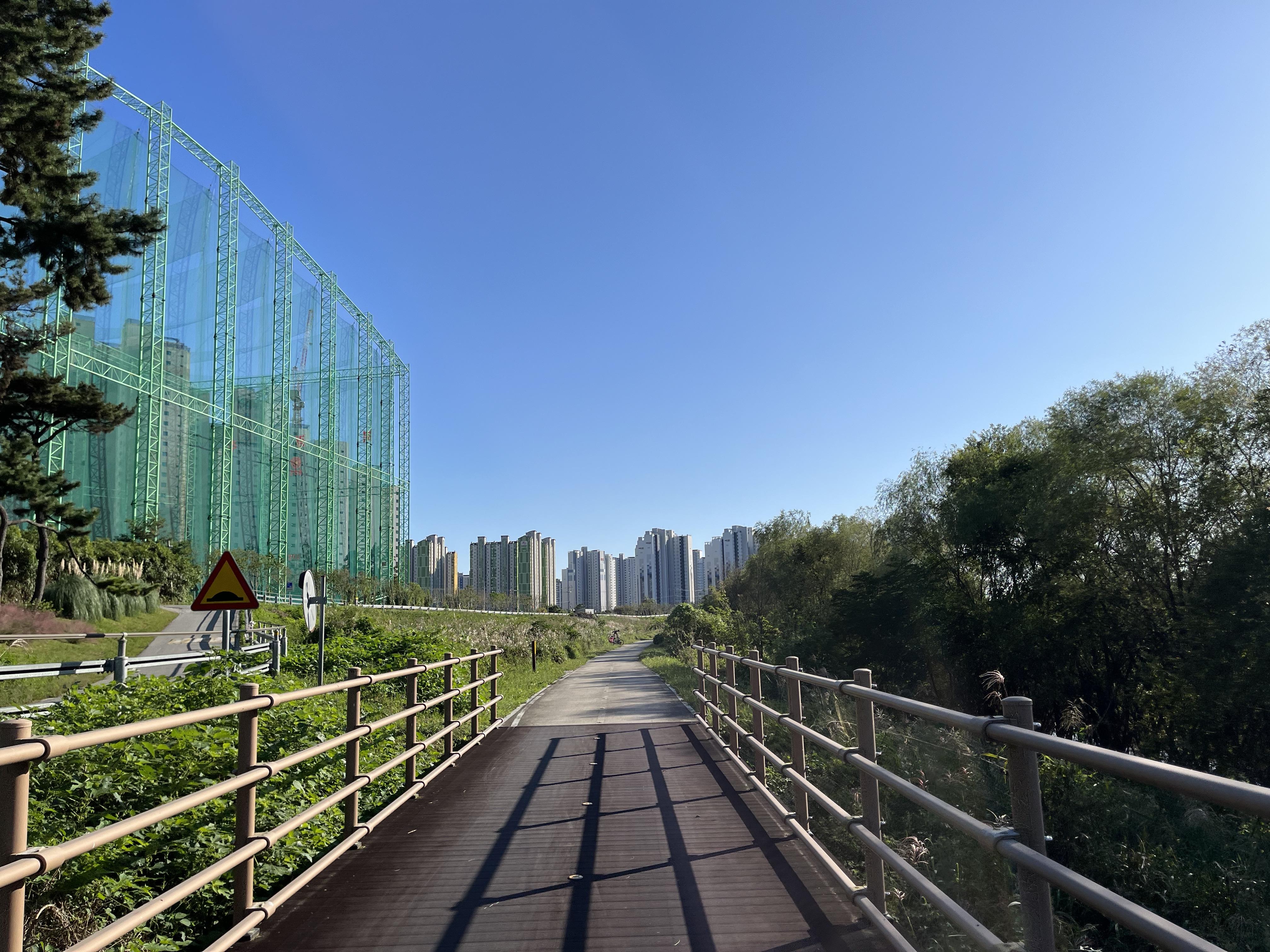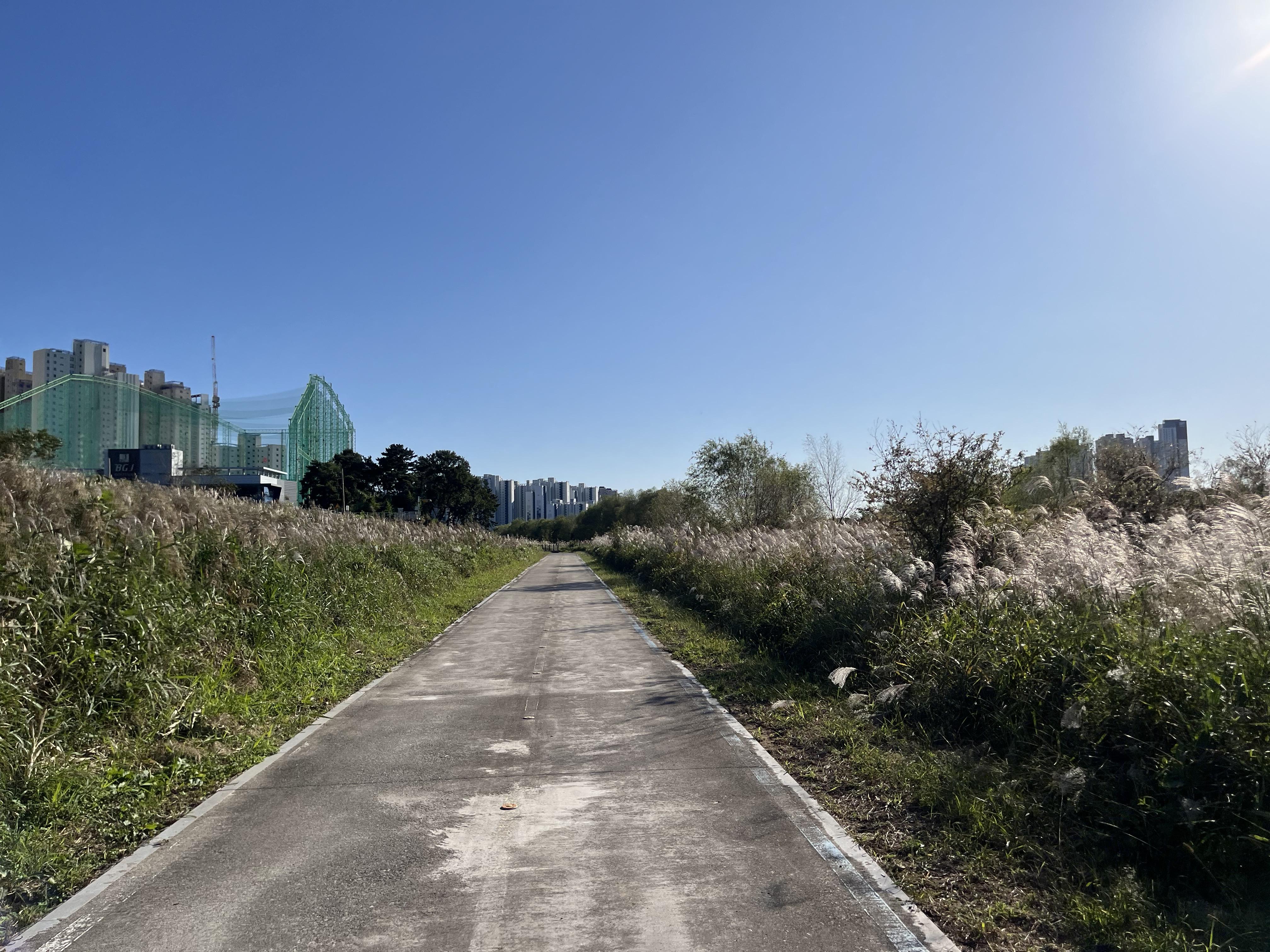 우리도 처음에는 우레탄 도로를 따라서 달리다가 이건 도저히 안 되겠다 싶어서 뚝방길로 달렸는데 혹시라도 내 글을 보는 분이 계신다면 자전거 도로와 뚝방길은 같은 경로를 달리게 되어있으므로 웬만하면 처음부터 뚝방길로 달리기를 추천한다.