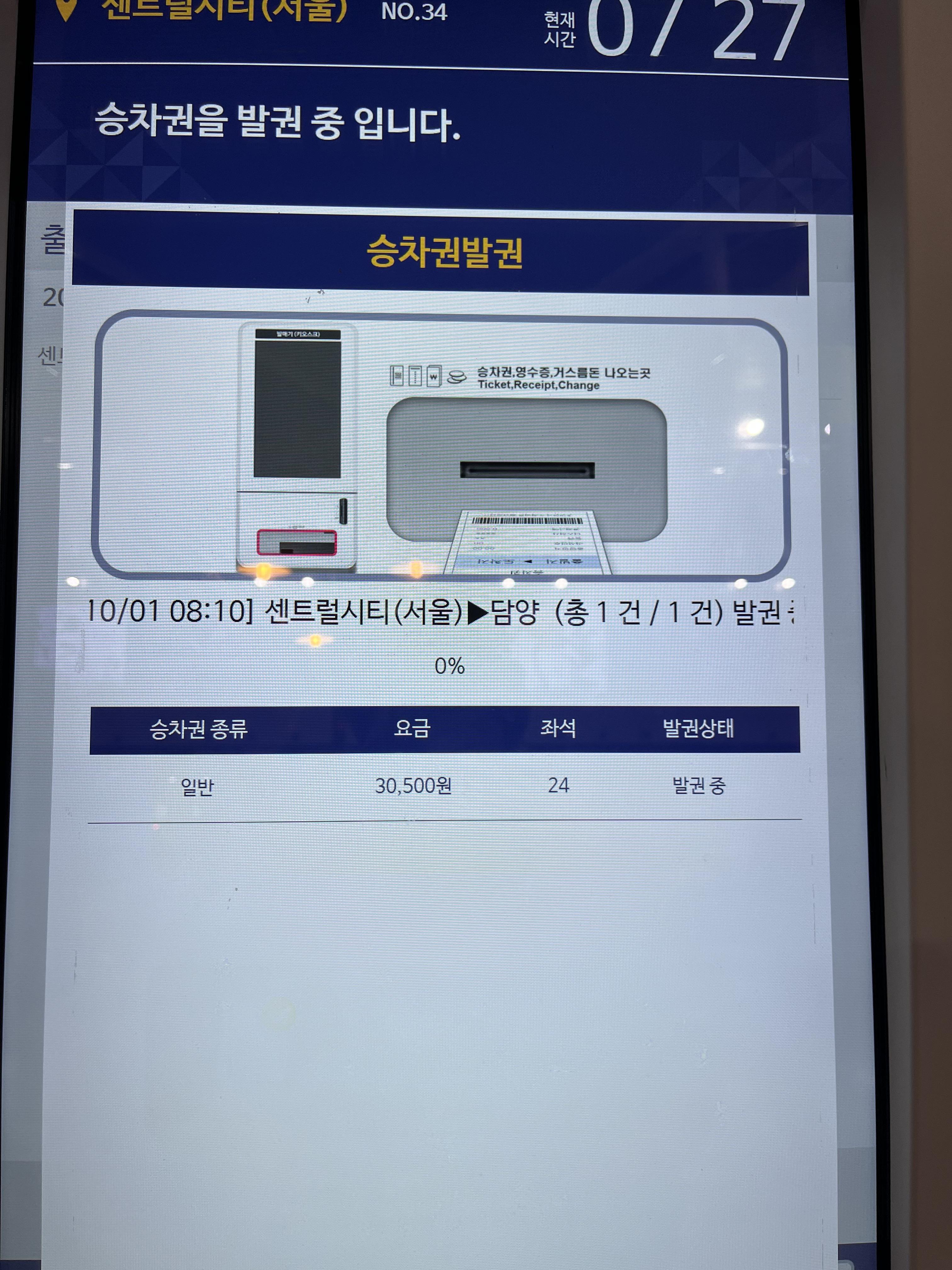 요즘은 모바일로도 승차 확인이 되어서 굳이 종이 승차권을 뽑을 필요는 없지만 역시 여행에는 종이 승차권이 있어야 여행하는 맛이 난다. 미리 예매해뒀던 표를 발권하고 KOBUS 에서 확인을 해보니 새벽까지만 해도 남아있던 5자리가 전부 매진이 되어 있었다.