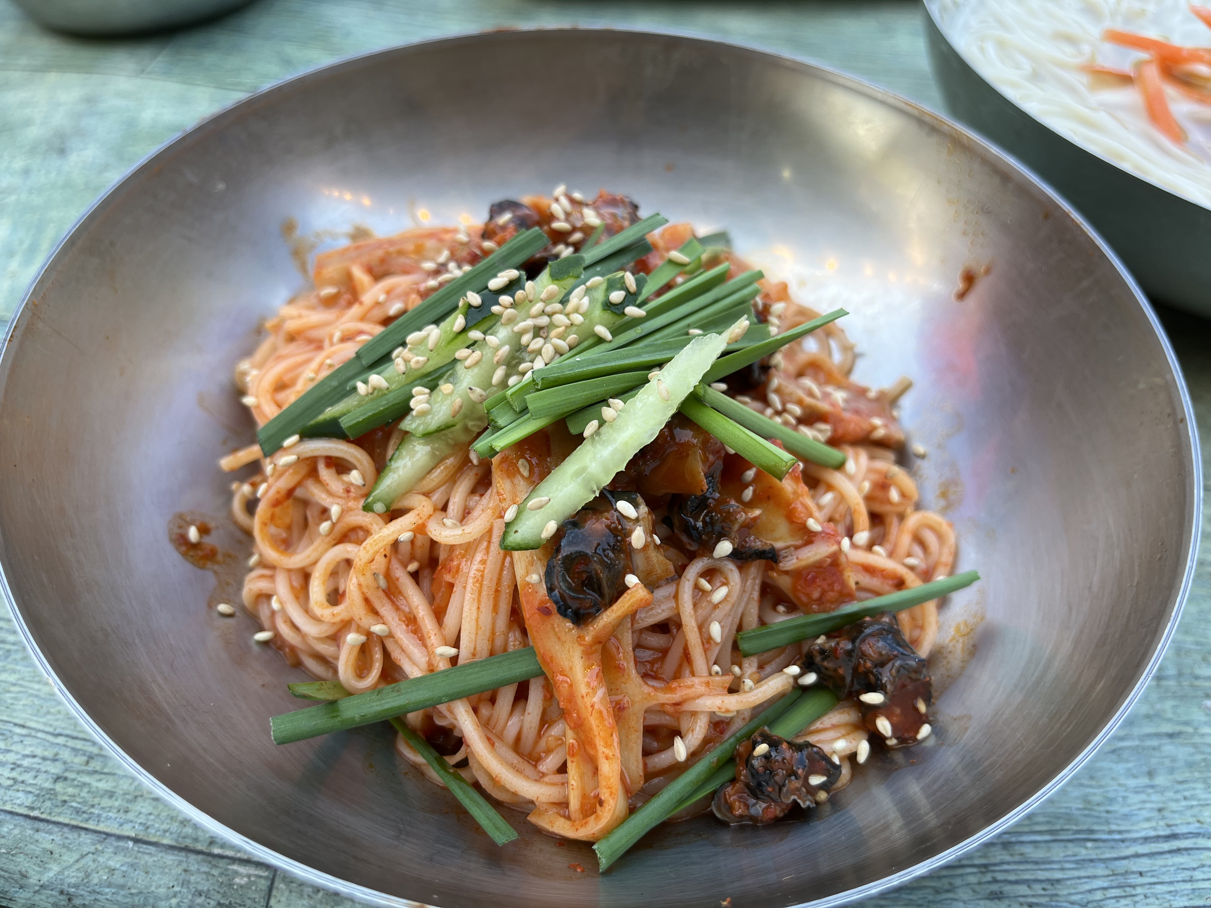 또 언제 올 지 모르니 비빔 국수와 국물이 있는 국수를 둘 다 시켜서 먹었는데 국물이 있는 국수보다 비빔 국수가 맛은 훨씬 괜찮았다. 물론 개인적인 입맛이니 반론이 있을 수 있는데 비빔 국수에 들어있는 우렁 식감이 국수와 생각보다 꽤 잘 어울려서 괜찮았다.