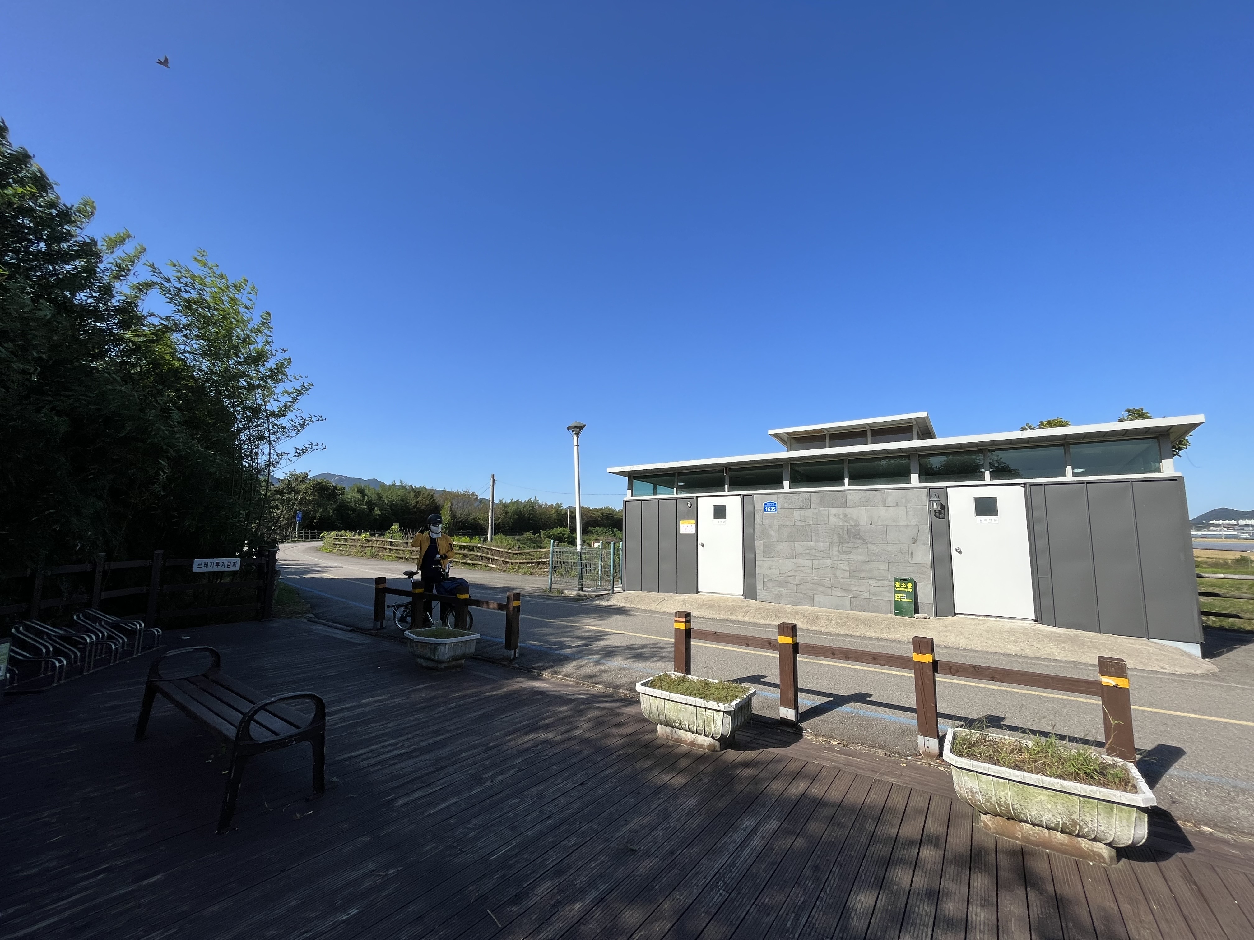 나름 잘 닦인 자전거 도로를 달리다보면 화장실이 나오는데 영산강 종주 자전거길은 정말 화장실이 거의 없다시피 하므로 웬만하면 이 곳에서 한 번 멈췄다 가도록 하자. 보기보다 깔끔하고 물도 잘 나온다. 쉼터 바로 뒤에는 대나무가 심어져 있으므로 대나무를 만져볼 수도 있다.