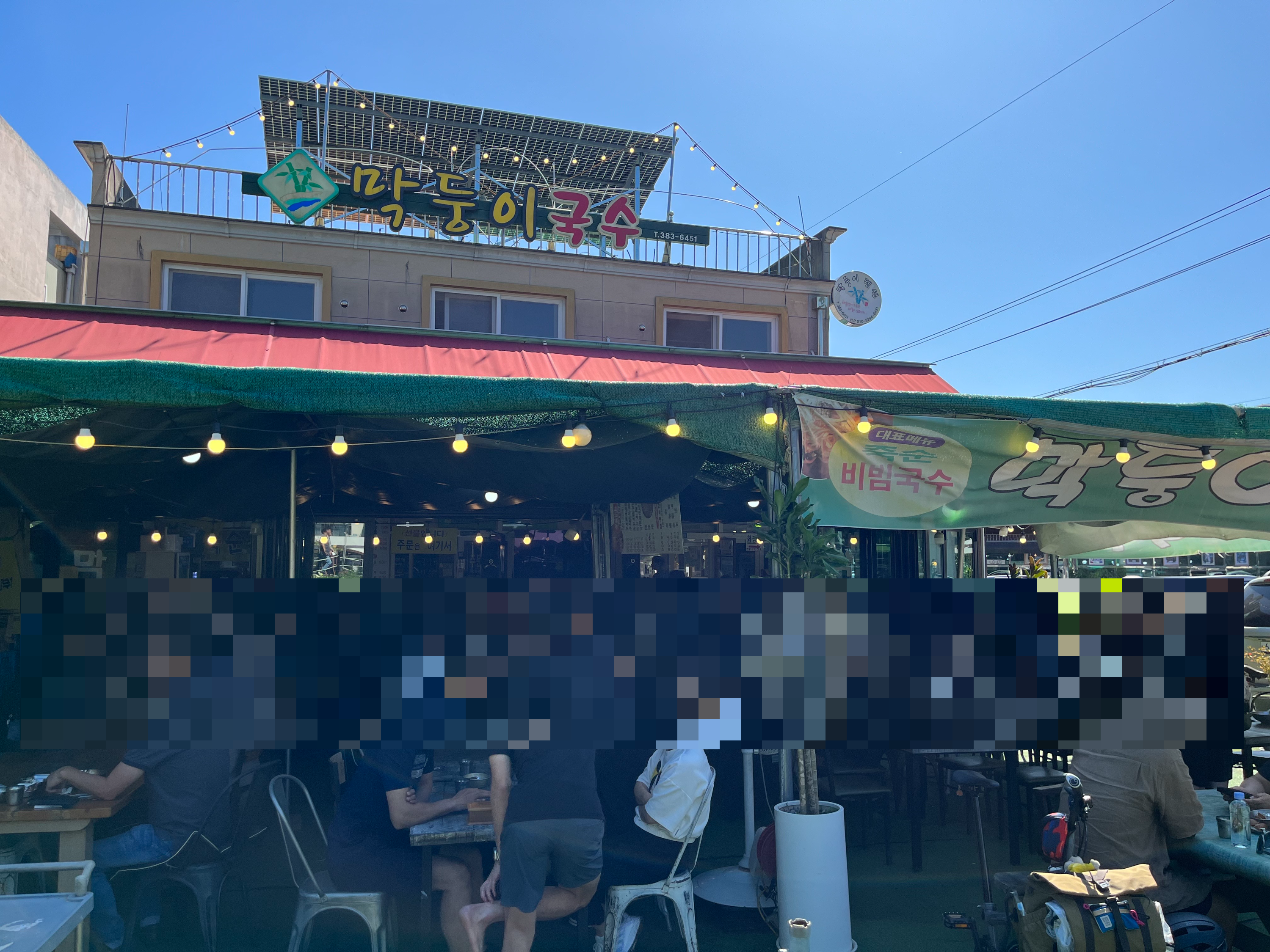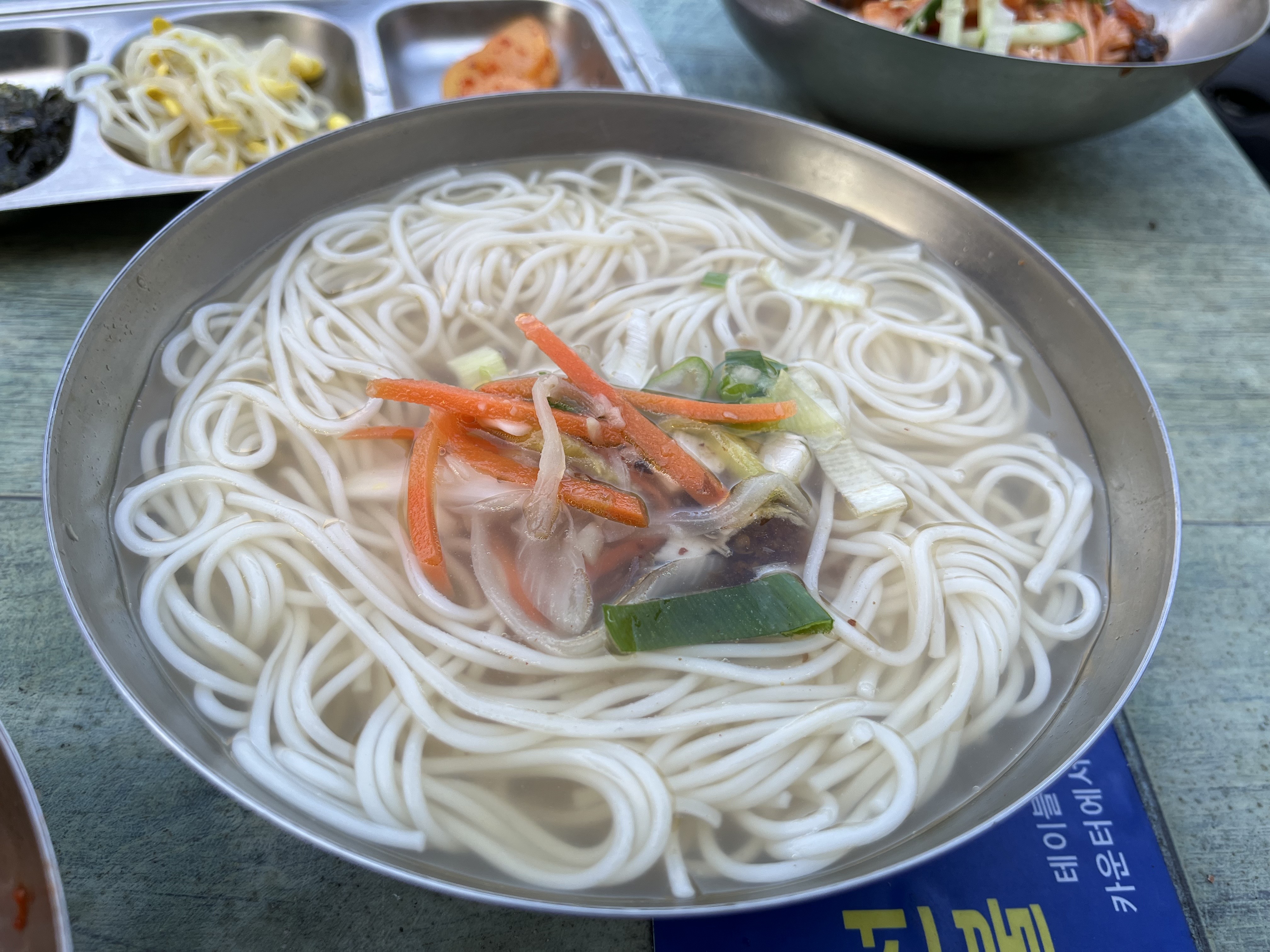 우리는 초입에 있는 막둥이 국수라는 곳에 빈 자리가 좀 보여서 이 곳에서 식사를 하기로 했다. 맛은 무난한 국수 맛이었는데 컵 세척이 제대로 안 되어 있어서 몇 번을 바꿨는데 컵마다 다 이물질이 묻어 있어서 이건 좀 마이너스 점수를 주고 싶다. 종업원의 친절도는... 우리보다 한참 나중에 오신 팀이 국수를 먼저 받아서 먹고 있었다는 것만 적어두겠다.