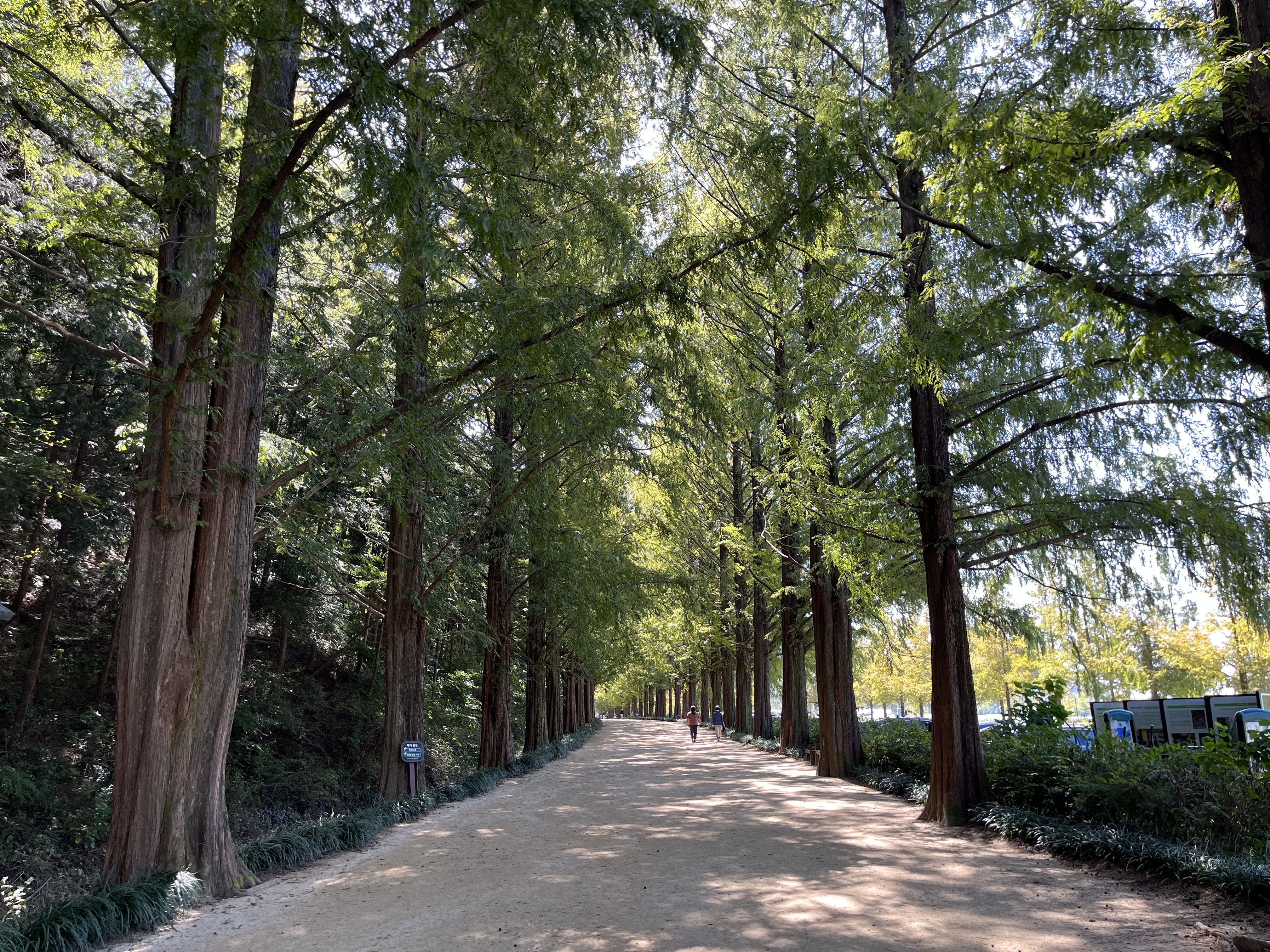 근데 8년 전에 왔었을 때는 메타세쿼이아길 인증센터가 메타세쿼이아길 초입에 있었는데 이 쪽으로 위치를 이동한 건 아주 탁월한 선택인 것 같다. 사실 여기서 메타세쿼이아길로 가는 길이 그렇게 좋지는 않아서 이번에도 어떻게 가야하나 하고 있었는데 위치를 이동했을 줄은...
