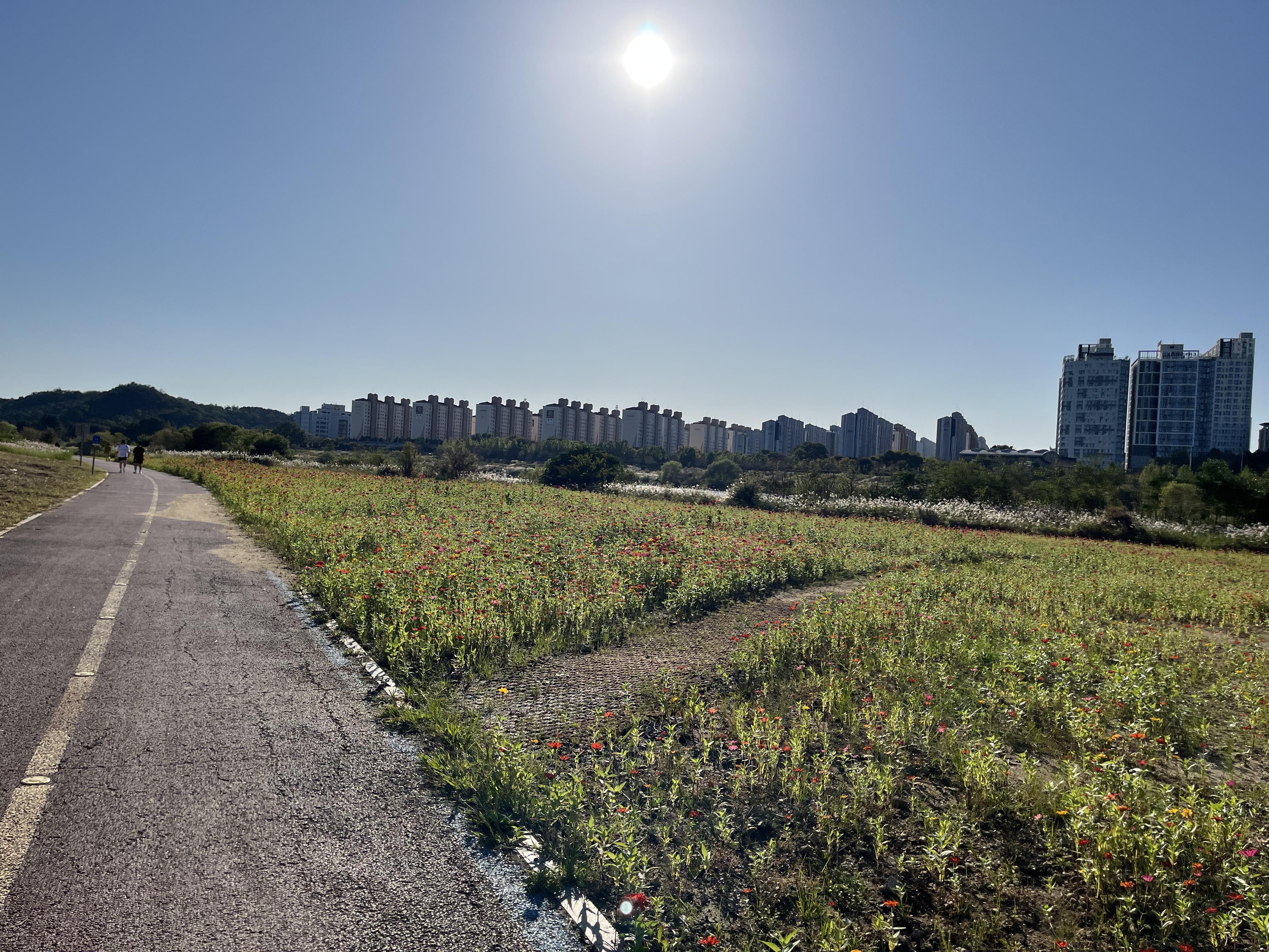 자전거 도로를 따라서 조금만 달리다보면 슬슬 아파트 단지가 보이면서 광주 첨단을 지나가는데 원래 1박 때의 숙소를 여기로 잡았다가 출발 전 날 나주로 변경을 했다. 그리고 이 선택은 아주 탁월한 선택이었다고 지금도 생각하고 있다.