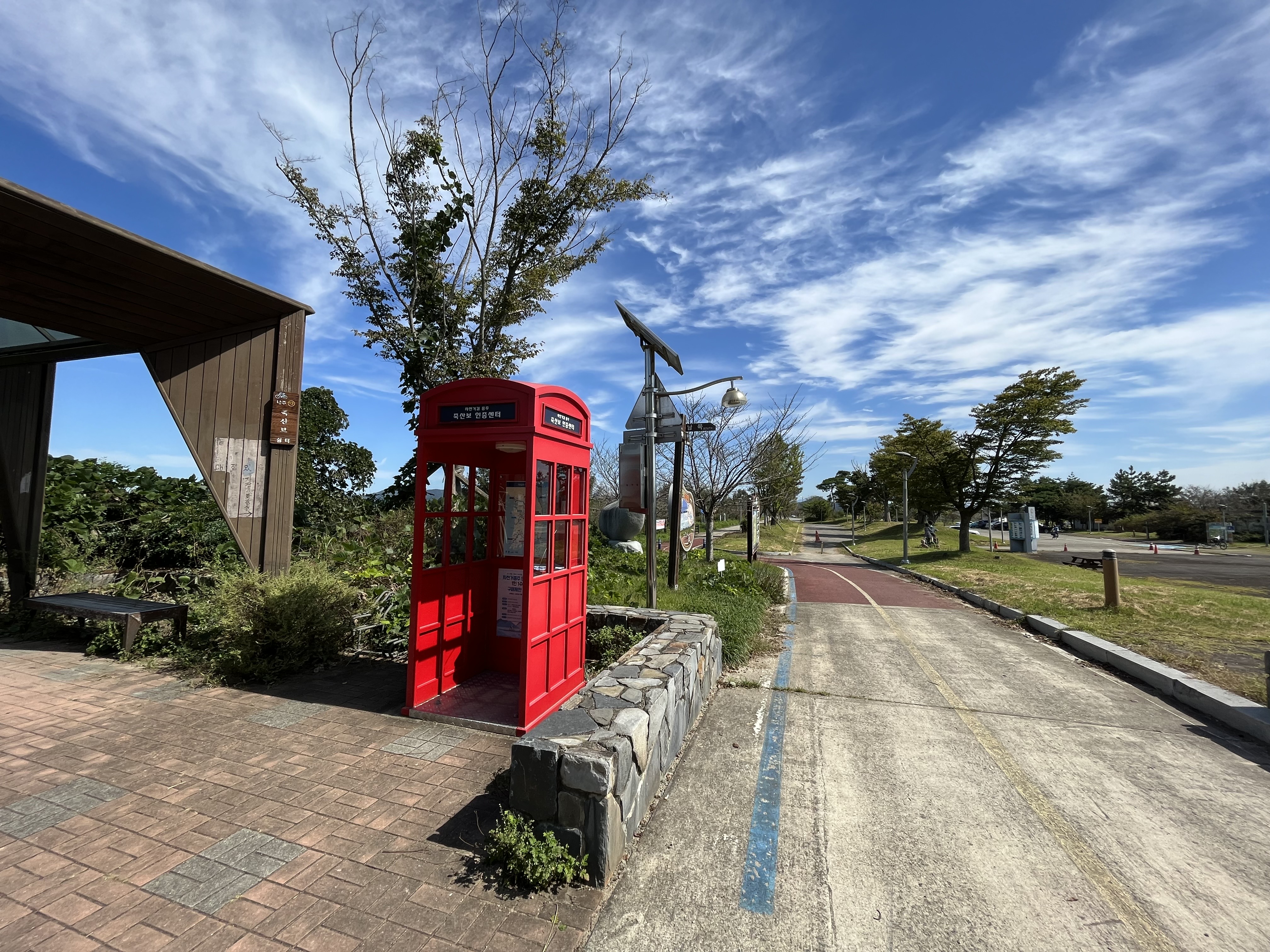드디어 마지막 종착지인 영산강하굿둑 인증센터로 향할 차례다. 느러지전망관람대 인증센터를 전망대 쪽에서 바라봤을 때 직진 방향으로 출발하면 된다. 여기도 약간의 오르막이 있지만 금방 넘을 수 있으므로 크게 걱정하지 않아도 된다. 아, 쉽게 말해서 다운 방향이 아니고 업 방향으로 가면 된다.