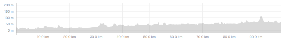 이 날의 총 거리는 99.48km 였고 획득고도는 591m 이다. 전 날과 비교하면 다섯배는 힘든 기분이었는데 획득고도는 그렇게까지 차이가 나지 않네... 근데 고도표를 보니까 전체적으로 오르막이었구나.