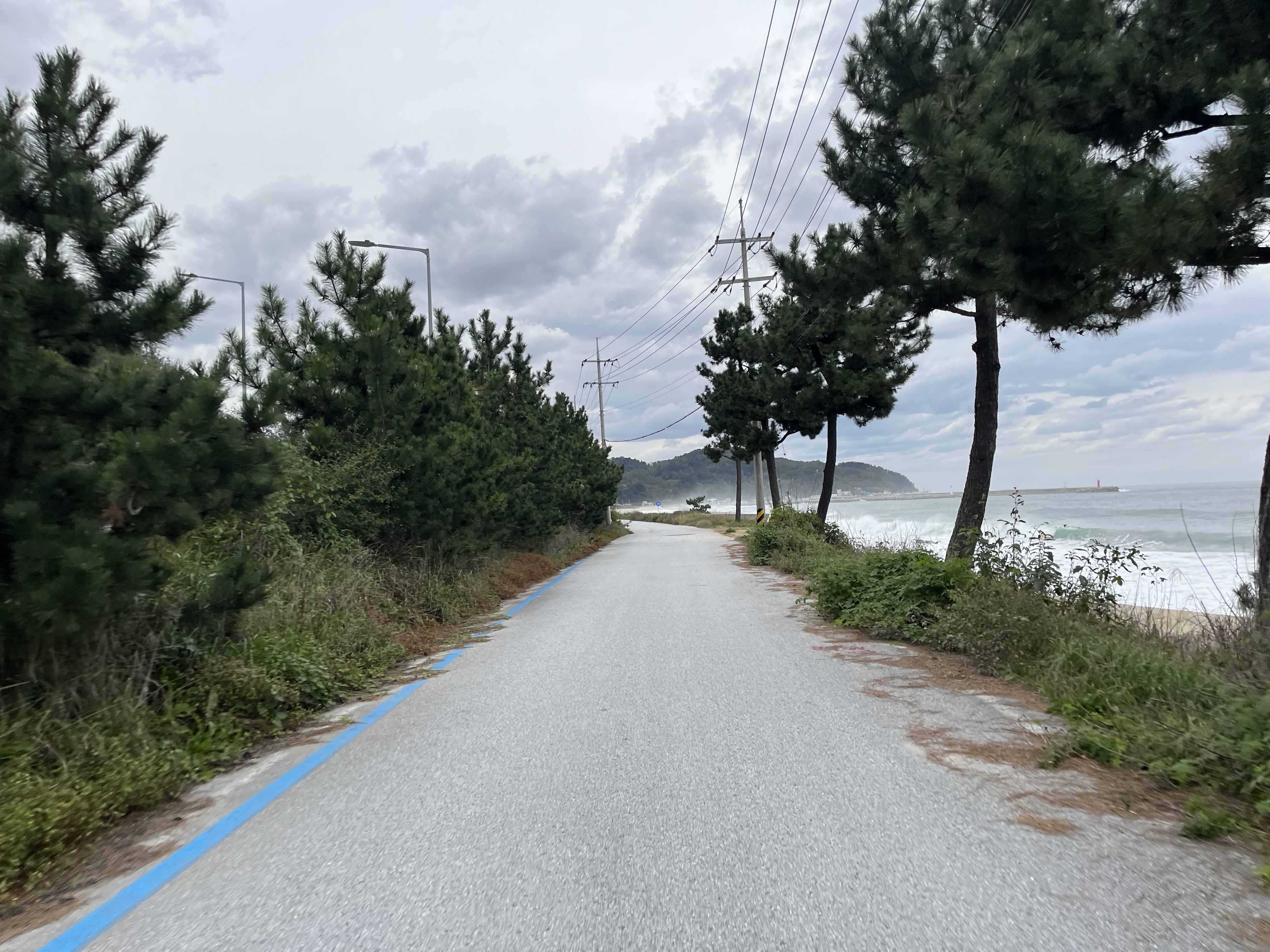 고래불해변 인증센터에서 만난 동해안 종주 하행을 하시던 부부 분들이 이 위로는 비가 오지 않으니까 쾌청할 거라고 알려주셔서 그래도 가벼운 마음으로 다음 인증센터를 향해 출발했다.