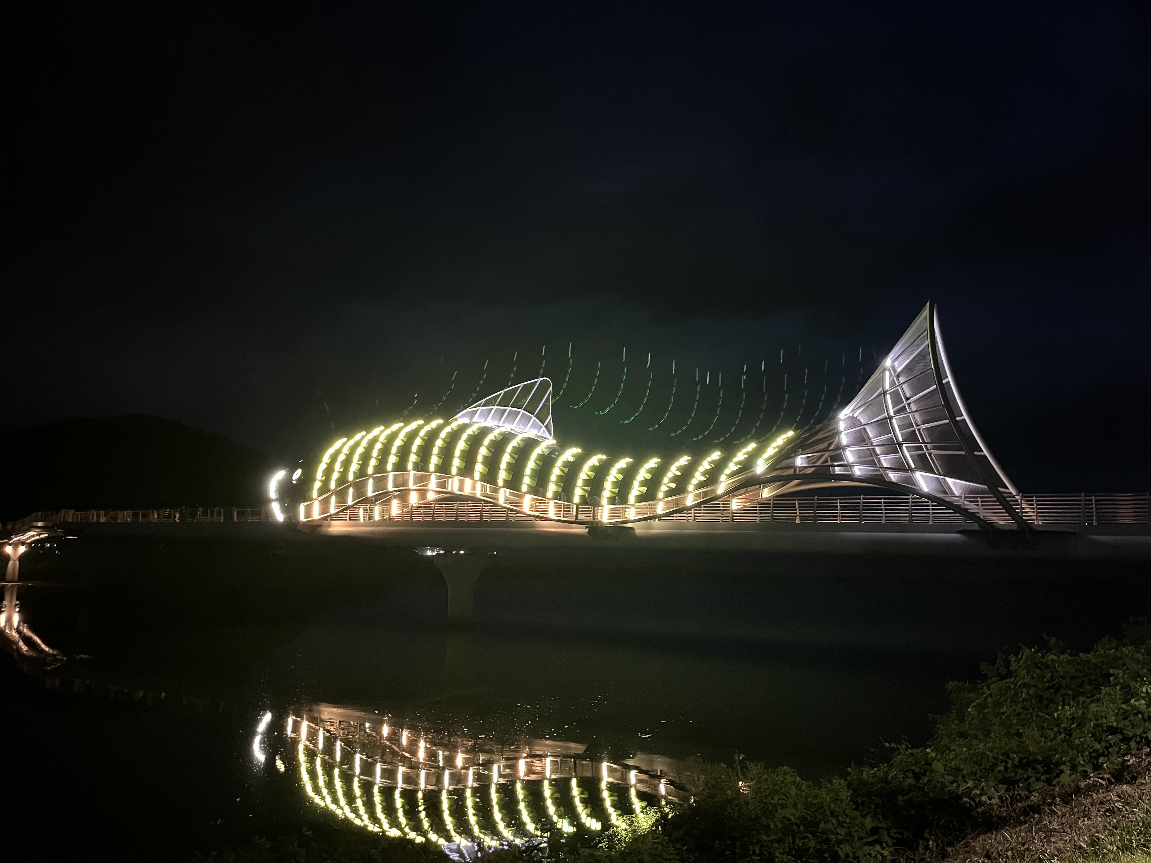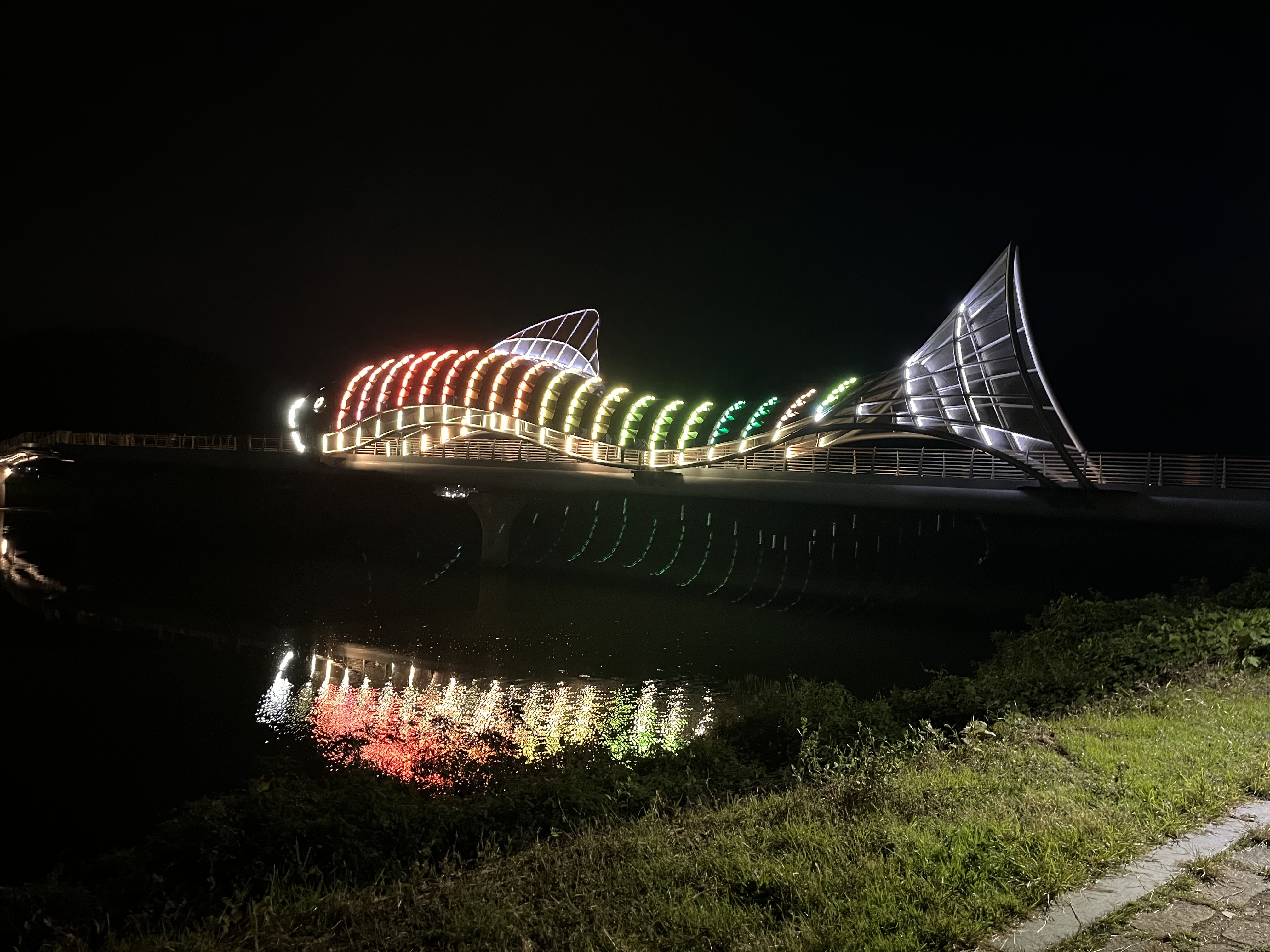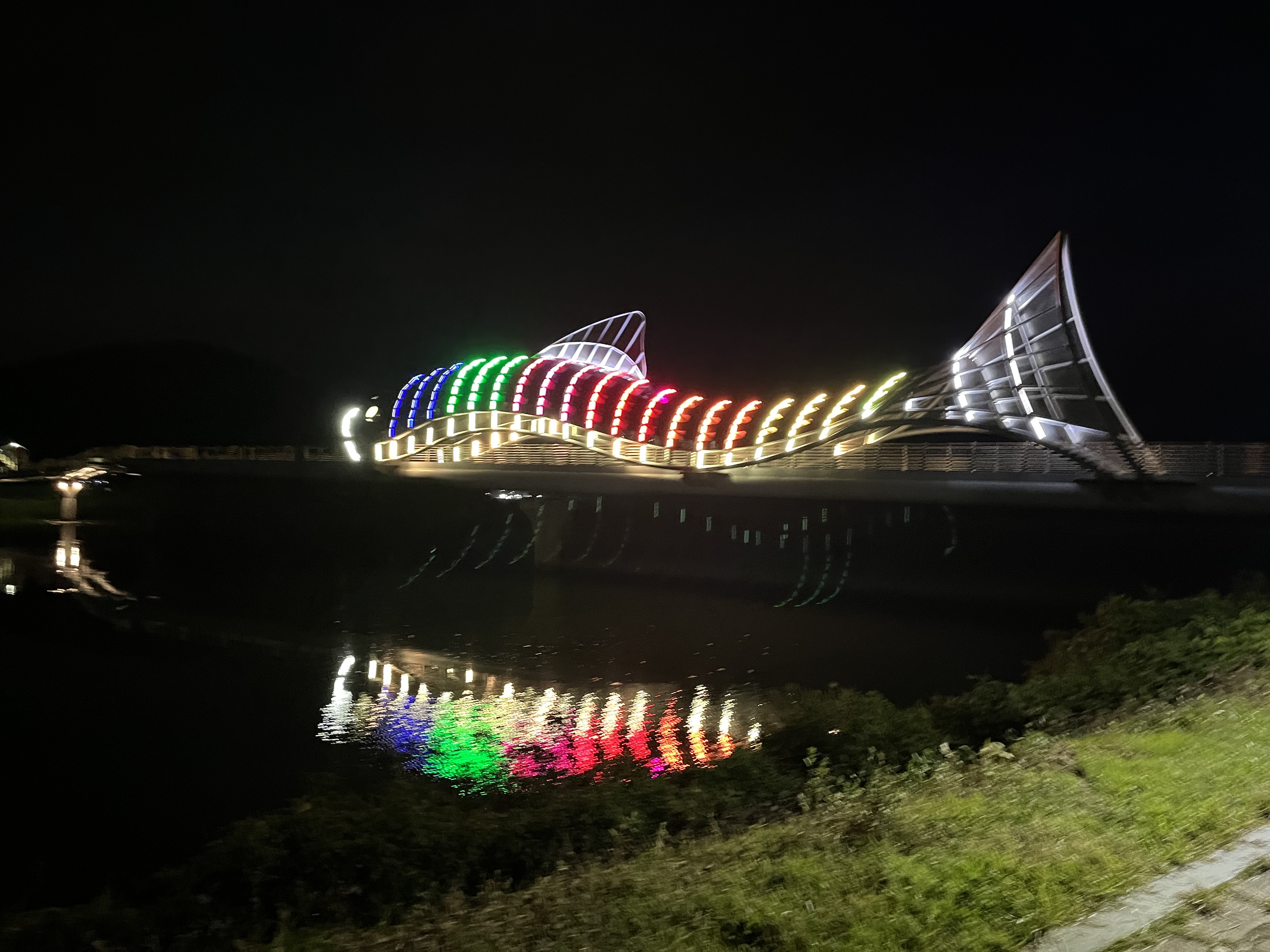 그리고 저 다리 위에서 사진을 찍으면 조명이 환해서 사진이 꽤 예쁘게 나오는데 우리는 너무 지쳐서 대충 은어하고만 사진을 찍고 빨리 터미널 근처로 이동하기로 했다. 울진은어다리 인증센터에서 울진 터미널이 있는 시내까지는 자전거로 대략 5~10분 정도만 이동하면 된다.