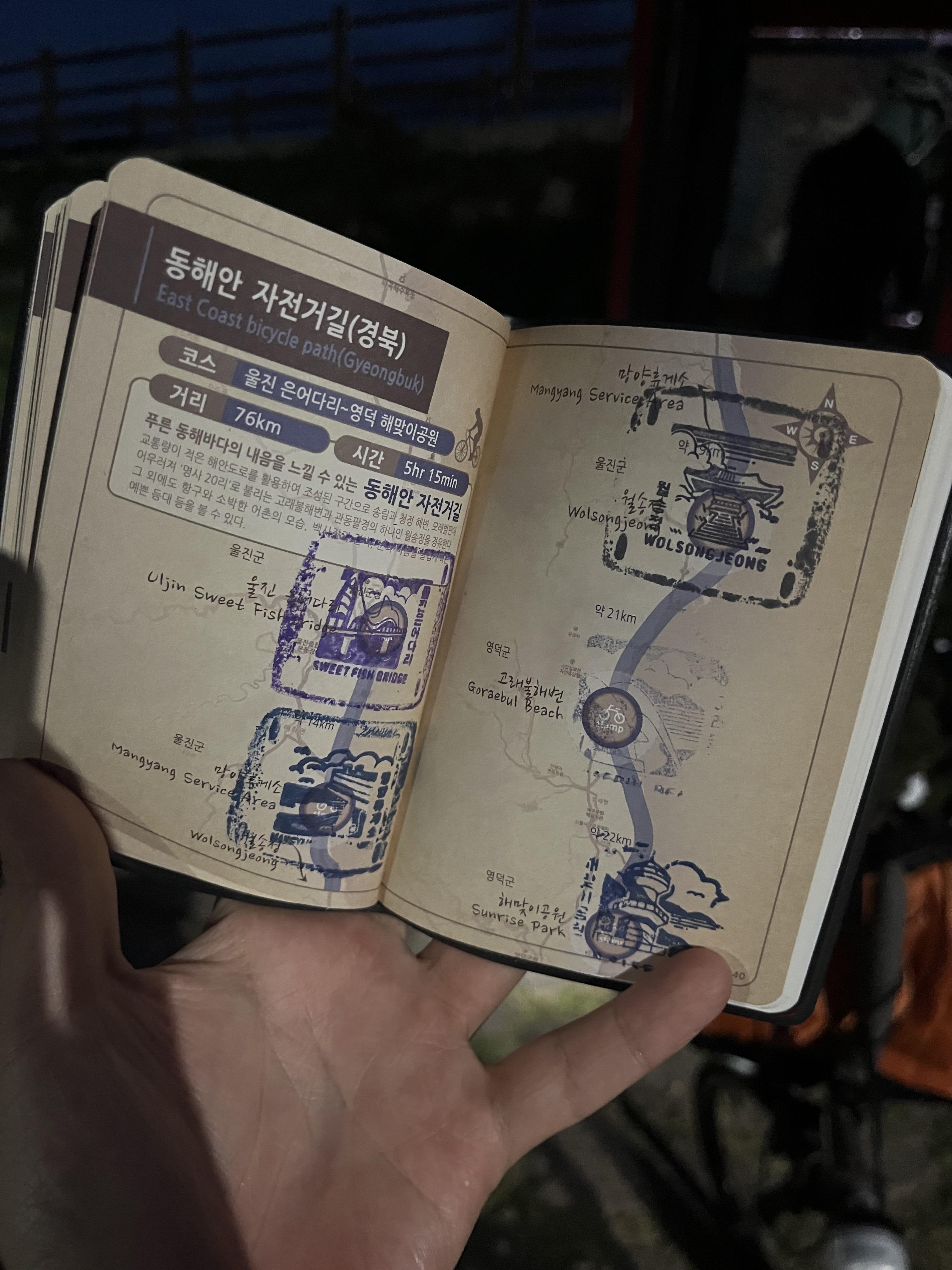 고래불해변 인증센터에서는 비가 와서 인증 도장을 다급하게 찍느라 깔끔하게 찍지 못 했는데 너무 아쉽다. 전반적으로 도장 상태는 양호한 편이었지만 저 테두리까지 저렇게 찍혀버리는 건 어떻게 개선을 좀 못 하나 싶은 건 욕심이겠지?