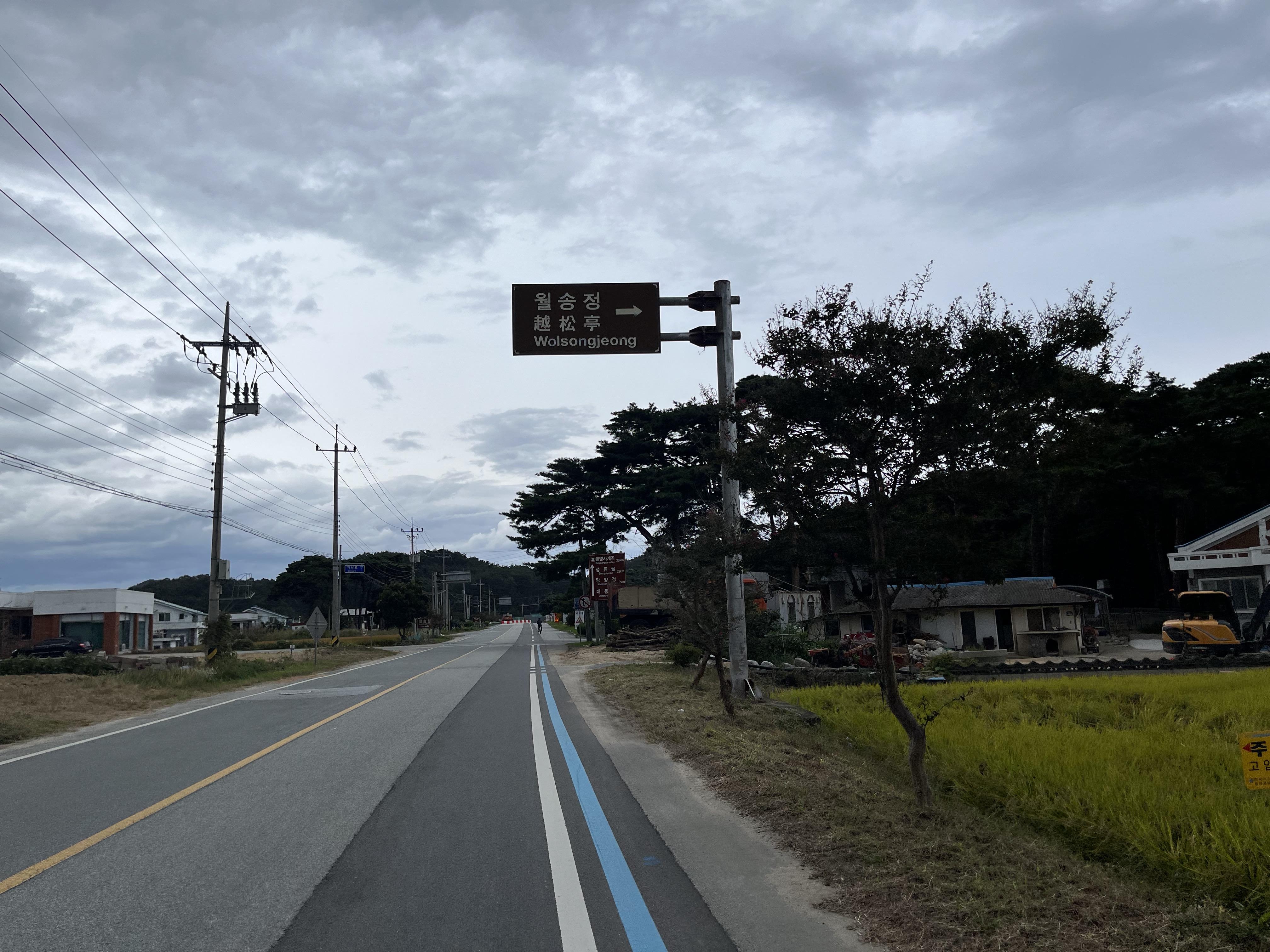 울진 대게 동상에서 잠깐동안 포토 타임을 가지고 다시 20분 정도 열심히 달려서 월송정 인증센터에 도착했다. 울진 대게 동상 부근은 공도로 달려야 하는데 자전거용 도로가 따로 마련되어 있지 않고 도로폭이 약간 좁아서 차량에 조심해야 하는 곳이다.