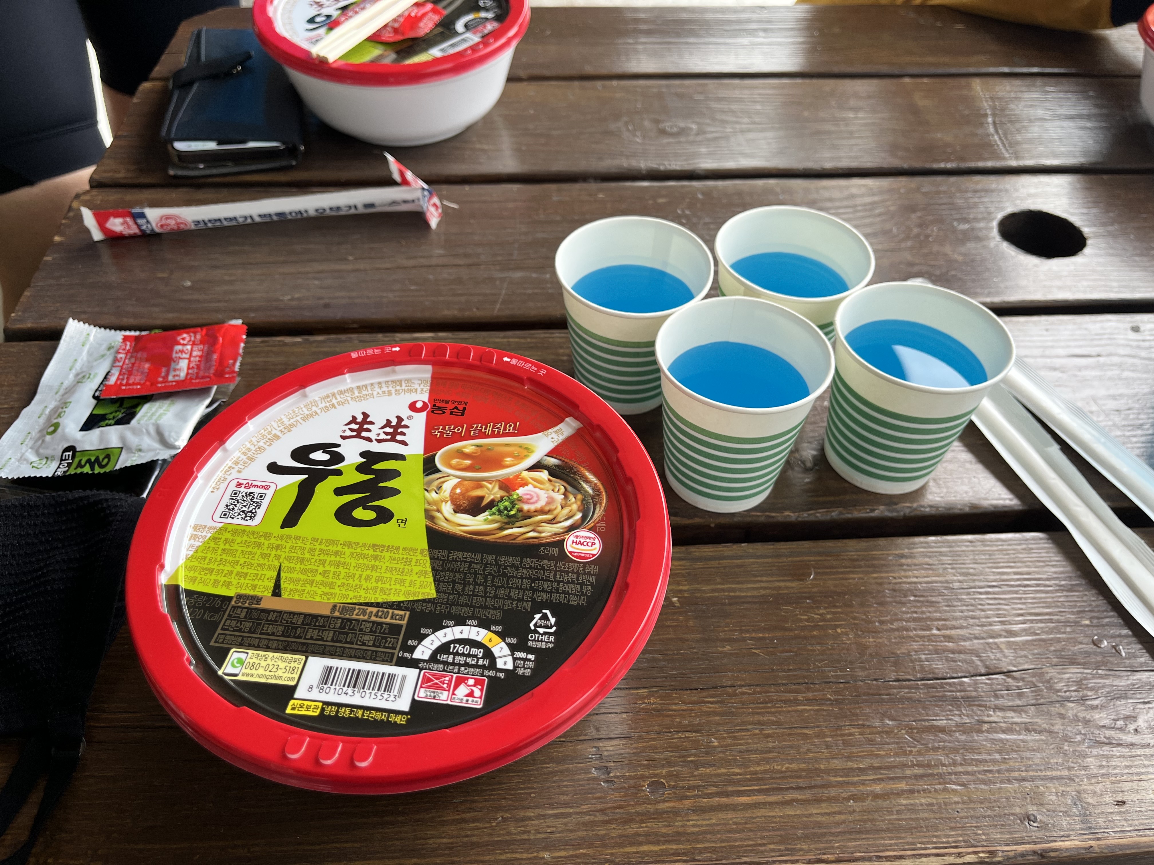 월송정 인증센터에서 도장을 찍고 월송 수퍼마켓으로 다시 돌아가 라면도 하나씩 먹고 물통도 채우기로 했다. 월송 수퍼마켓은 보기보다 물건이 많아서 이것저것 많이 먹을 수 있다.