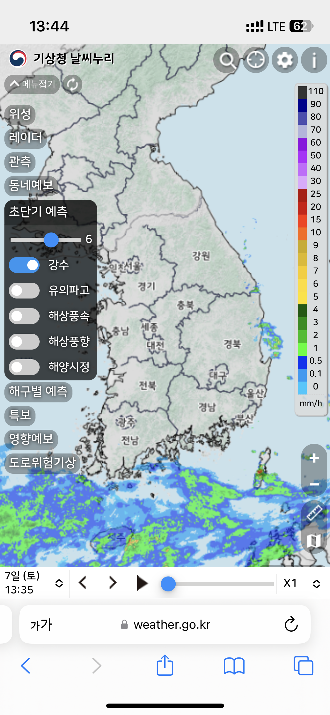 이것도 참 운이 없는 게 내륙의 99.9999% 가 맑음인데 딱 내가 있는 위치에만 비가 내리고 있었다. 재수도 없으려니... ㅠㅠ 기상청이 예보는 개떡 같이 해도 실시간 비구름 레이더 정도는 나름 참고할만 하니까 항상 북마크에다가 여기를 추가해놓고 간간히 이용해보도록 하자. 나는 일상 생활에서도 자주 애용하고 있다.