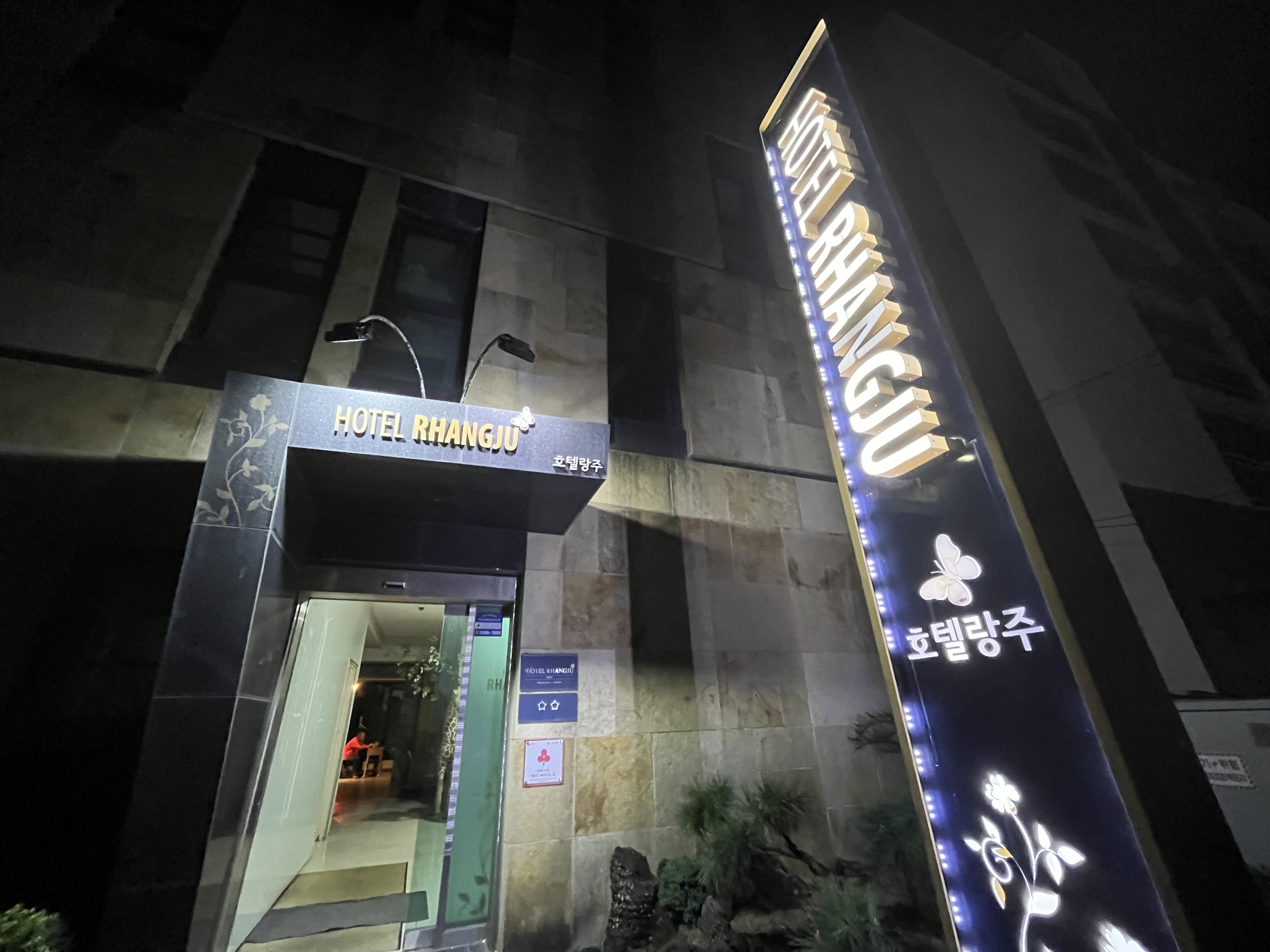 열심히 30분 가량 업힐을 올라서 도착한 오늘의 숙소, 호텔 랑주다. 처음에는 지나가면서 보고 네온 사인이 떨어져 나가서 글씨가 하나 안 보이는 바람에 이름이 비슷한 호텔이 있나보네 하고 지나칠 뻔 했는데 다시 한 번 자세히 보니 여기가 거기였다.