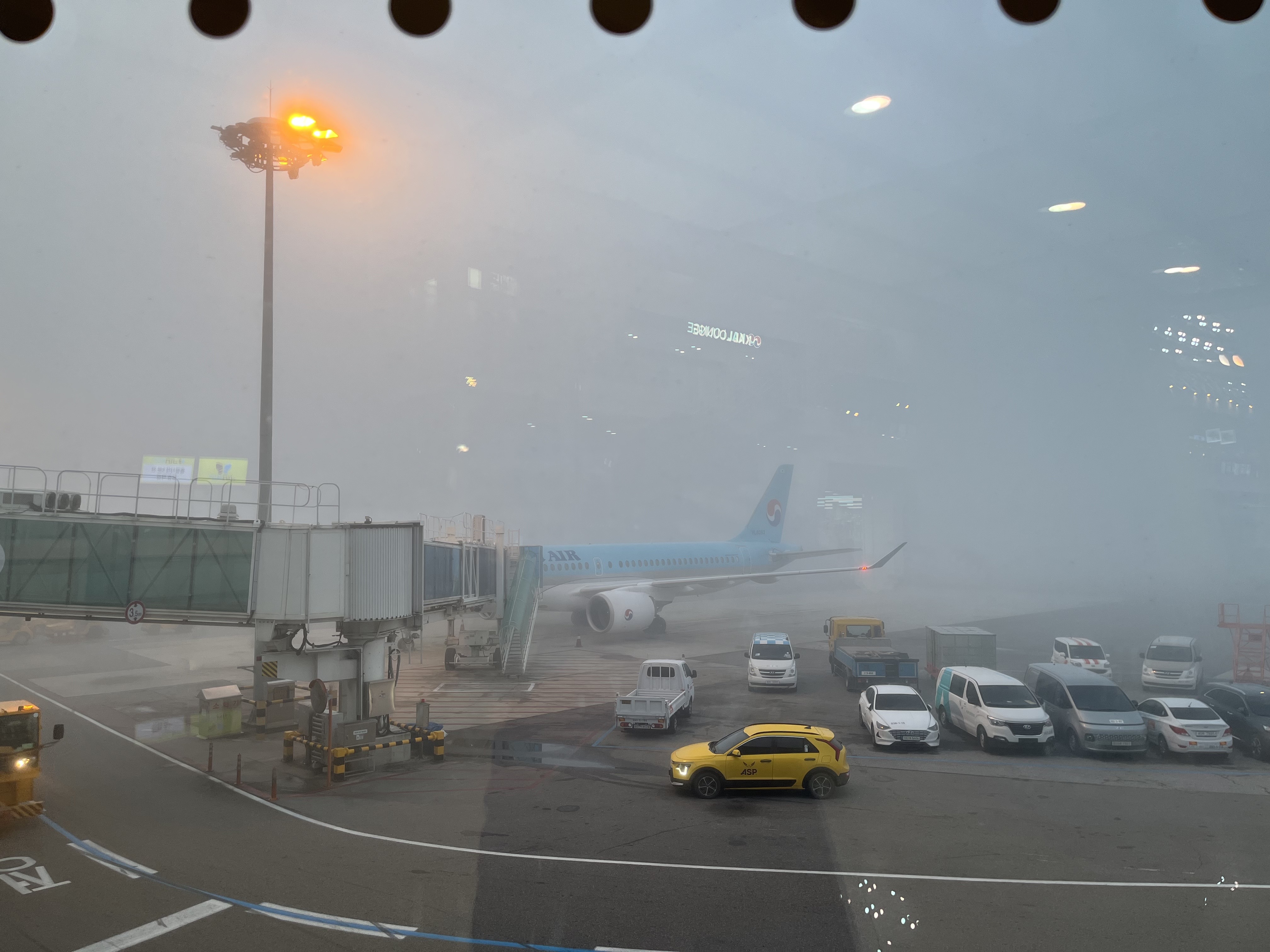 새벽에 김포공항으로 가는 길은 도로가 뻥~ 뚫려서 40분 정도로 갈 수 있었는데 김포공항에 거의 다 도착해서는 무슨 안개가 그렇게 심한지 천천히 가느라 시간이 생각보다 오래 걸렸다. 정말 앞이 하나도 안 보일 정도의 안개였다.