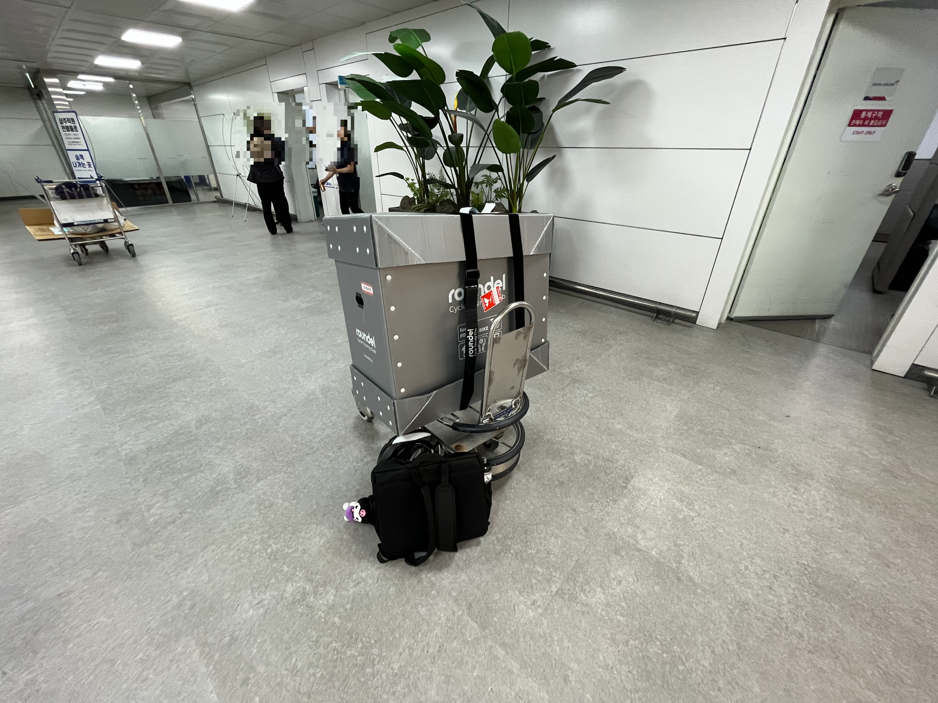 나는 대한항공을 이용했는데 수하물로 짐을 부치면 항공사 직원이 와서 직접 짐을 가져간다. 근데 솔직히 말하면 그렇게 막 자전거를 안전하고 소중하게 다루진 않고 그냥 막 대충 다루므로 내 자전거가 정말 소중해 하시는 분은 자차에 넣어서 자차를 배로 가지고 가는 수 밖에 없겠다.