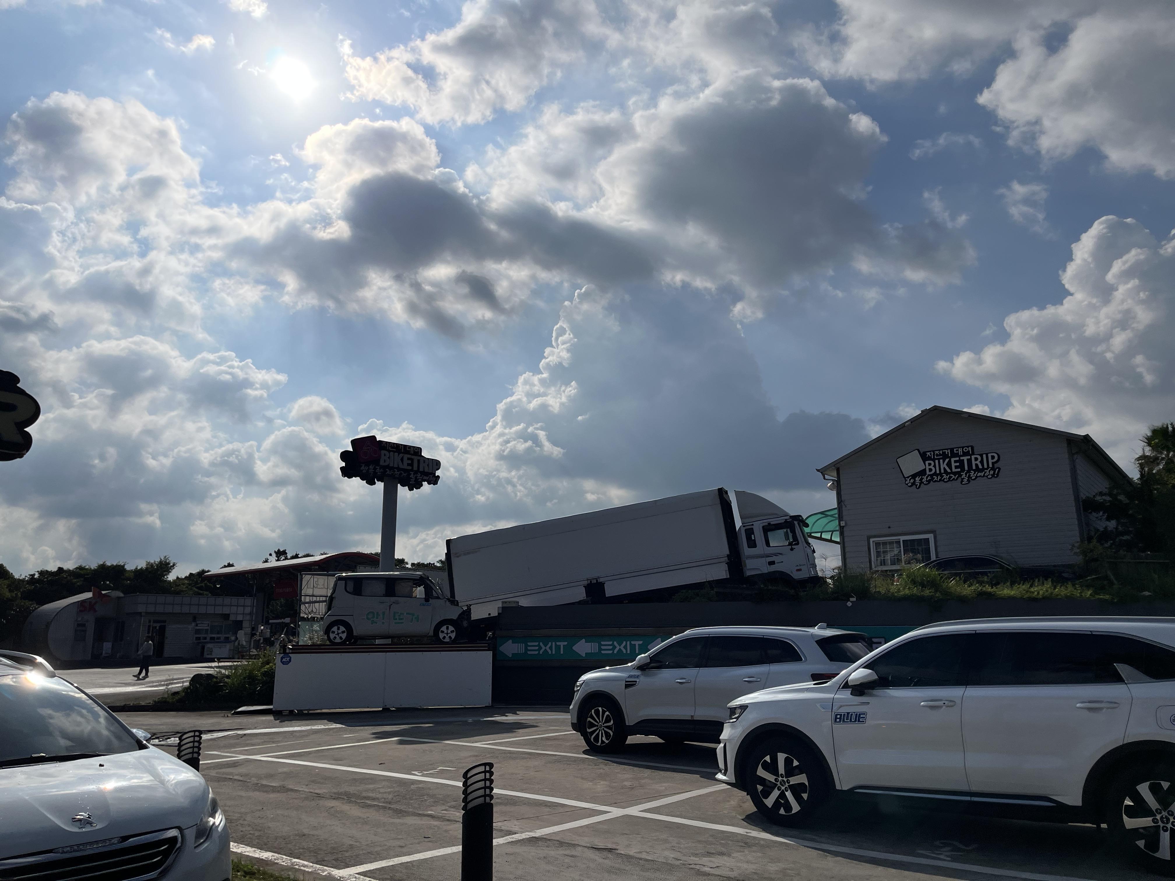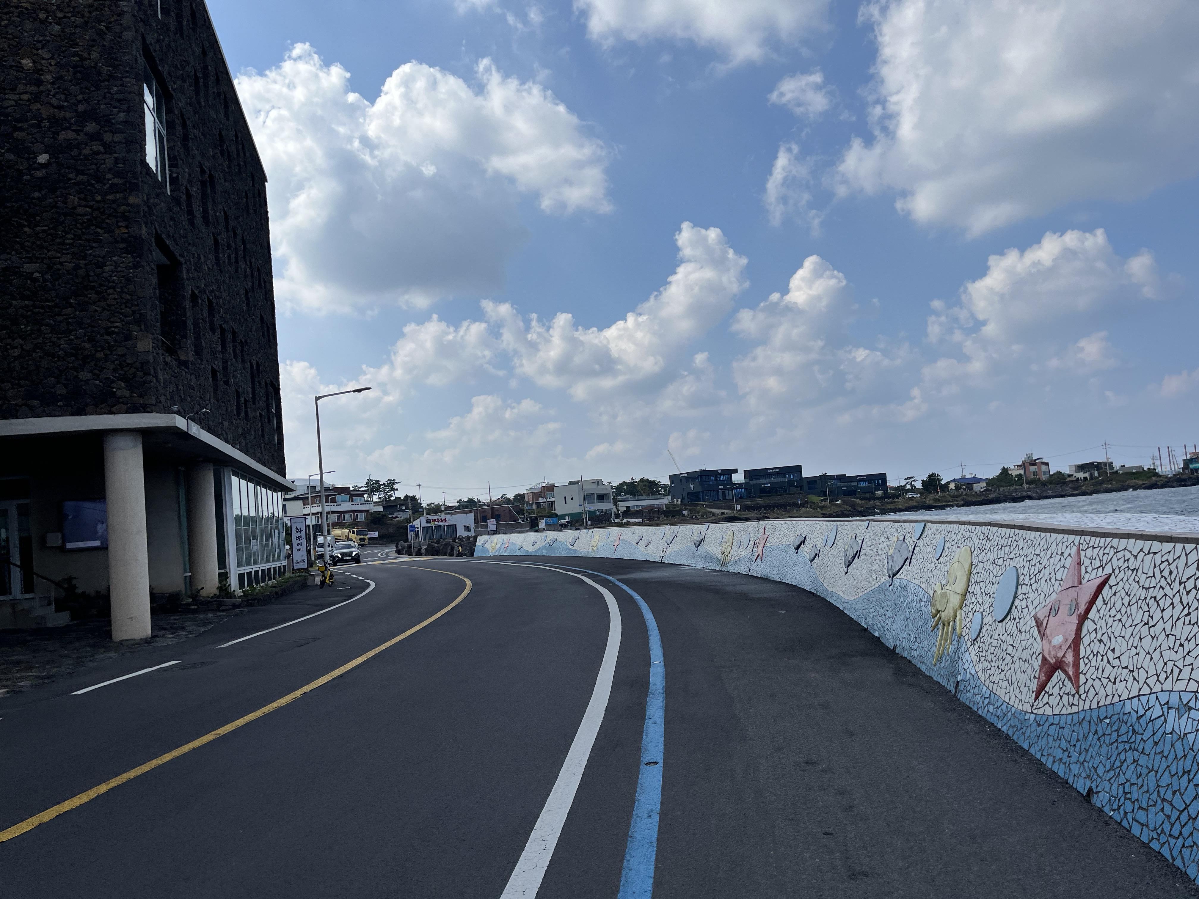 제주 환상 자전거길이라고 하면 역시 개판인 도로 상태부터가 떠오르는데 중간중간 보수 공사를 했는지 인도 쪽에 보이는 자전거 도로도 예전보다 폭이 넓어진 듯한 느낌을 받았다. 도로 상태도 꽤나 좋아져 있었고. 물론 도로 갓길에는 수많은 차들이 불법 주차를 하고 있었지만... 제주도는 이거 단속 안 하고 뭐하나? 자발적 세금 납부 희망자들이 이렇게 많은데.