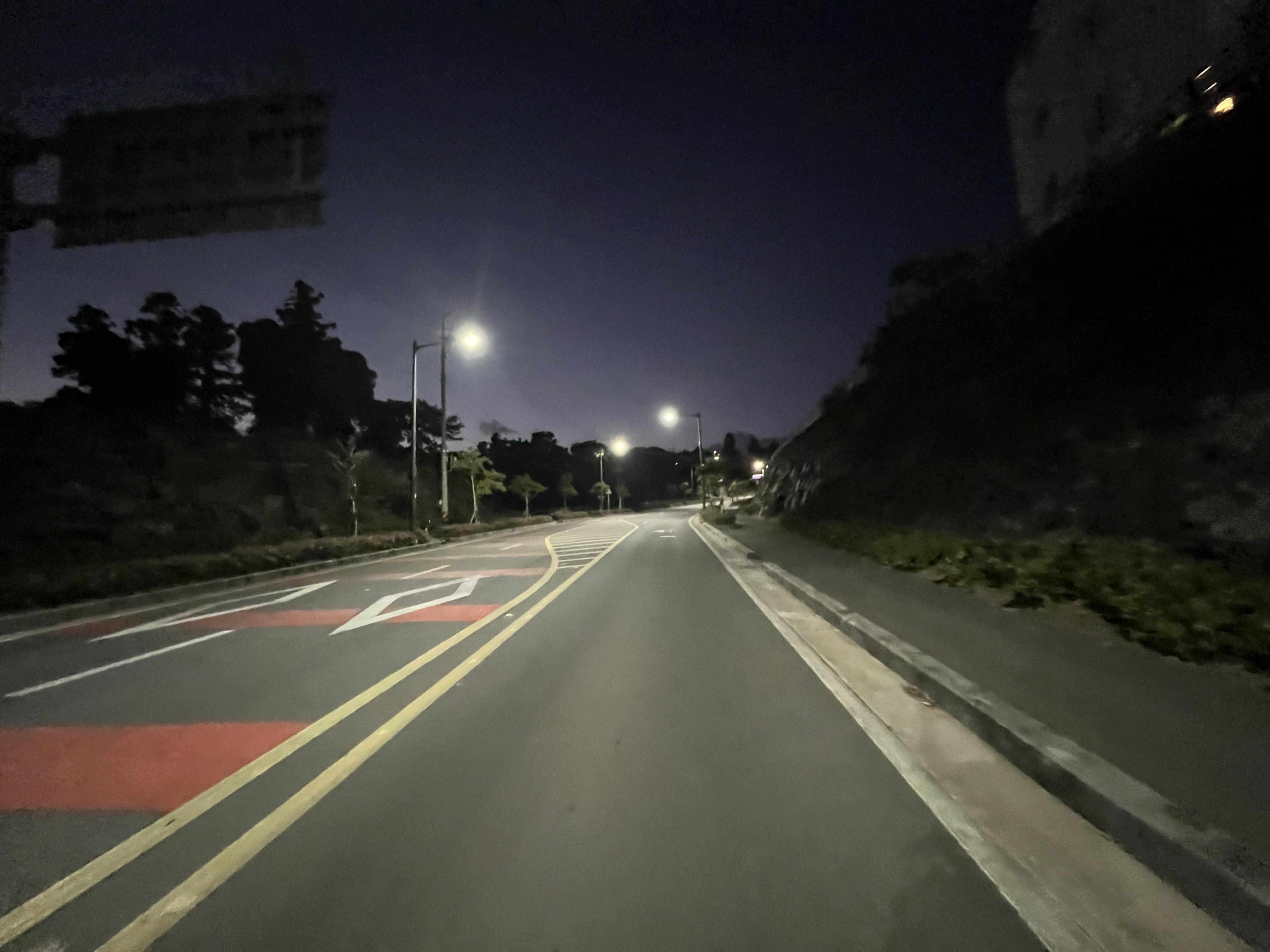 그리고 내가 기억하던 서귀포시청 제1 청사로 가는 길은 자전거 도로와 차도가 분리되지 않은 도로여서 야간에 달리기는 굉장히 위험하기도 했고 무엇보다 더 이상 달릴 힘이 없어서 업힐을 오르고 싶지 않아 법환바당 인증센터에서 더 가까운 서귀포시청 제2 청사 쪽으로 예약을 했던 것이었는데... 이런 망할. 서귀포시청 제2 청사까지 가는 길은 계속해서 업힐이었다. -_- 다운은 커녕 평지도 없었다. 그냥 계속 업힐이다.