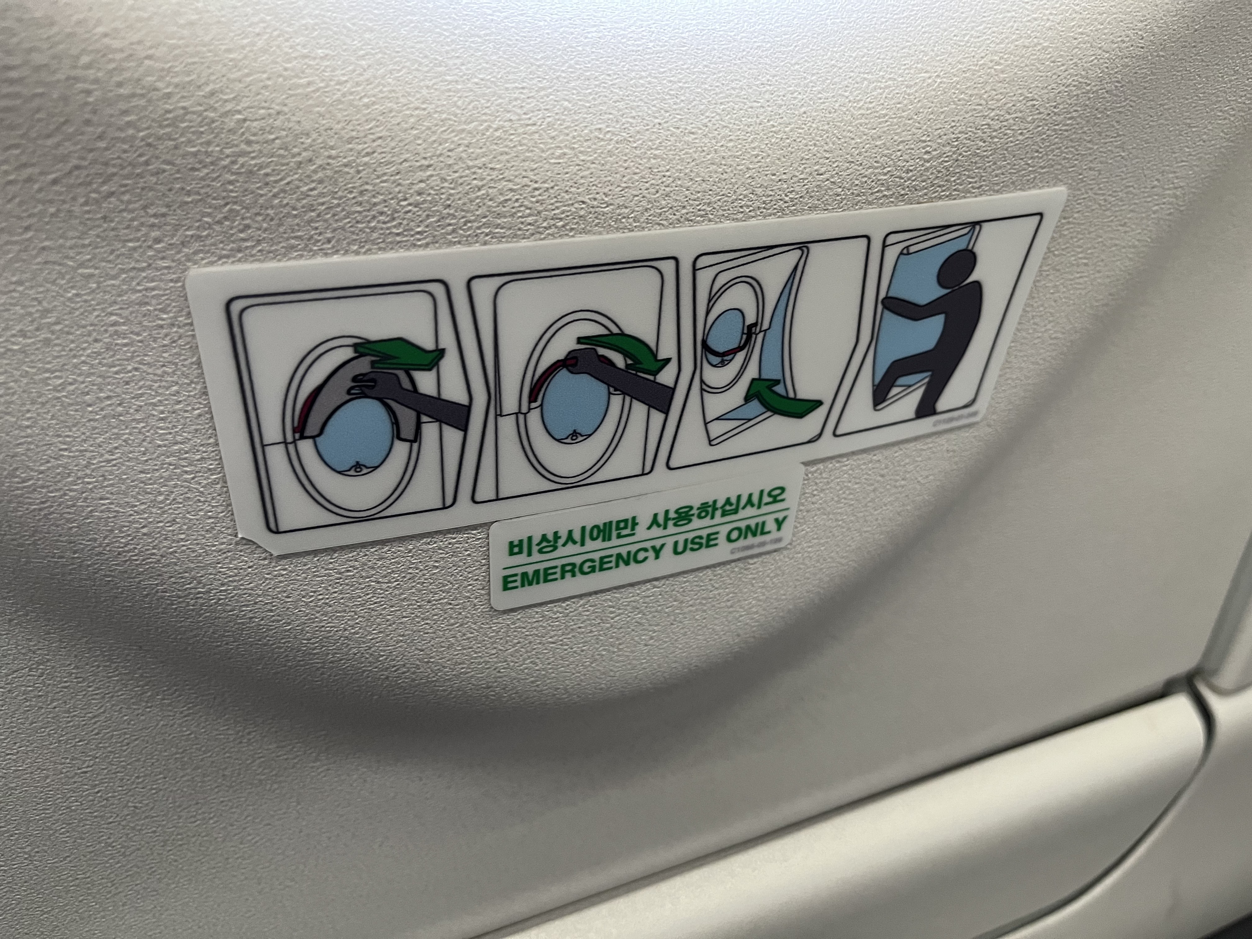 원래 비상구 좌석이 아니었는데 체크인 시에 비상구 좌석으로 해도 되겠냐는 말에 그러세요 했는데 다행히 비상구 문을 열만한 상황은 발생하지 않았다. 혹시 몰라서 앞에 있는 저 안내 그림도 열심히 봤는데... ㅋㅋ