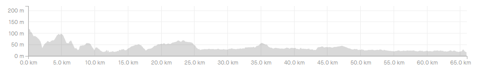 이 날의 총 거리는 65.99km 였고 획득고도는 473m 이다. 여기도 뭐 완전히 평지는 아니지만 나름대로 달릴만하다. 특히 후반부는 거의 평지라고 봐도 된다.