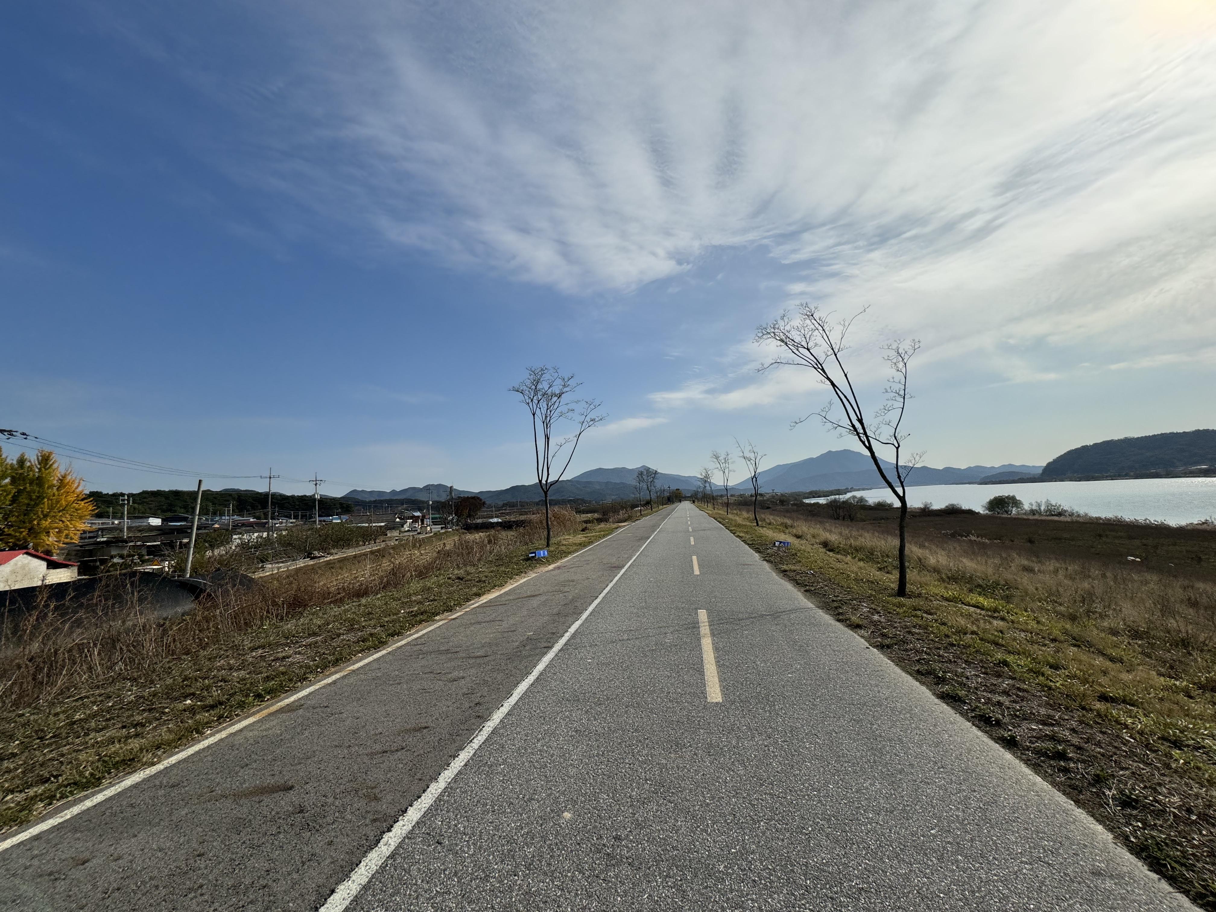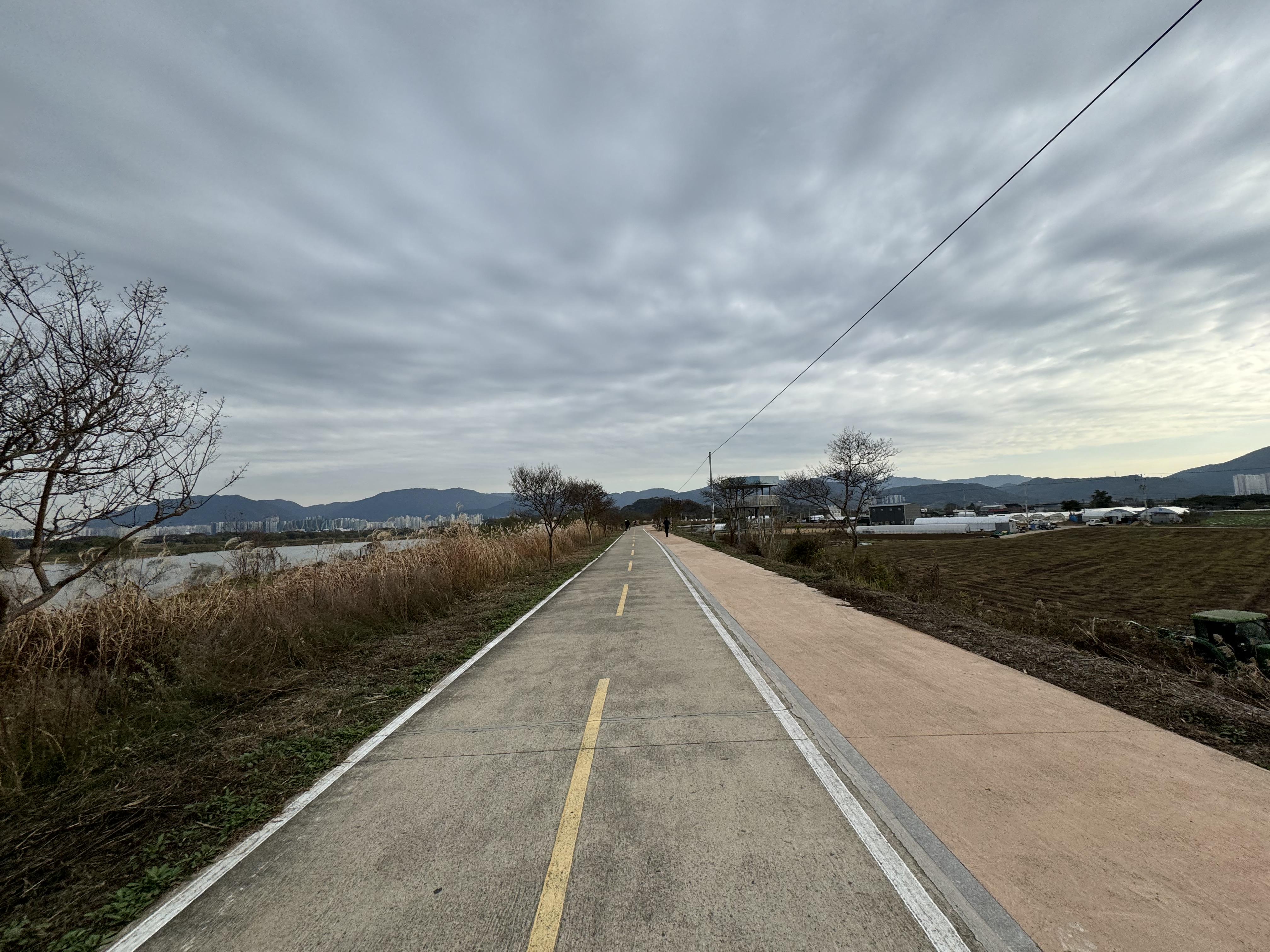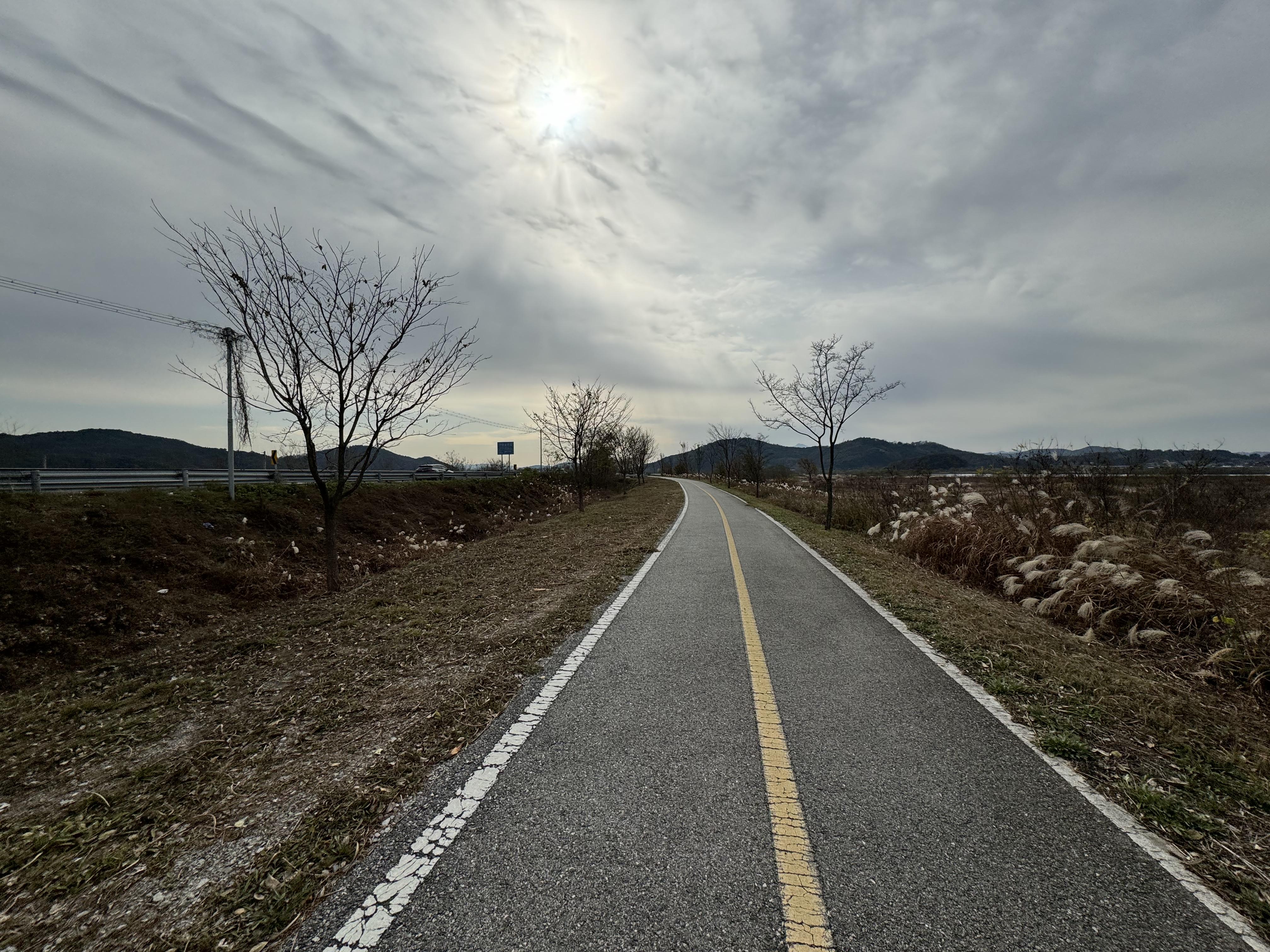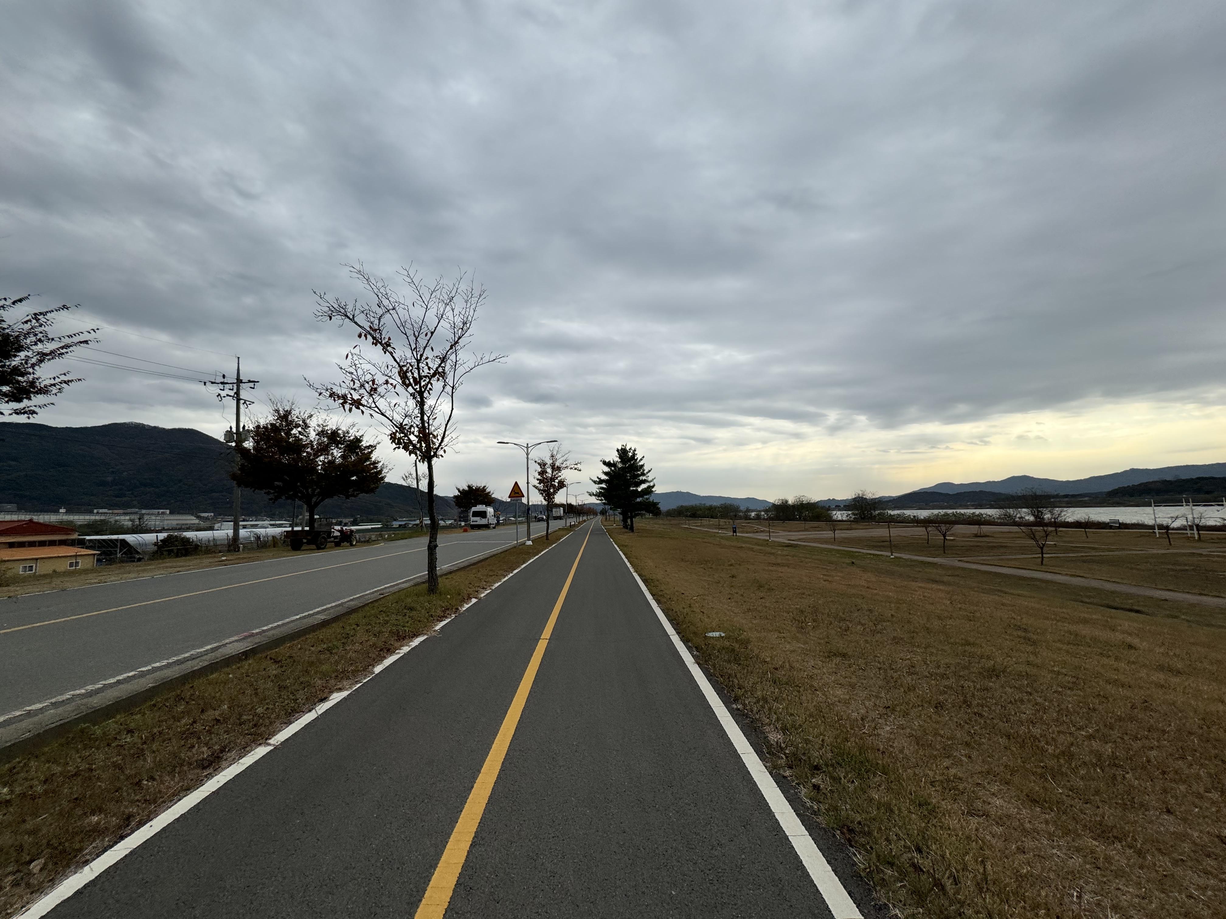 계속해서 아무 생각 없이 자전거 도로를 따라서 달리다보니 앞에서 자전거를 타고 달리고 있는 사람이 보여 반가운 마음에 후다닥 달려가봤더니 동네 주민 분이셨다. 스치듯 안녕... 자전거를 타기에 그렇게 나쁜 날은 아니었는데 여기까지 오도록 자전거를 타고 있는 사람을 한 명도 보지 못 해서 신기했다.