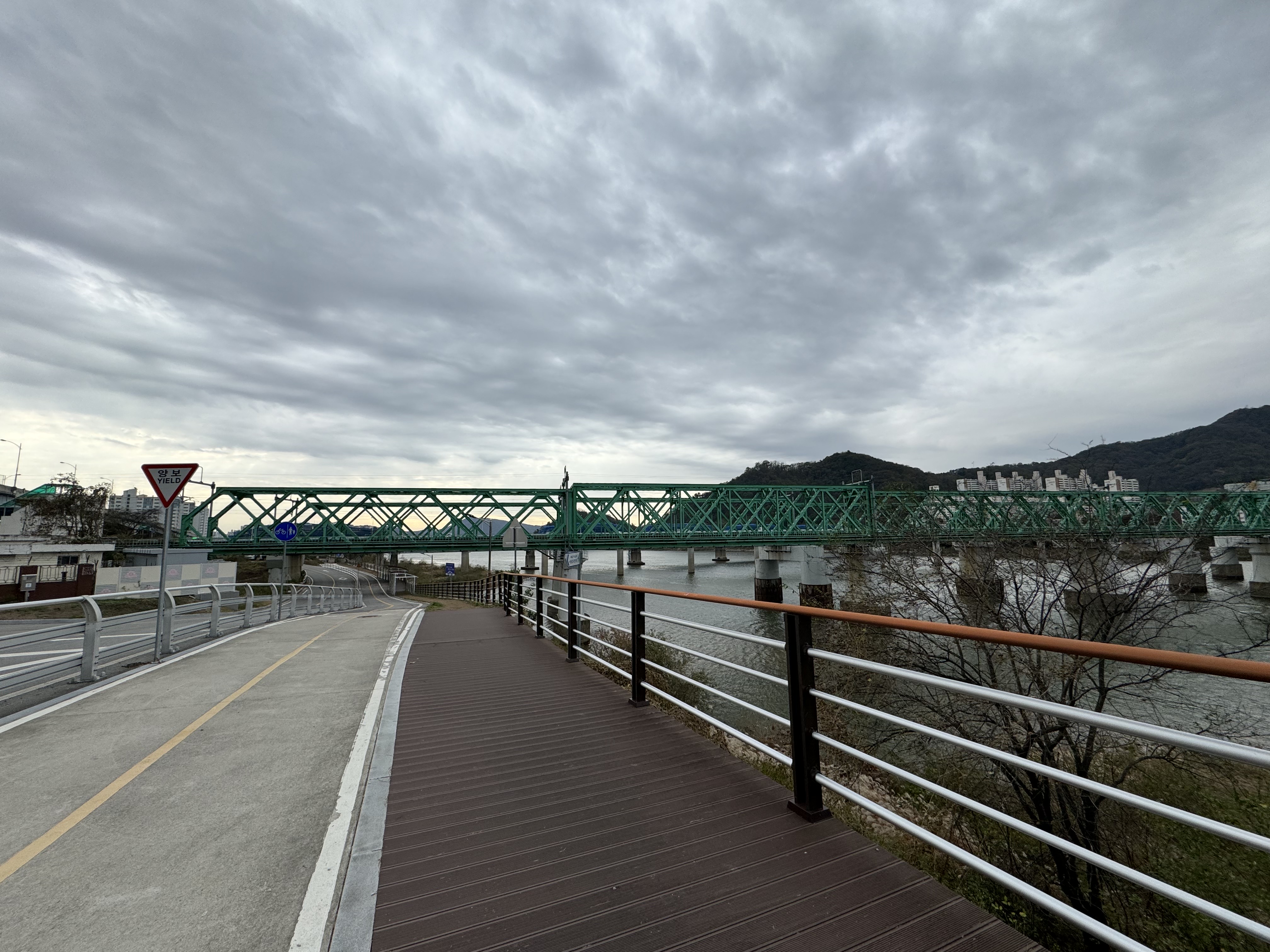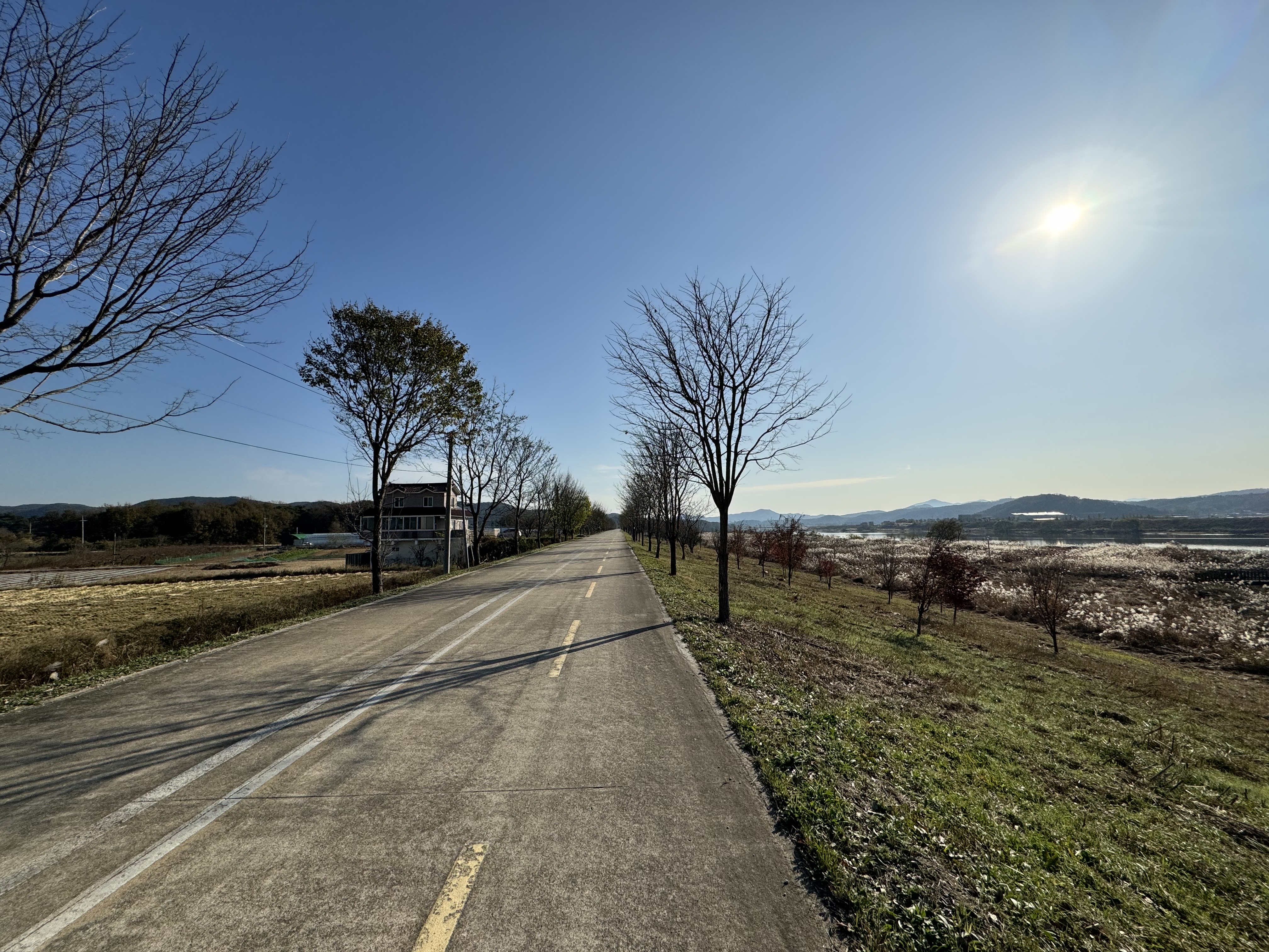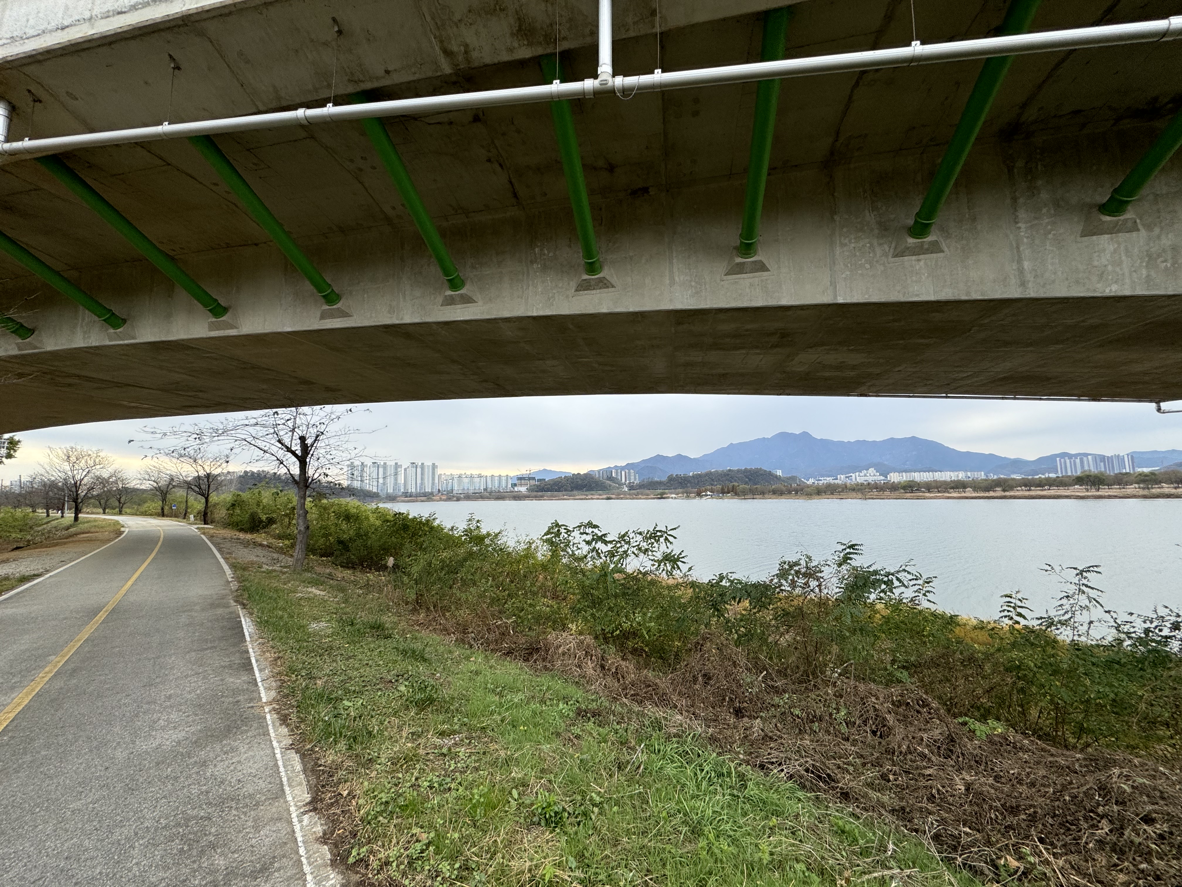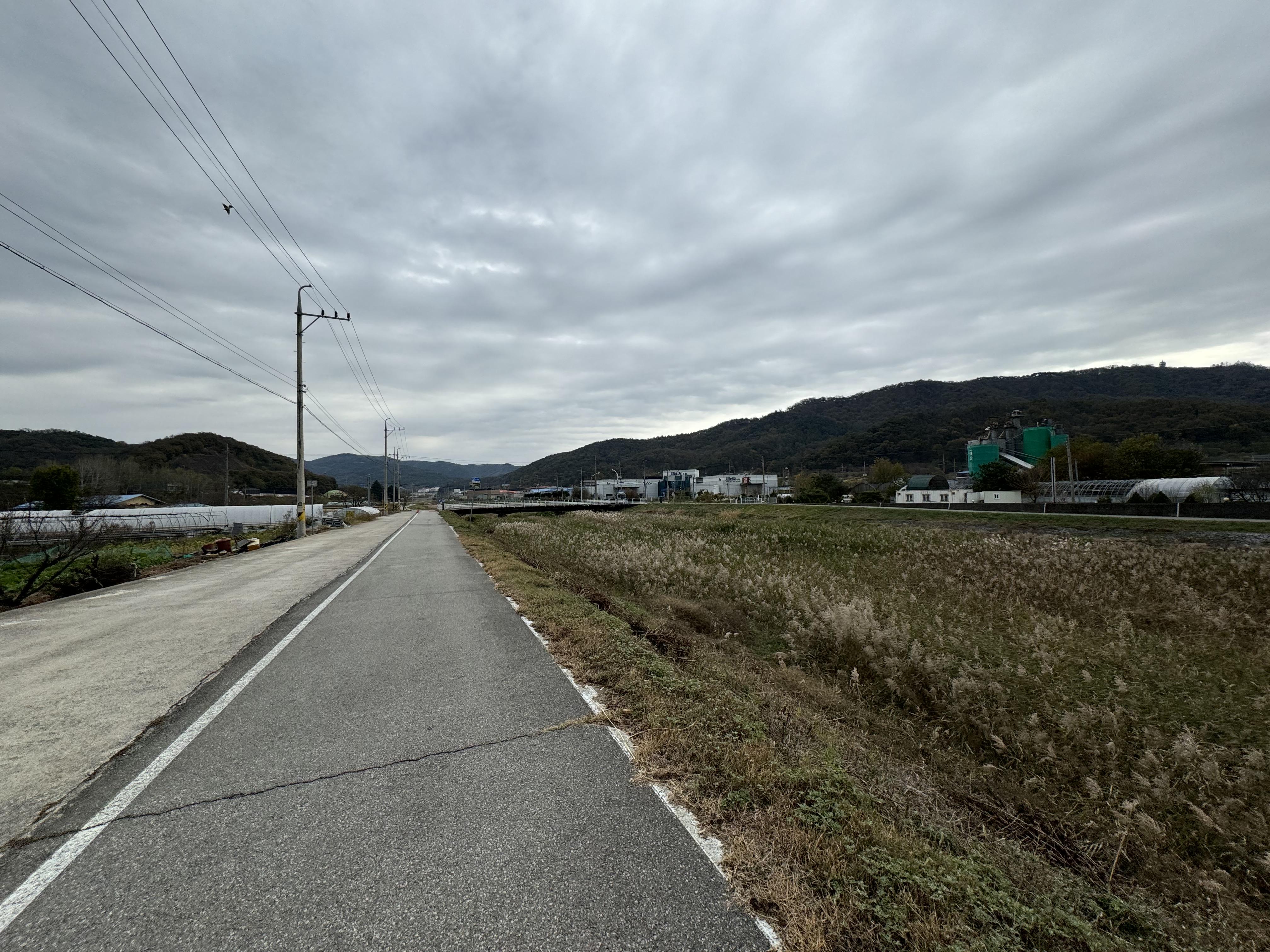 계속해서 아무 생각 없이 자전거 도로를 따라서 달리다보니 앞에서 자전거를 타고 달리고 있는 사람이 보여 반가운 마음에 후다닥 달려가봤더니 동네 주민 분이셨다. 스치듯 안녕... 자전거를 타기에 그렇게 나쁜 날은 아니었는데 여기까지 오도록 자전거를 타고 있는 사람을 한 명도 보지 못 해서 신기했다.