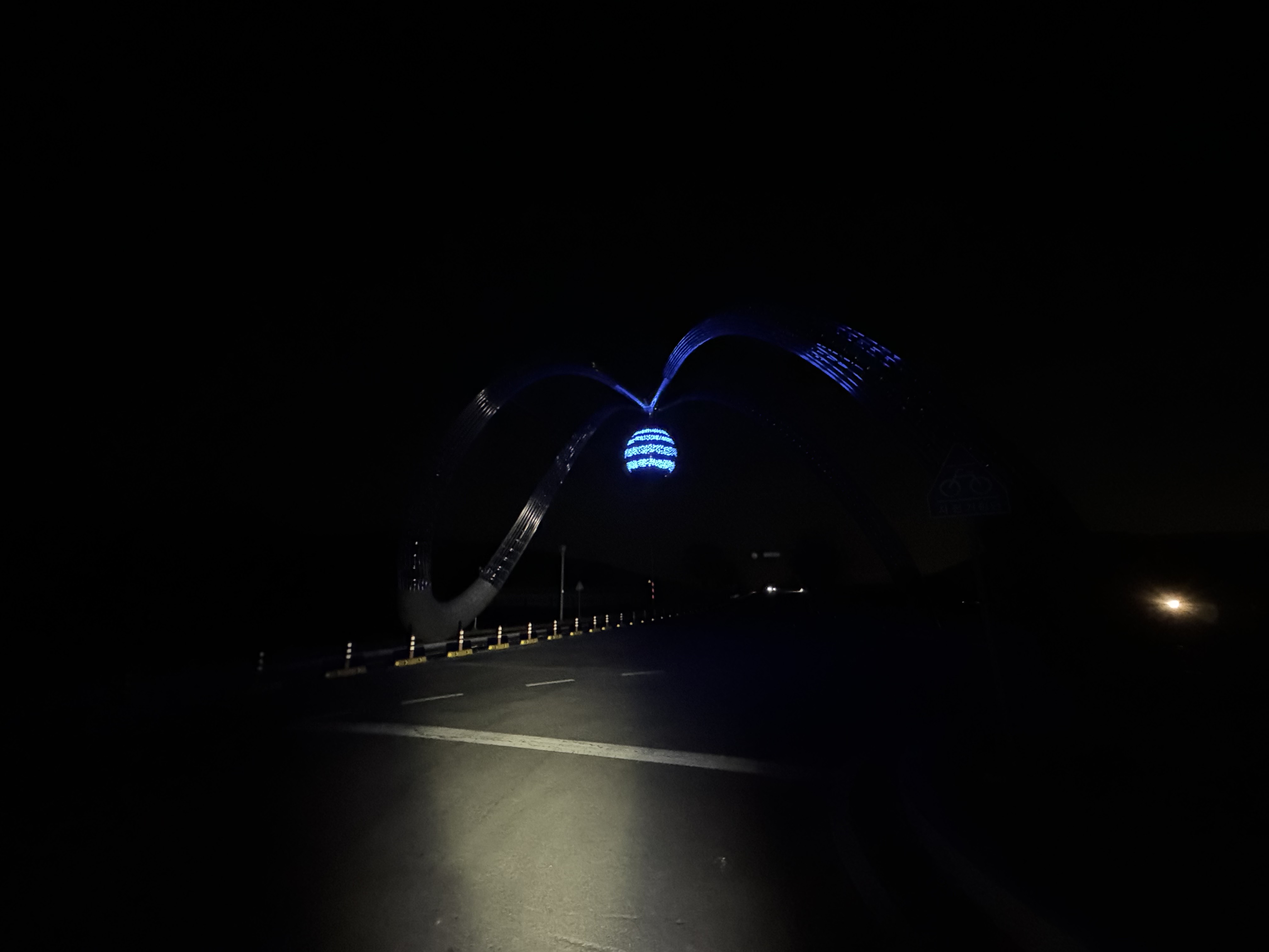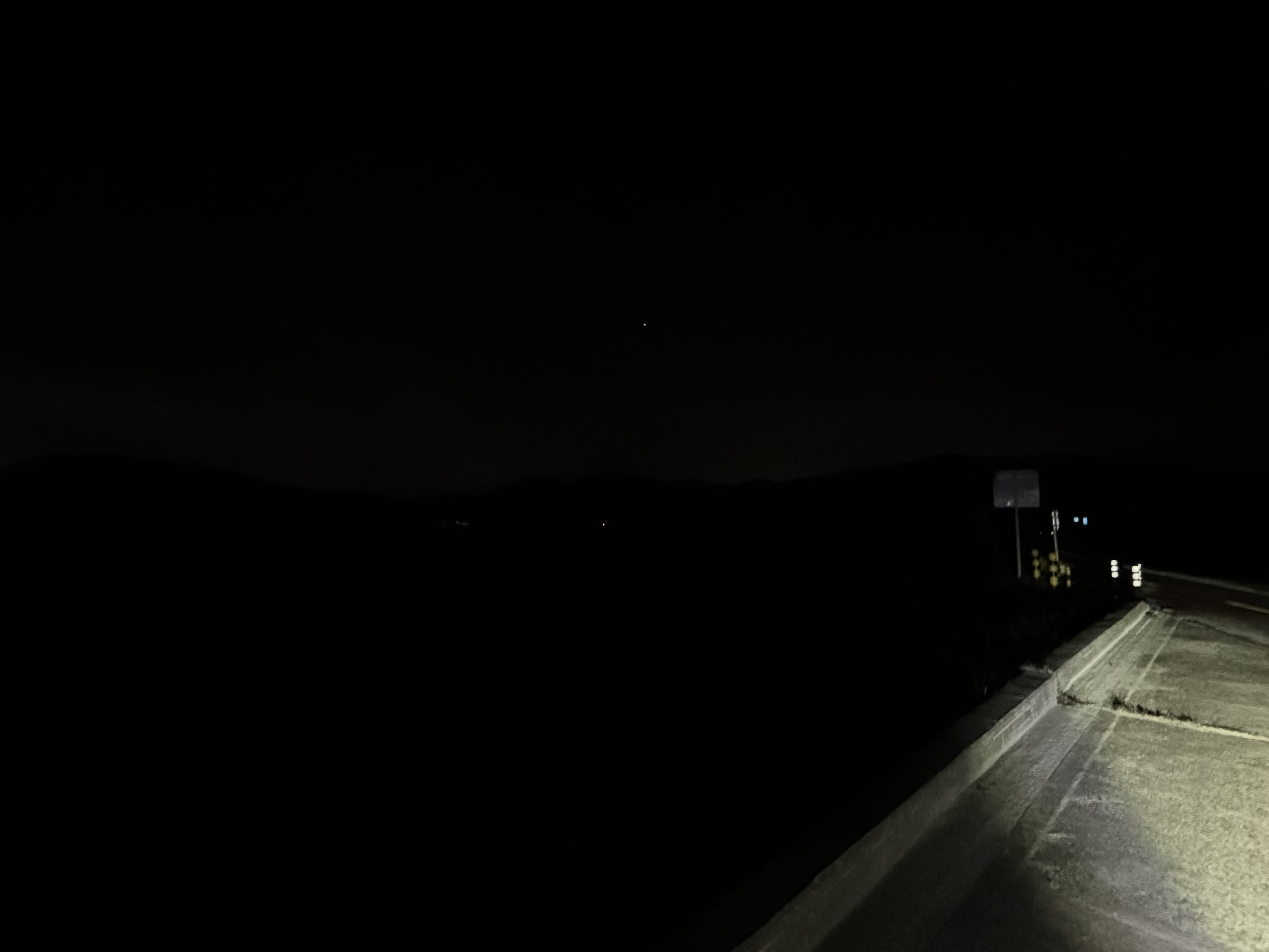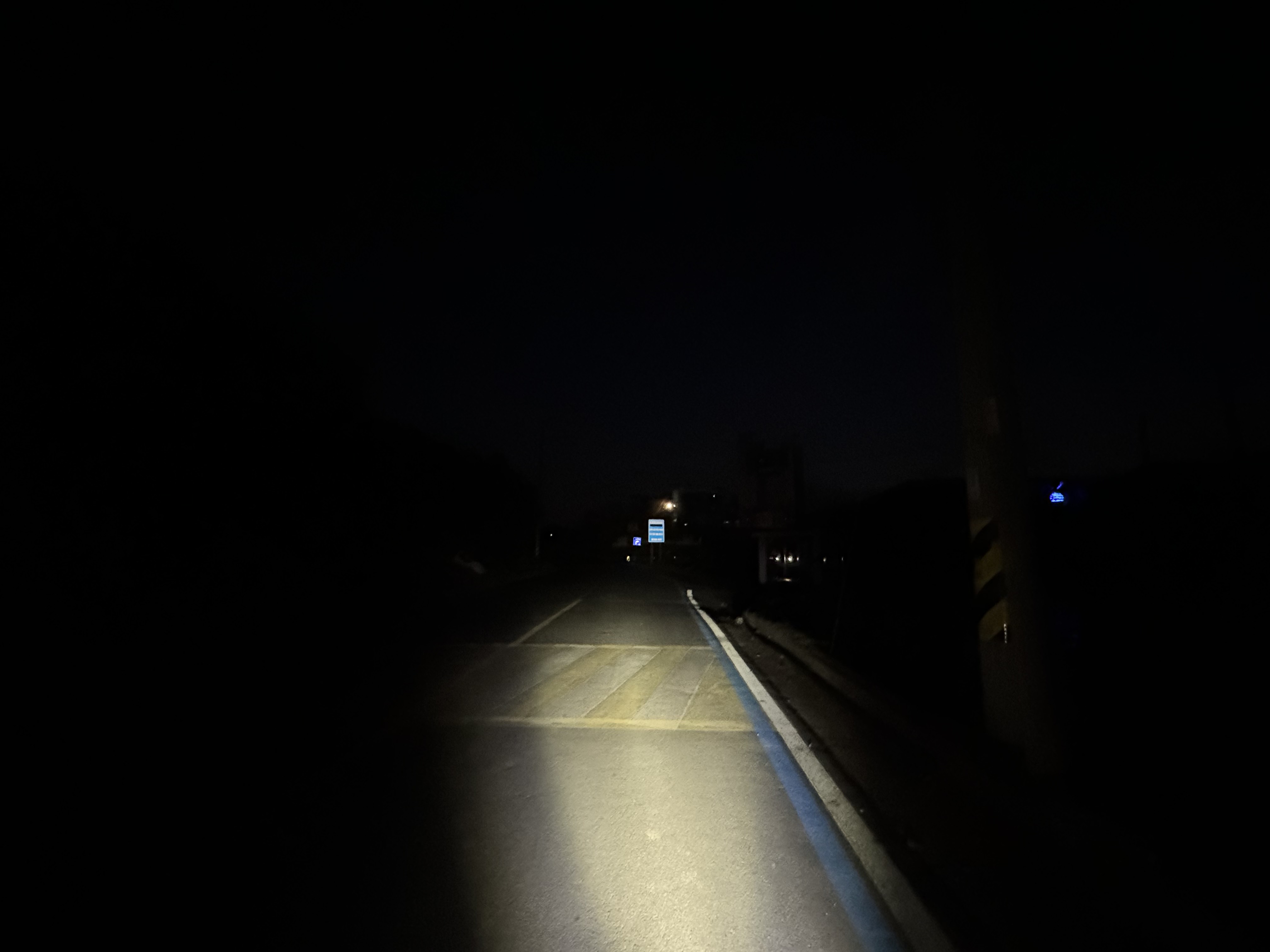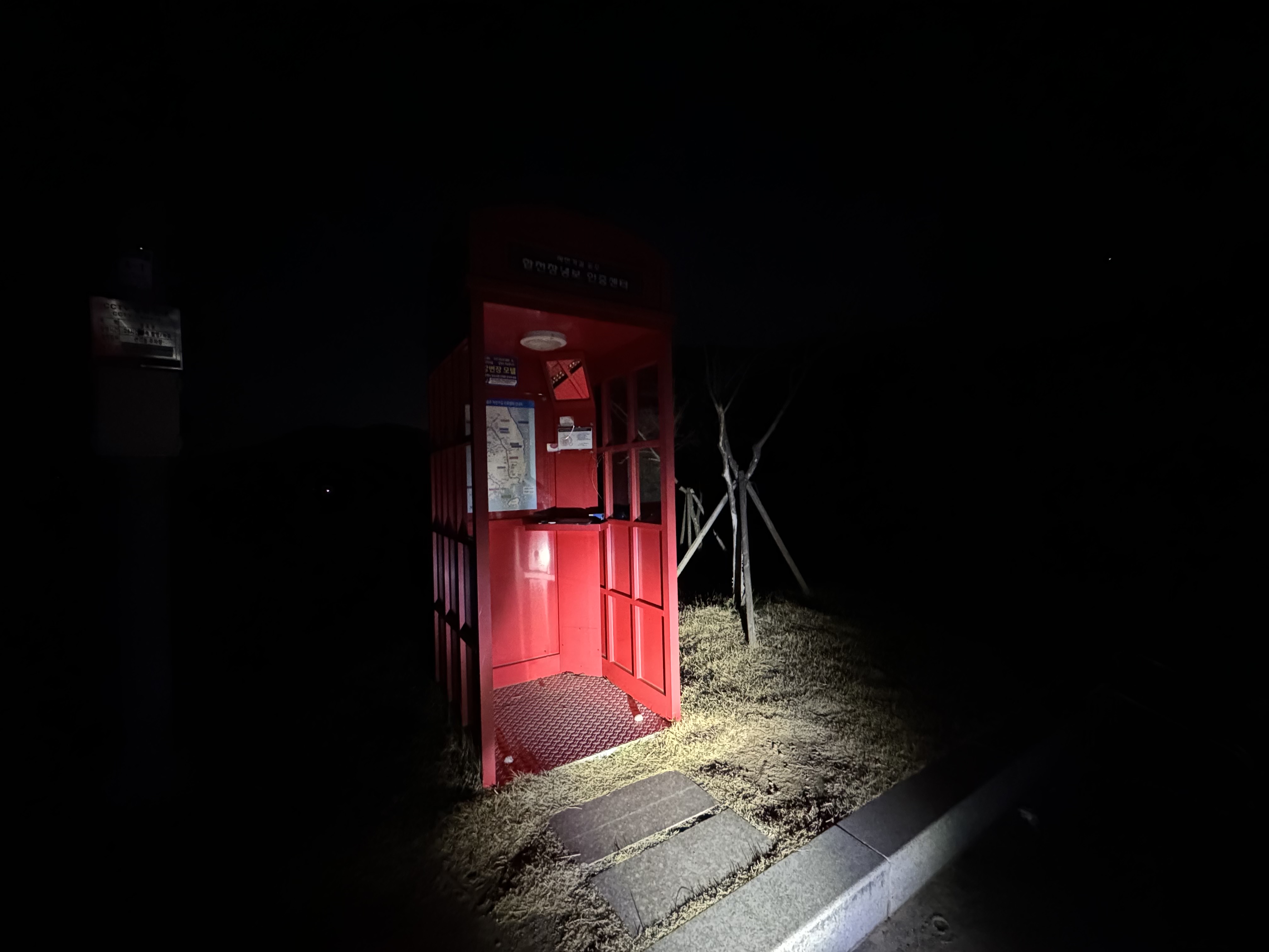 어둠을 헤치며 적포삼거리를 향해서 가던 길에 갑자기 예상치도 못 했던 가로등이 나왔다. 어? 여긴 왜 이렇게 밝지? 이 쪽 구간은 라이더들을 위해 가로등이 설치가 되어 있는건가? 라고 감탄 했는데 잘 생각해보니 사진으로는 잘 보이지 않지만 이 쪽에는 커다란 암벽이 하나 있는데 아마 이 암벽을 보러 온 사람들을 위한 가로등인 것 같았다. 그도 그런 게 암벽 구간이 끝나니 바로 가로등이 없어졌었다...