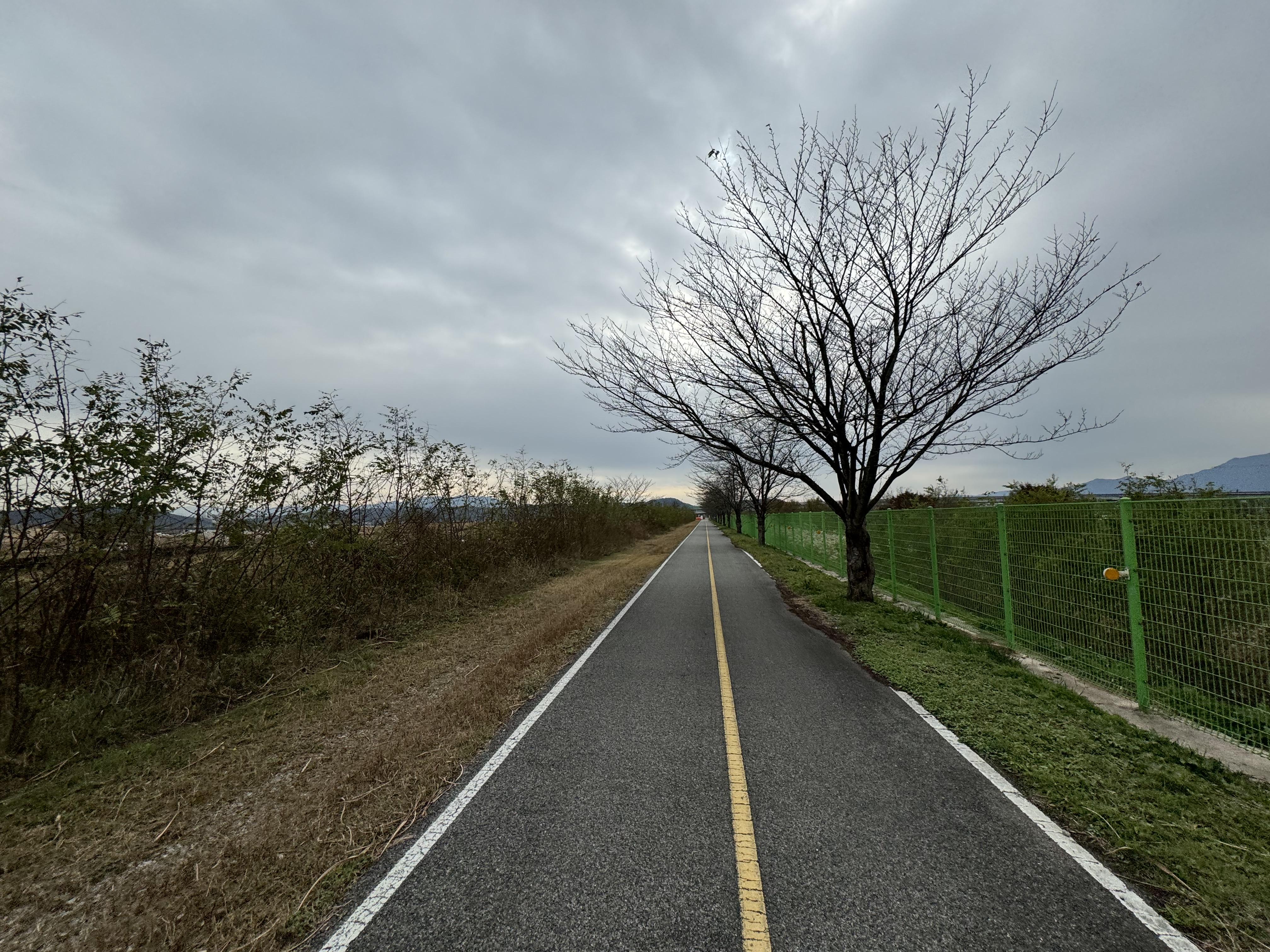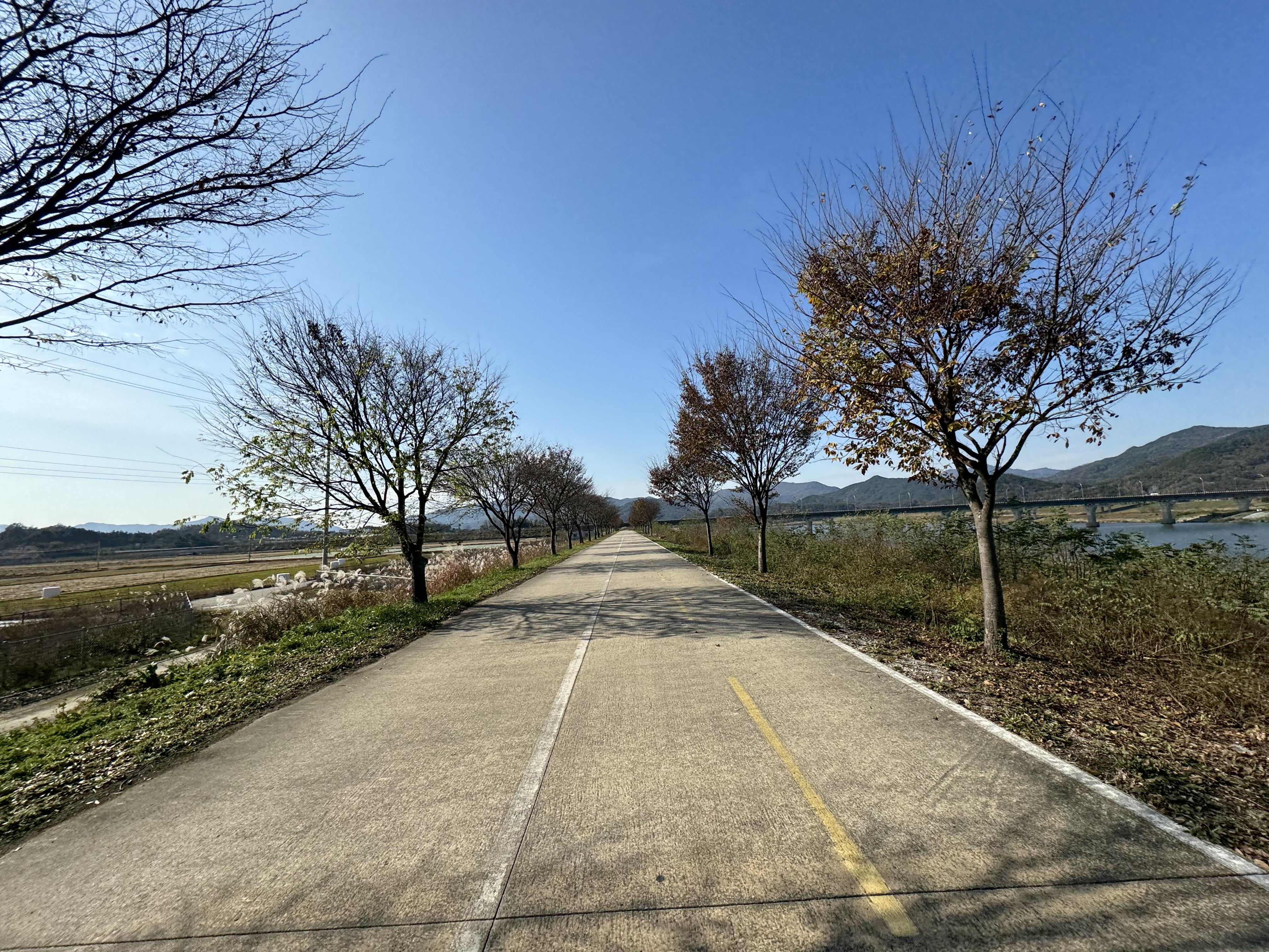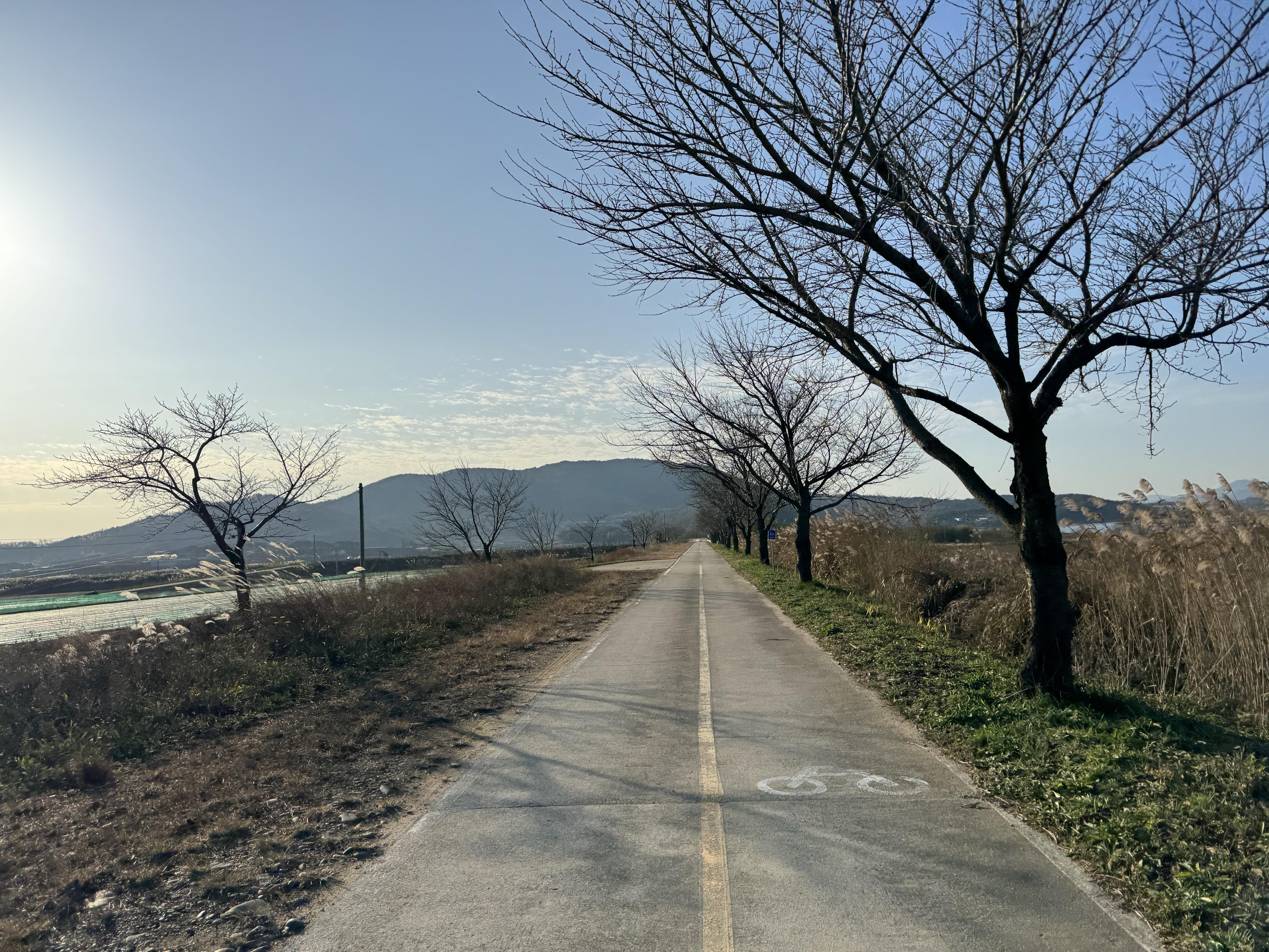 구미보 인증센터로 가는 길도 특별할 게 없다. 내 기억이 맞다면 이 쪽 구간에 유채꽃이 엄청나게 많이 피어있었던 것 같은데 역시나 가을? 겨울? 이 되니 휑한 풍경이 되어 있었다. 친구가 3월인가에 국토종주를 했을 때 볼 게 하나도 없이 엄청 휑했다고 했는데 아마 그 때의 그 기분을 내가 느끼고 있는 게 아닐까.