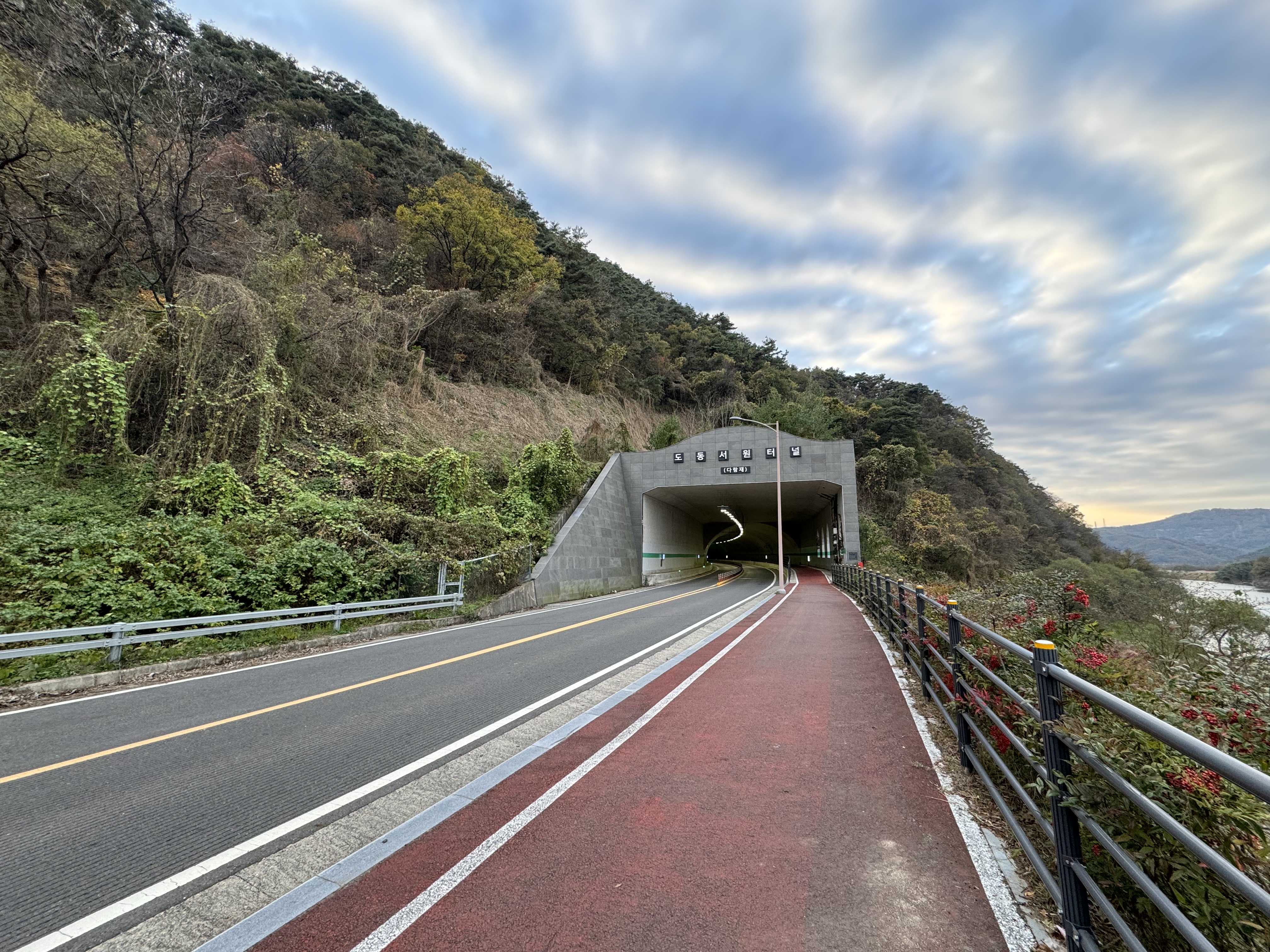 마음 같아서는 낙동강에 있는 모든 업힐을 다 넘고 싶었지만 이제는 그런 거 없다. 다람재도 아무 고민 없이 바로 우회하는 터널로 들어가서 달렸다. 도동터널로 가는 길이 전에는 엄청 별로였던 걸로 기억 하는데 포장을 새로 했는지 꽤나 말끔해져 있었던 게 인상에 남는다.