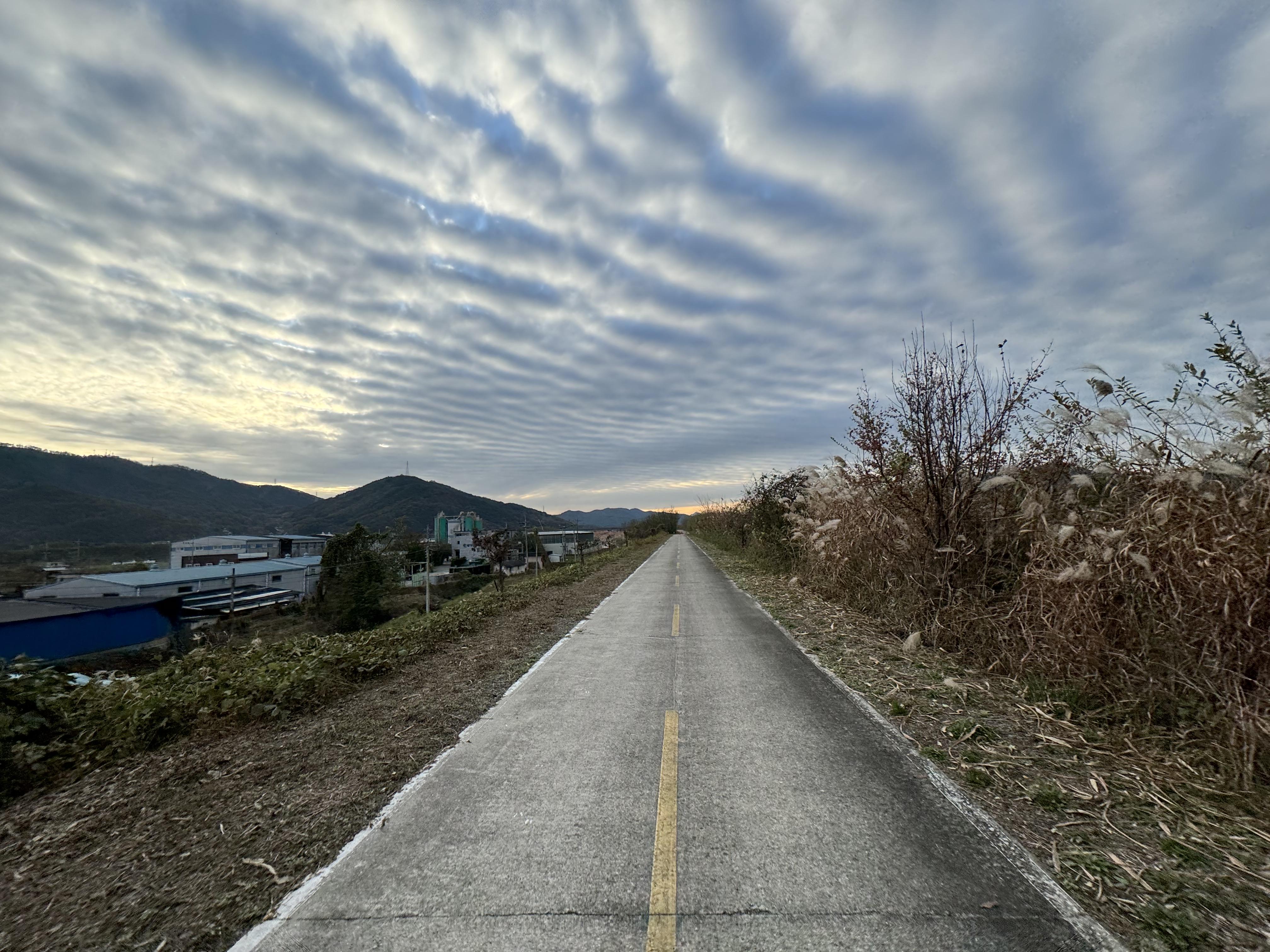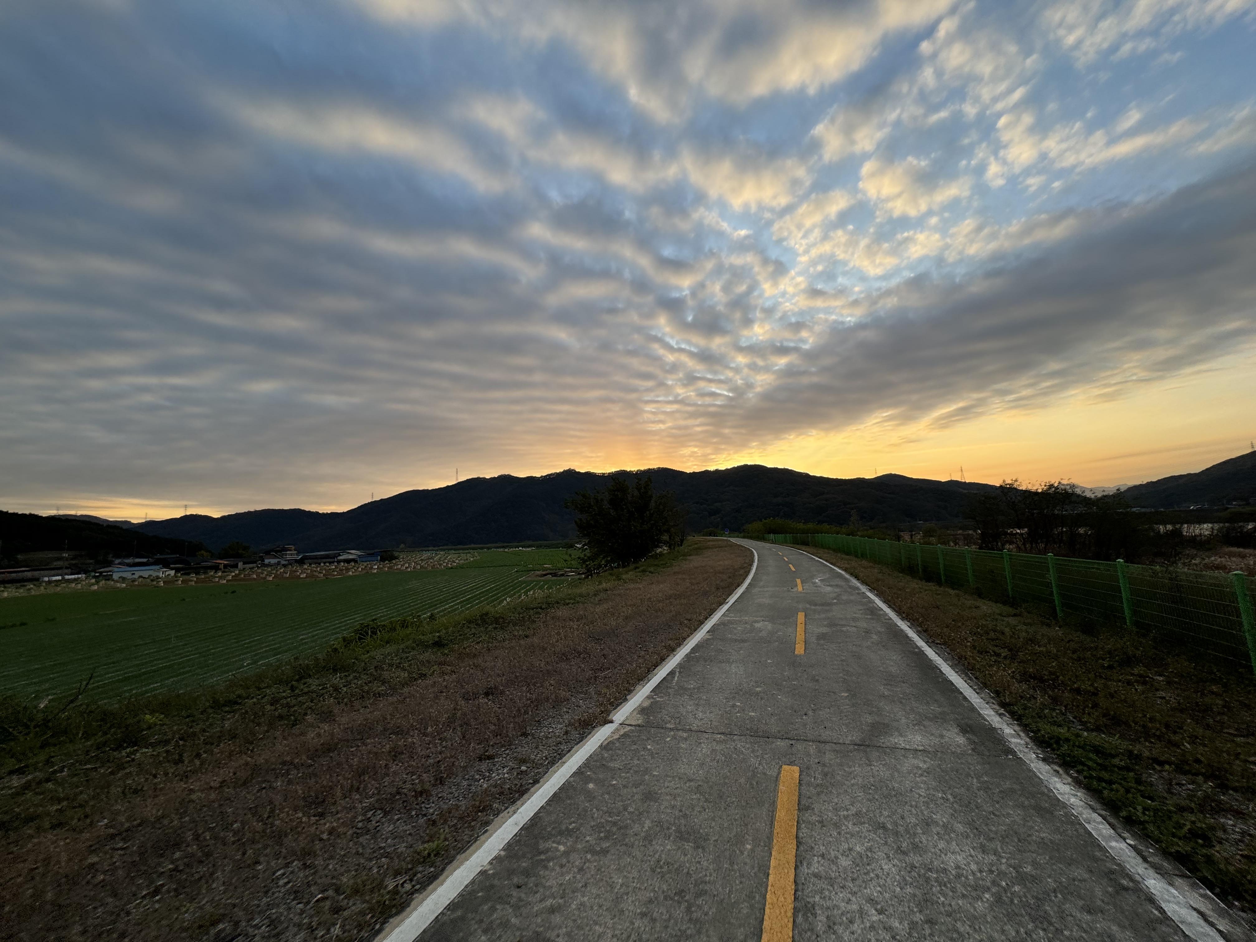 달성보 인증센터로 달리면서 곧 어두워지겠다는 생각을 계속 했는데 하늘이 너무 예뻐서 계속해서 발을 멈추게 됐다. 특히나 네번째, 다섯번째 사진을 찍을 때는 정말 하늘이 그래픽 같았달까 빨려들어가는 느낌이 들었었는데 사진으로는 그 느낌을 전부 담아내지 못 해서 너무 아쉽다.