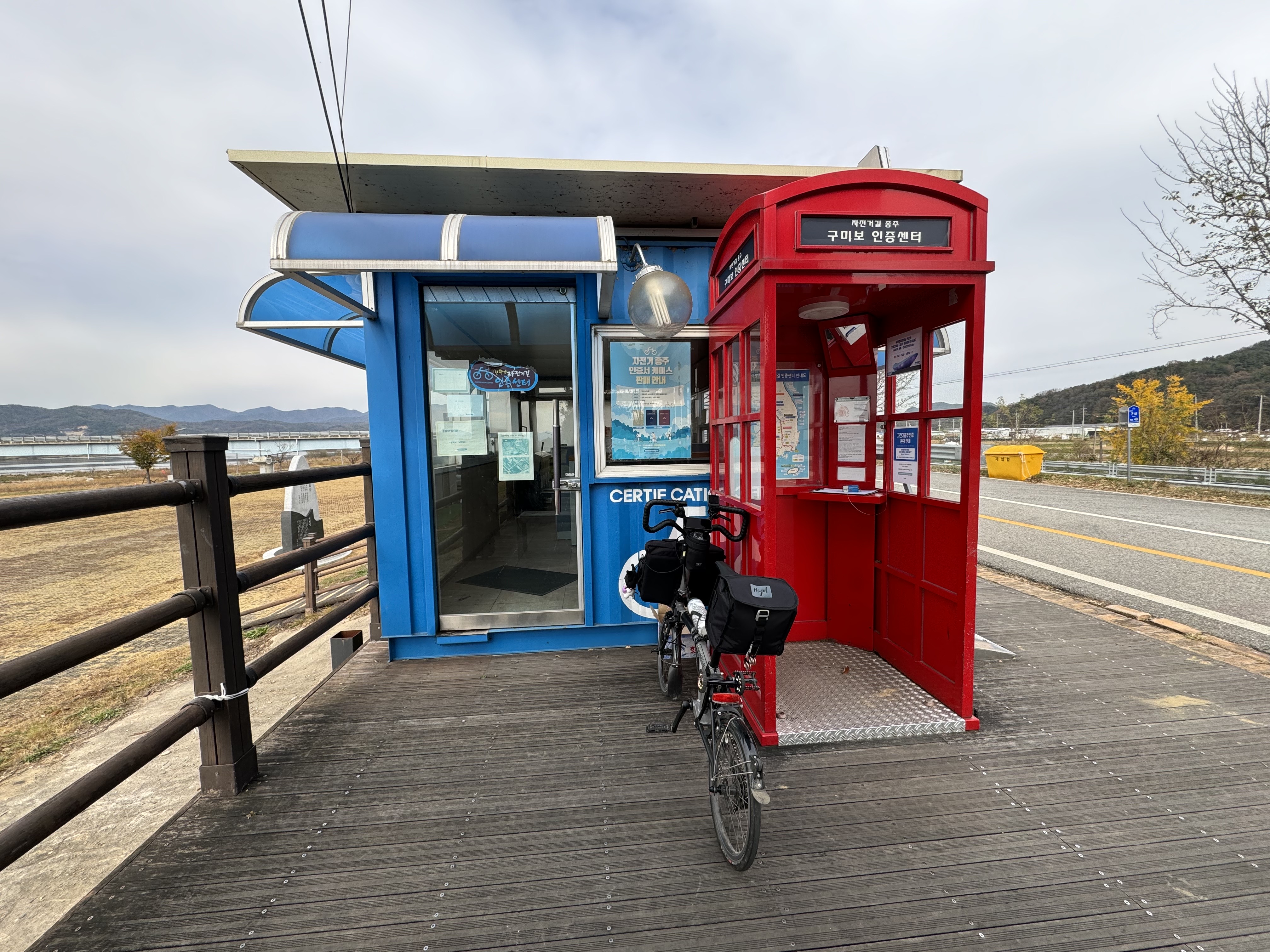 구미보 인증센터에 도착하니 라이더 분들을 몇 분인가 만날 수 있었다. 그 중에 두 분은 부부셨는데 외국인이라서 말이 통하지 않아서 뭔가 대화를 하지는 못 했다. 버디를 타고 계셨는데 은근히 보면 버디로 여기저기 돌아다니고 계신 분들이 많은 것 같다. 하긴 버디가 기어비도 그렇고 장거리를 달리기에는 브롬톤보다 아주 많이 편할 것 같다.