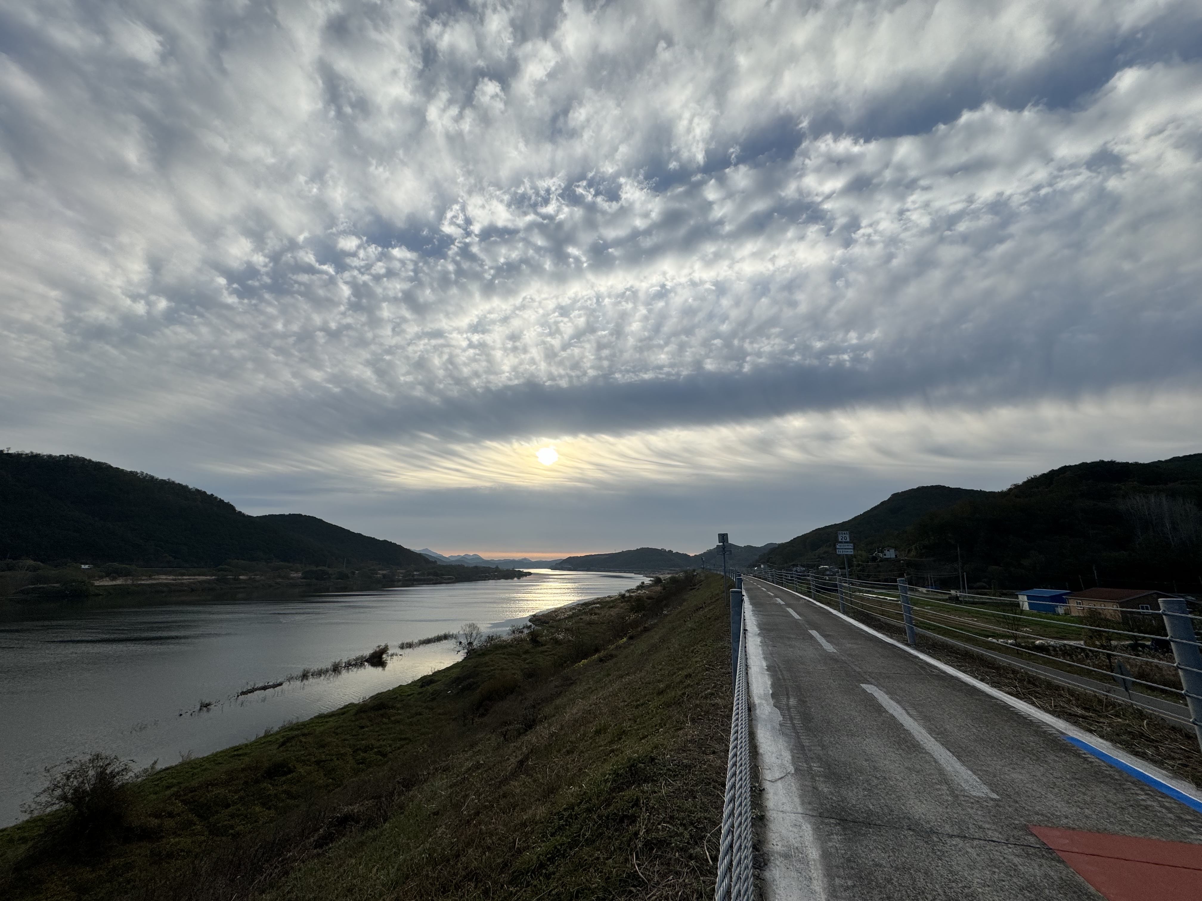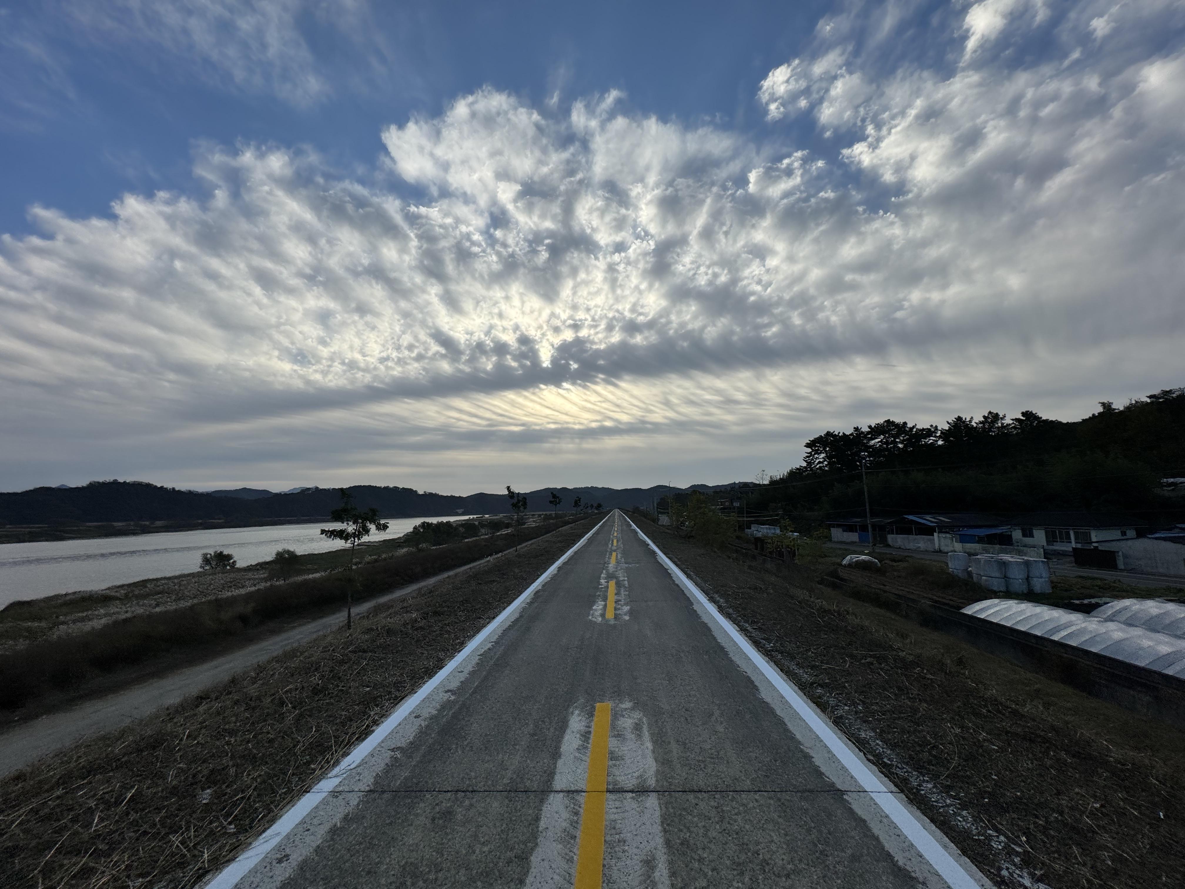 전 날 라이딩을 하면서 가장 기분 좋았던 게 하늘이 너무 멋있다는 것이었는데 이 날도 아침부터 구름이 너무 멋있었다. 이게 바로 그 가을 하늘의 정취라는 건가? 이 날도 빡세게 달려야 했는데 하늘 사진을 찍느라 자꾸만 발을 멈추게 됐다.
