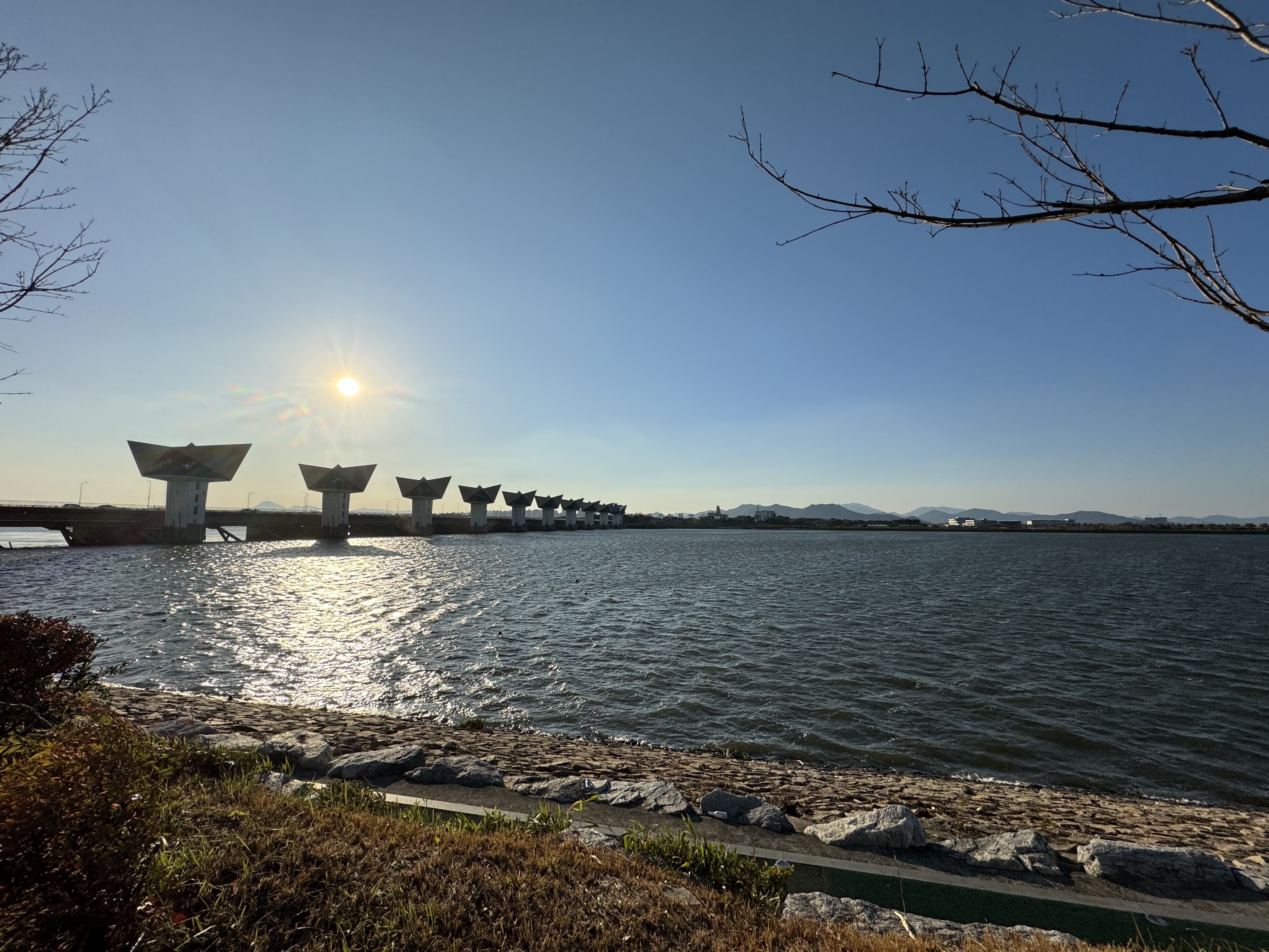 티거맨이 사다준 마카롱과 아메리카노로 기운을 보충하고 30분 정도 수다를 떨다가 마지막 목적지인 낙동강하굿둑 인증센터를 향해 출발했다. 내가 약속시간보다 40분이나 늦지만 않았으면 밥을 먹어도 됐었을 것 같은데 늦어버렸으니 어쩔 수가 없었다. ㅠㅠ