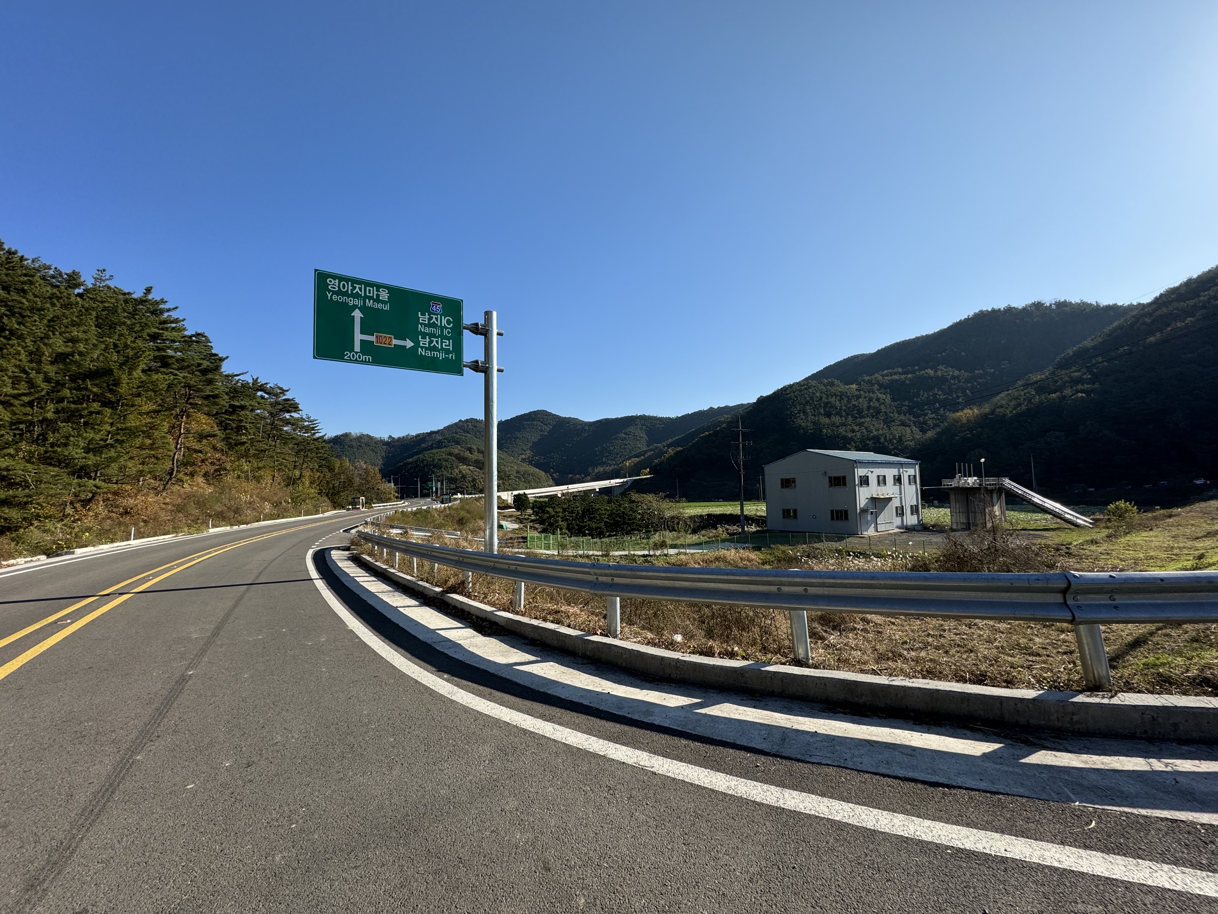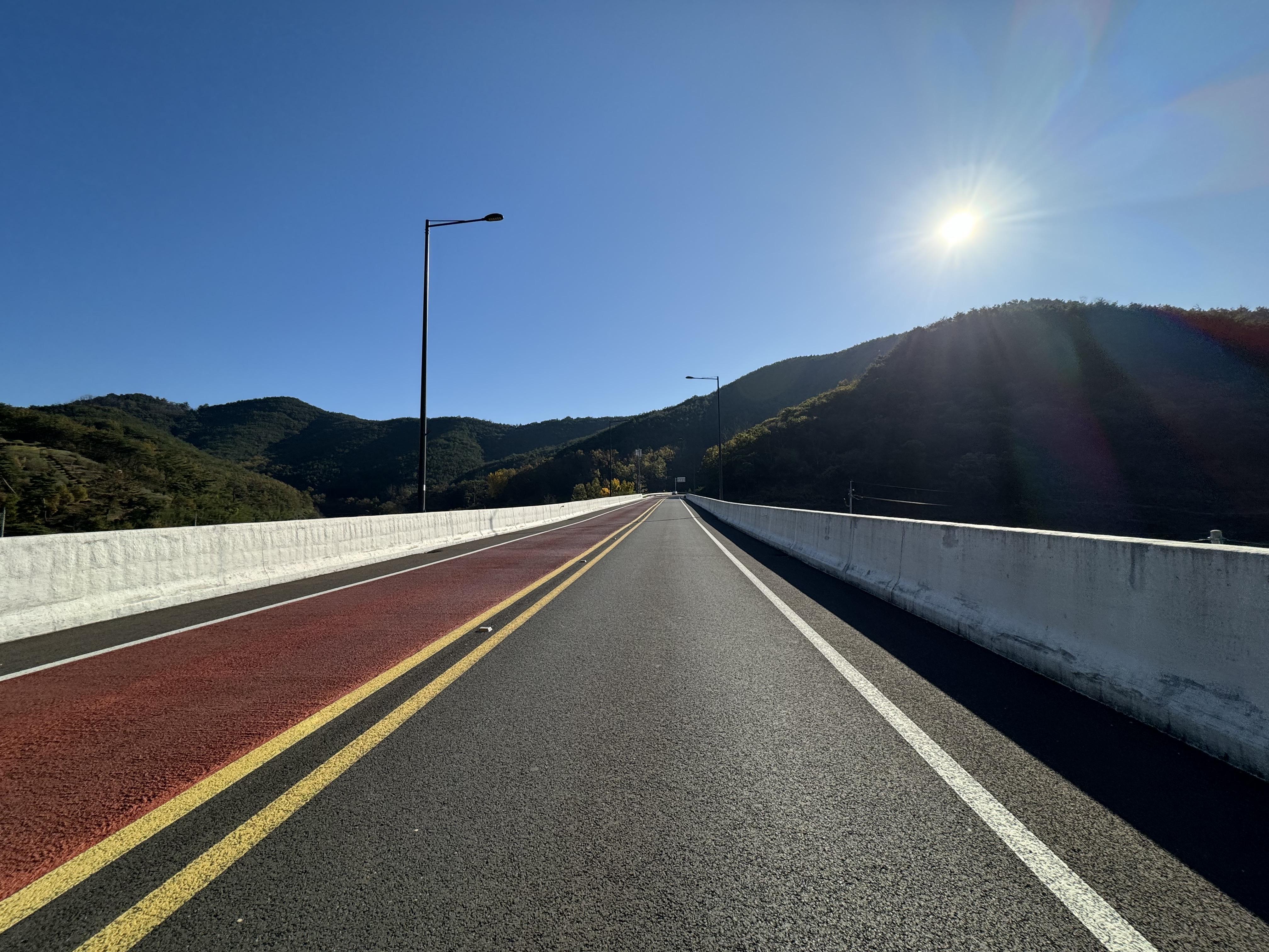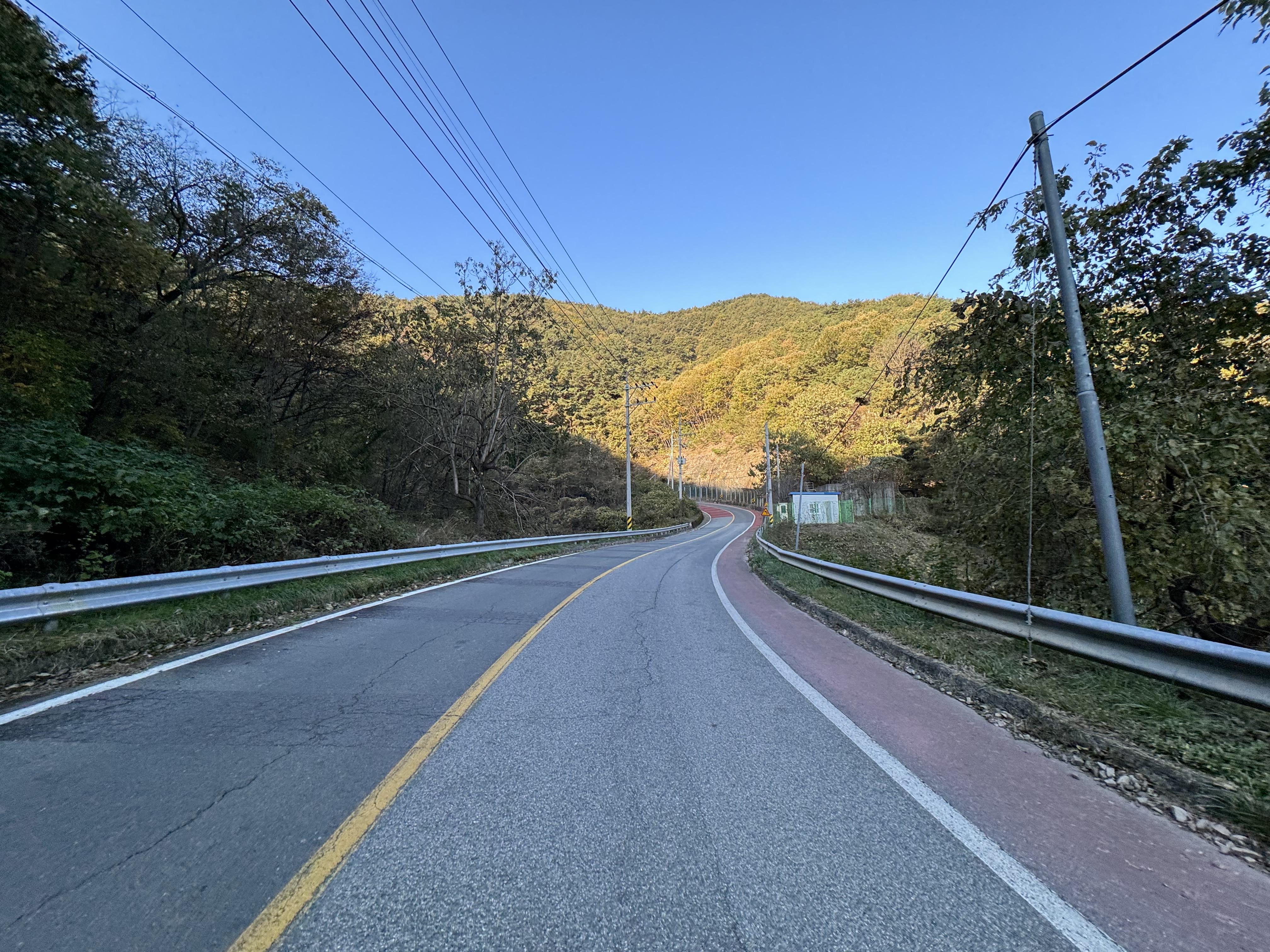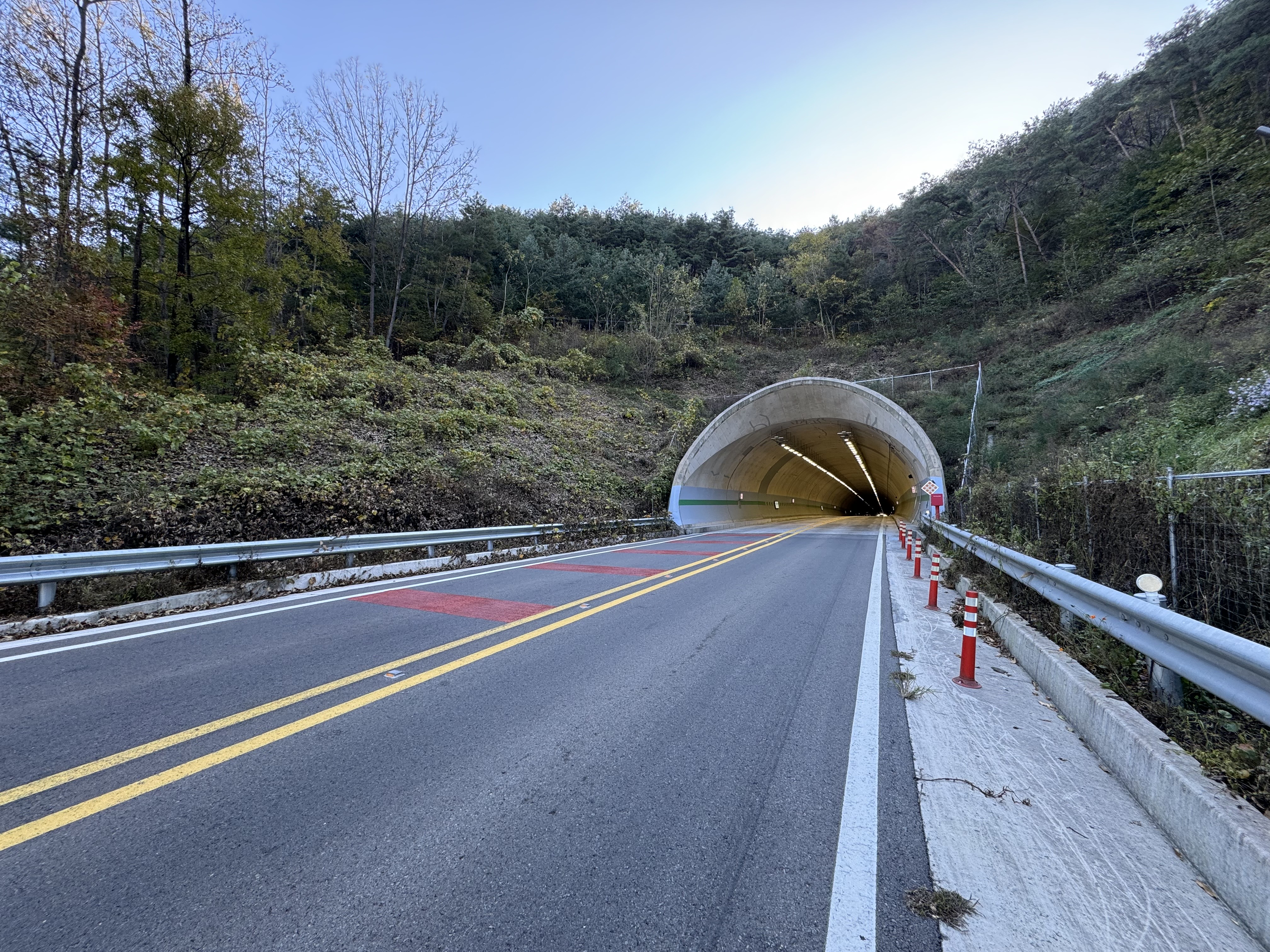 영아지 고개 우회길은 터널을 총 2개를 지나는데 첫 번째 터널은 오르막이었고 두 번째 터널은 내리막이었다. 첫 번째 터널을 지나면서는 우회길도 만만치 않네... 하고 생각 했다가 두 번째 터널을 지나면서는 첫 번째 터널에서 고생한 보상이 주어지는 느낌이었다. 진짜 이 다운힐이 계속해서 이어지면 좋겠다는 생각이 절로 들었다.