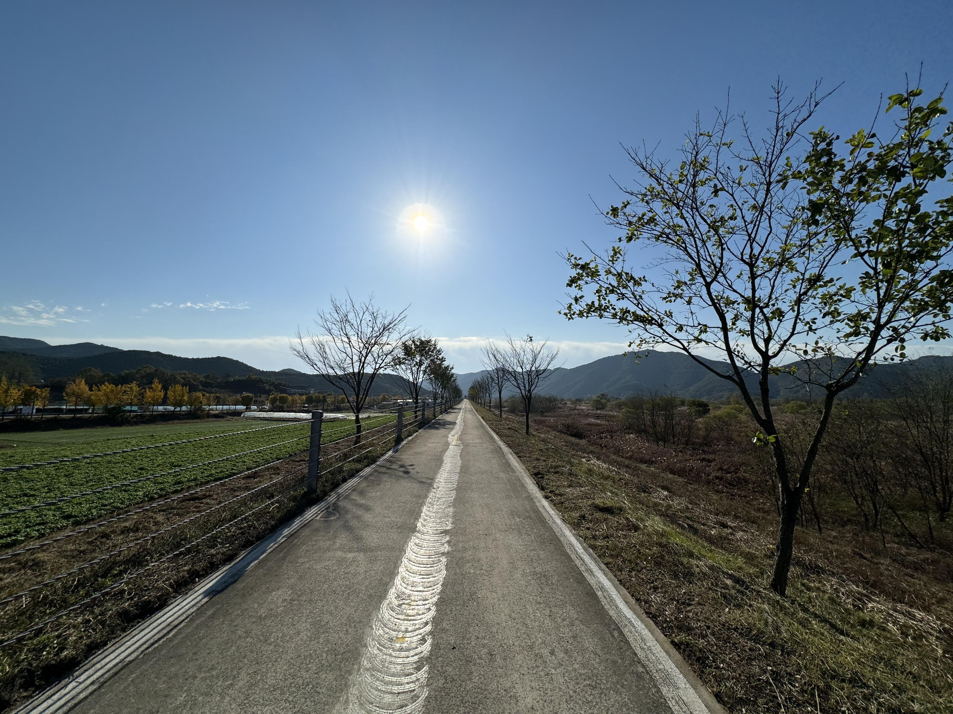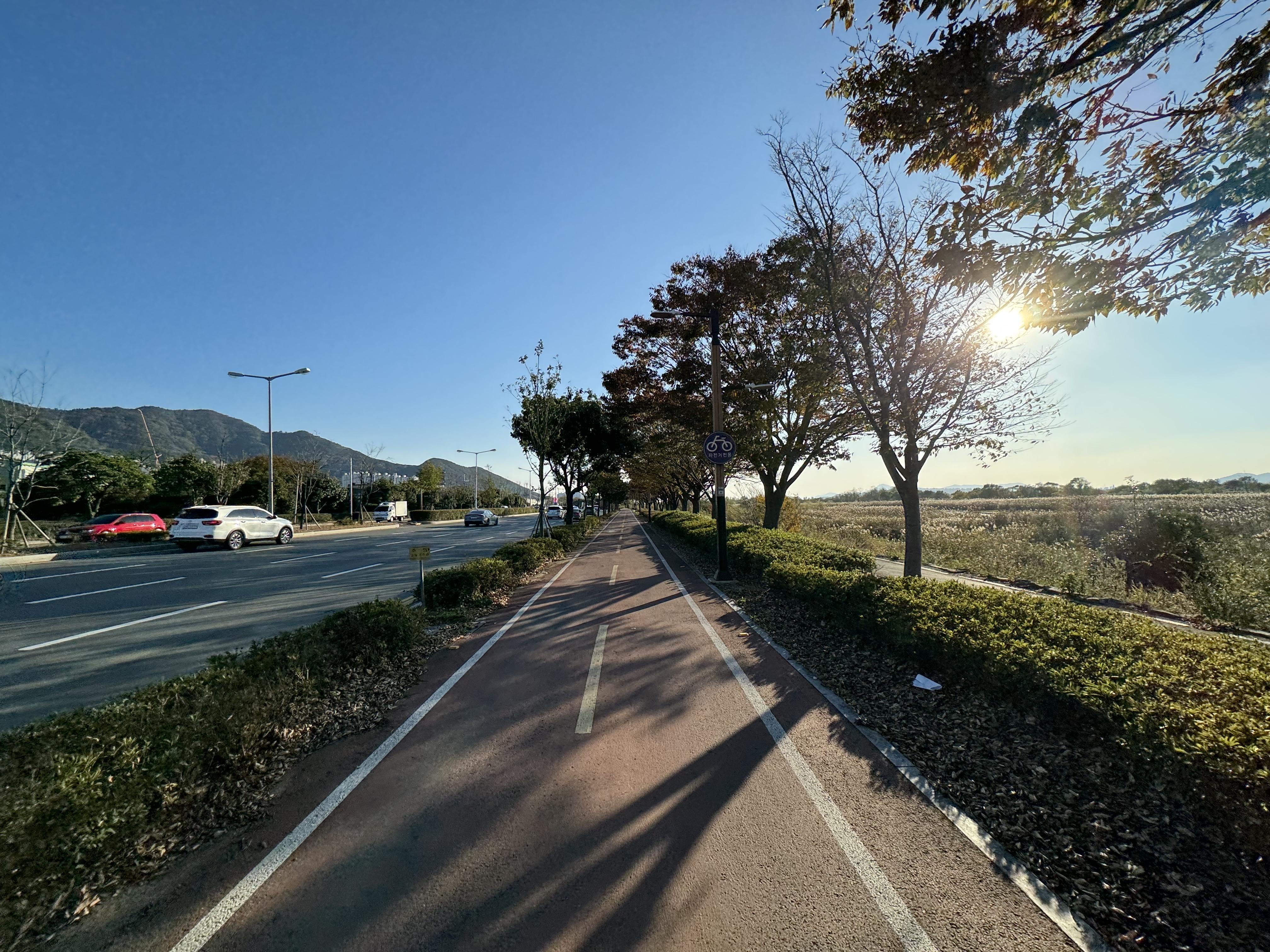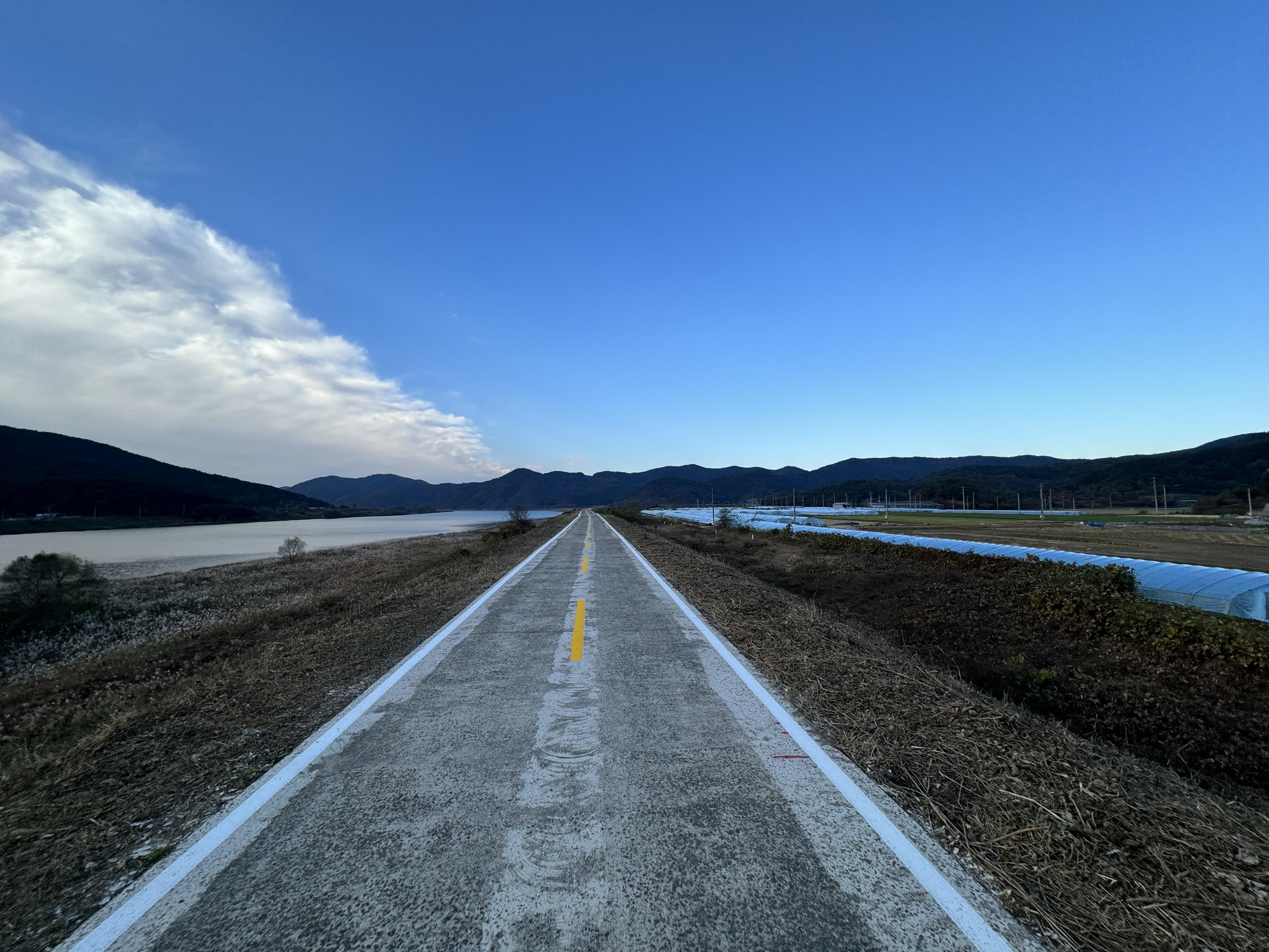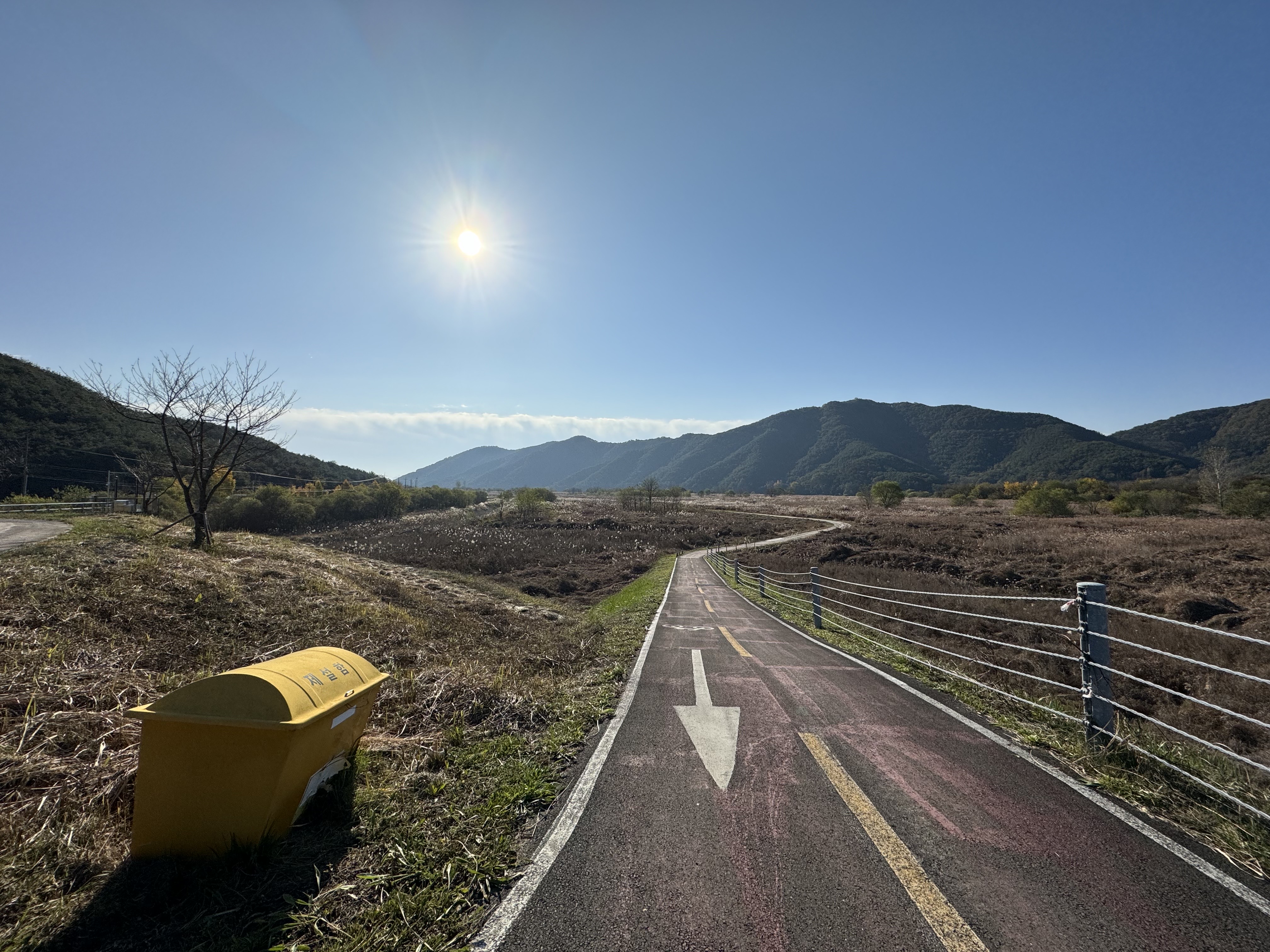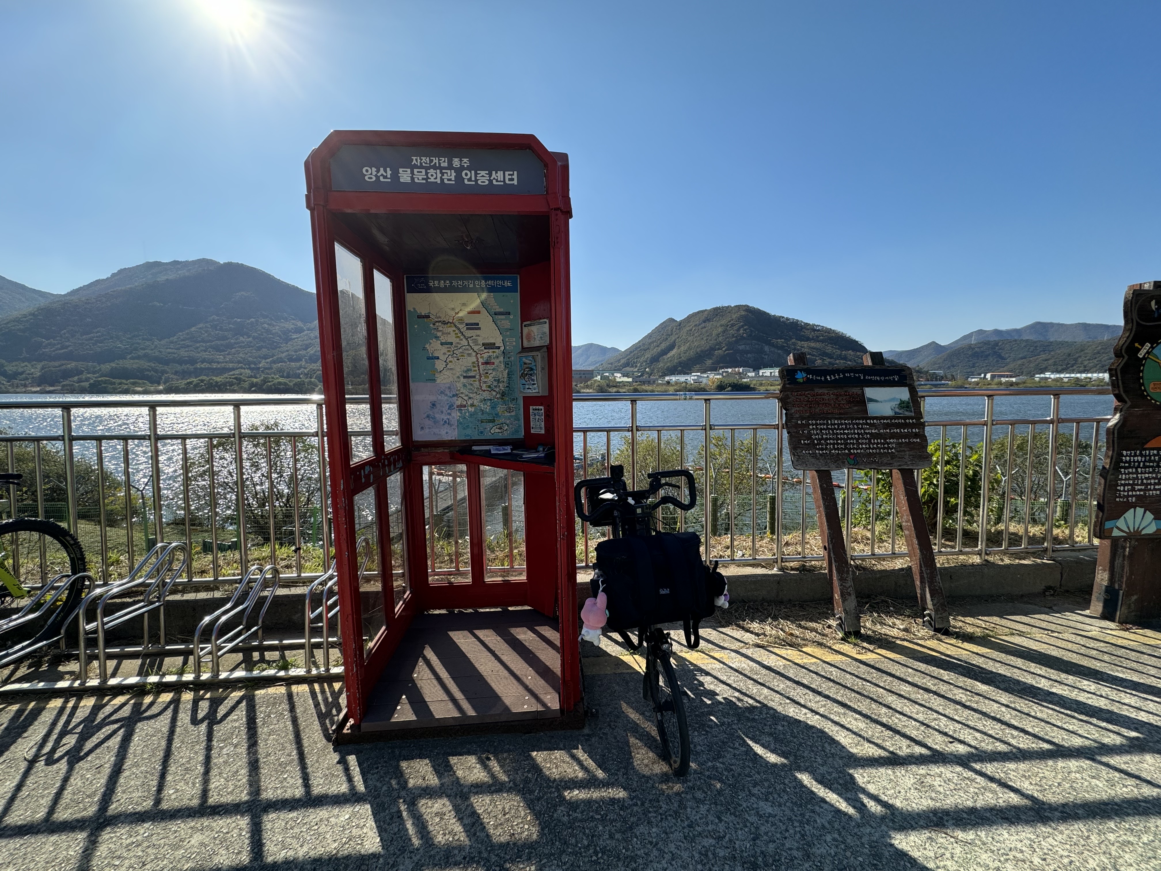 티거맨에게 두 시간 정도면 양산물문화관 인증센터에 도착할 수 있을거라 했었는데 앞으로 40분은 더 걸릴 것 같다는 메세지를 남기고 다시 열심히 페달을 밟았다. 도대체 왜 이렇게 오래 걸린건지 이 글을 적는 지금 생각해봐도 알 수가 없다. 길도 분명히 엄청 좋았는데.