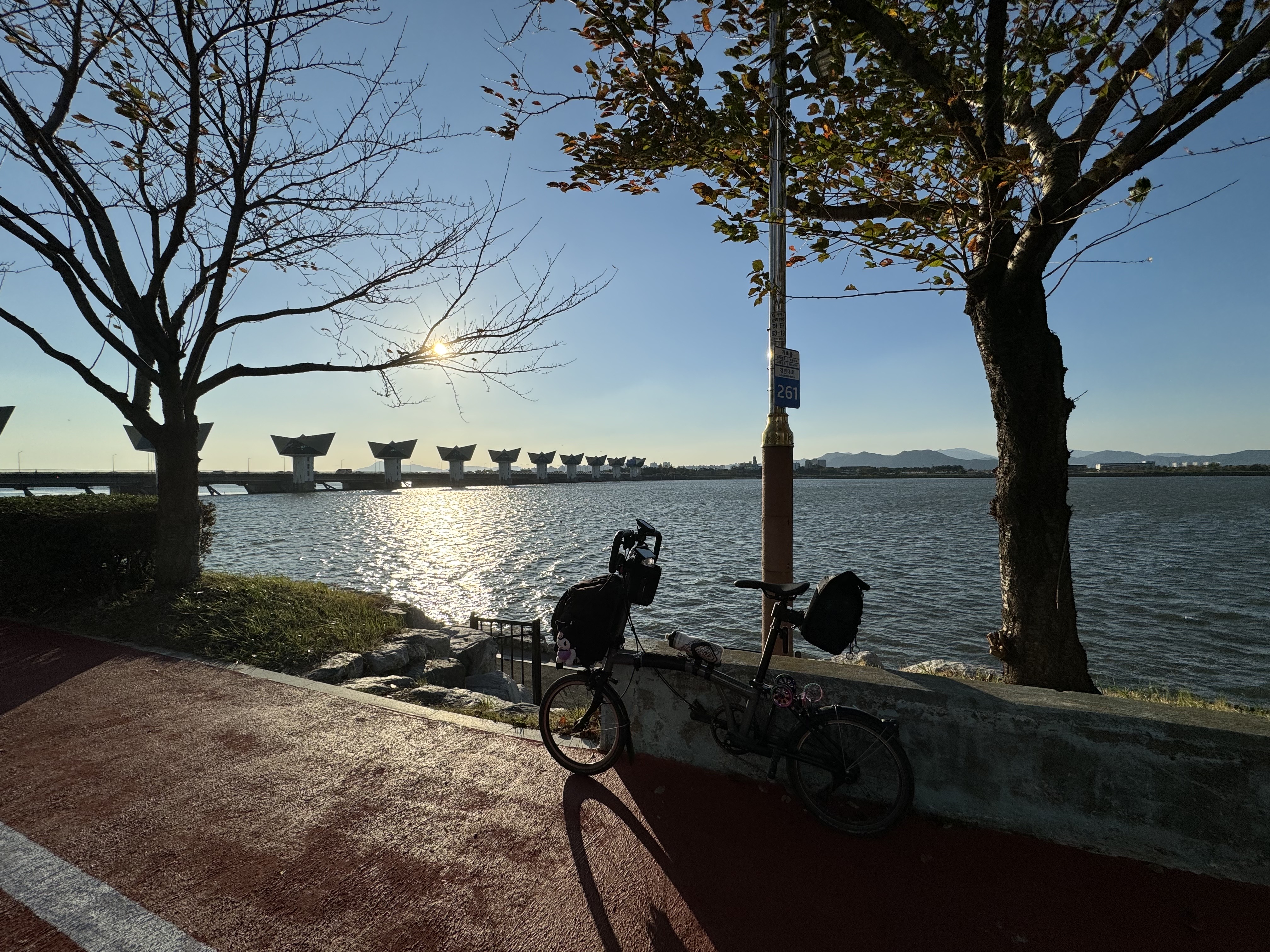 마지막 난관인 을숙도까지의 라이딩을 무사히 마치고 낙동강 종주의 최종 목적지인 낙동강하굿둑 인증센터에 도착하니 로드를 타고 왔을 때는 느끼지 못 한 마지막 안도감이 물 밀듯이 밀려왔다. 이제까지의 브롬톤 종주는 항상 다른 사람과 함께였는데 이번에는 혼자 와서 더 그런 걸수도 있었겠다.