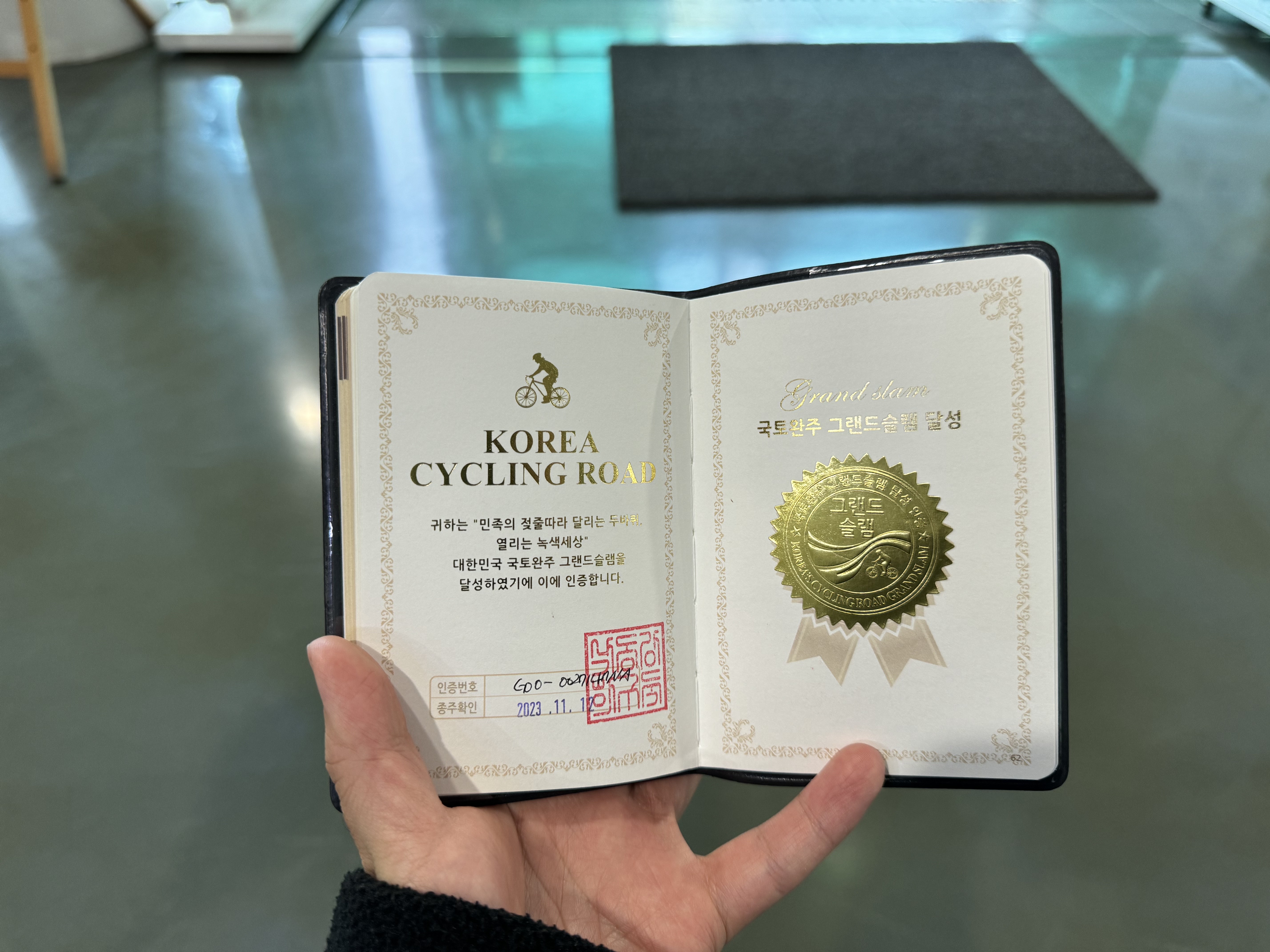 하여튼 많은 우여곡절이 있었지만 국토종주 수첩을 새로 구매하고 1년 내에 그랜드슬램 달성하기 목표를 이루니 이렇게 뿌듯할 수가 없었다. 낙차만 아니었다면 9월이나 10월쯤 진작에 그랜드슬램을 마쳤을텐데 몸이 회복된 후로도 태풍이네, 장마네, 비네 해서 종주를 도대체 몇 번을 취소 했는지...