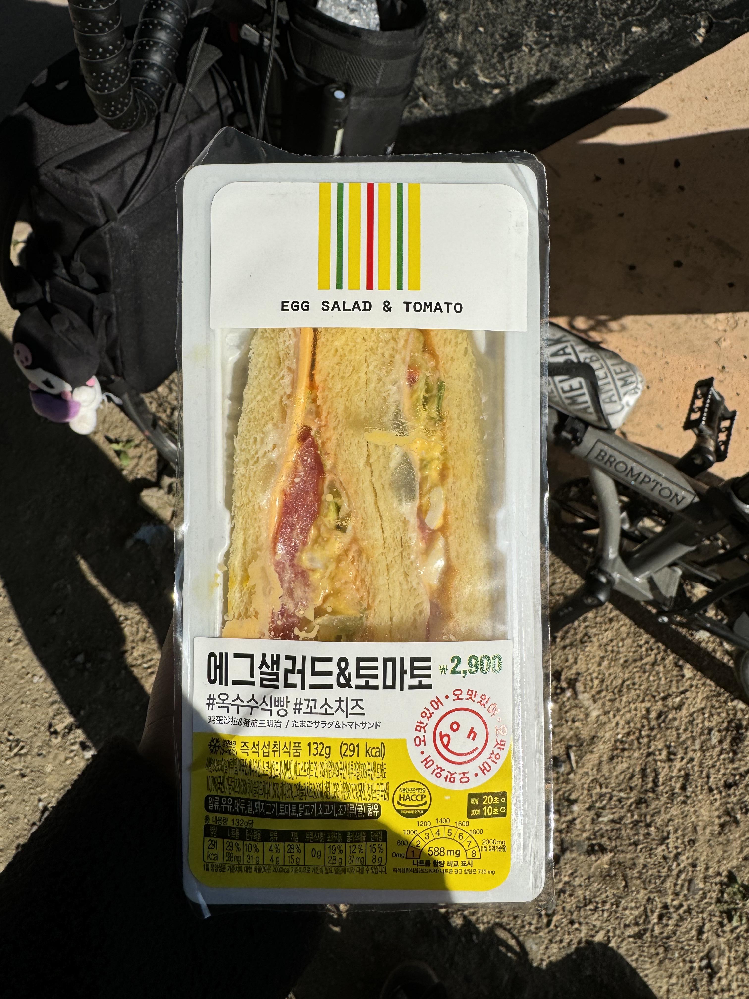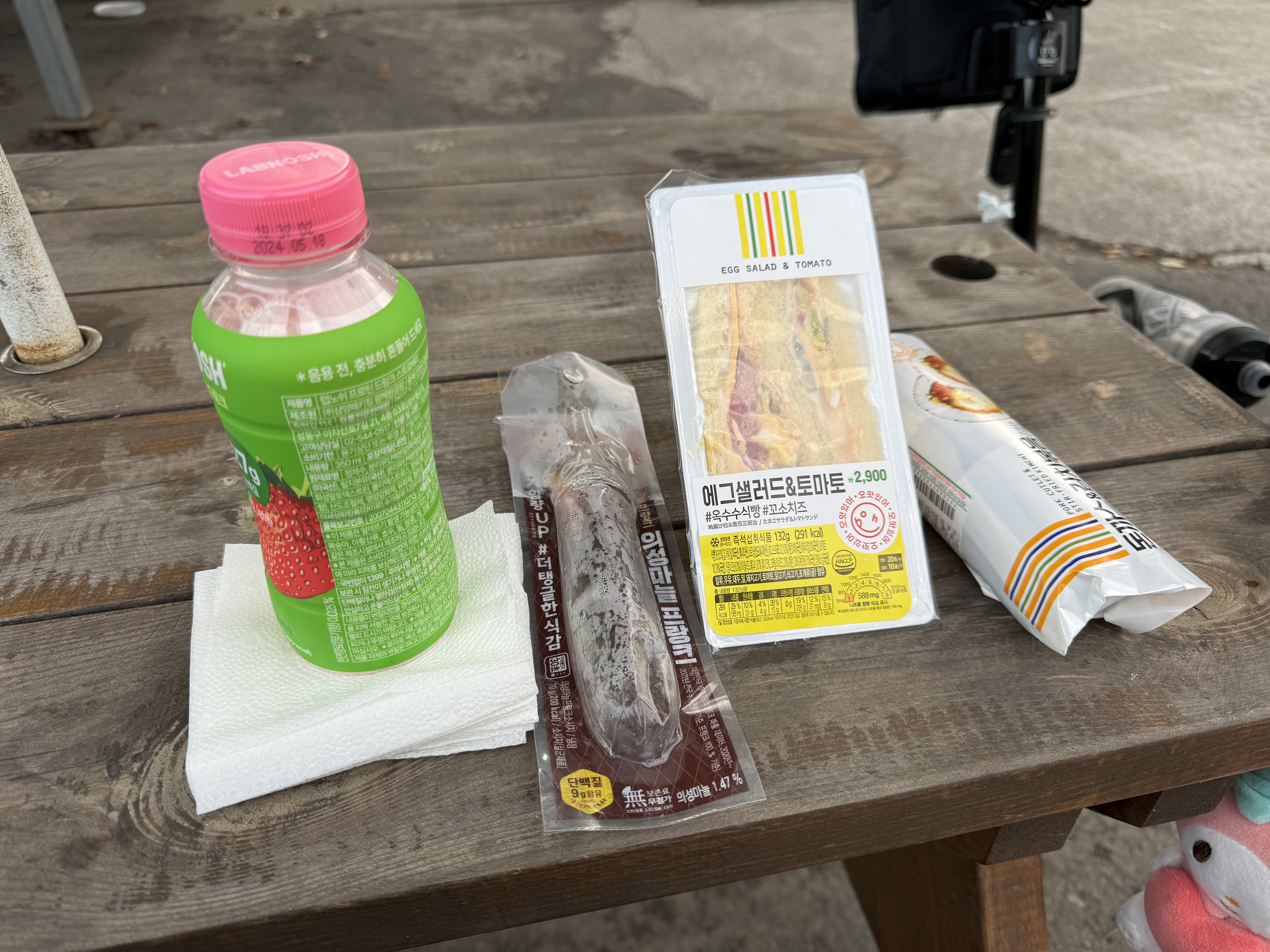 적교장에서 아침 7시에 나와서 편의점에서 간단히 밥을 먹고 출발하기로 했다. 근데... 나는 왜 자꾸 당장 먹지도 않을 걸 미리 사서 짐만 늘어나게 하는지 모르겠다. 사진의 샌드위치는 먹지 않고 가방에 잘 보관 하다가 거의 저녁 시간이 다 되어서야 먹었다. 하긴 언제 편의점이 있을지 모르니 미리미리 준비해두는 것도 나쁘지 않을 수 있겠다.