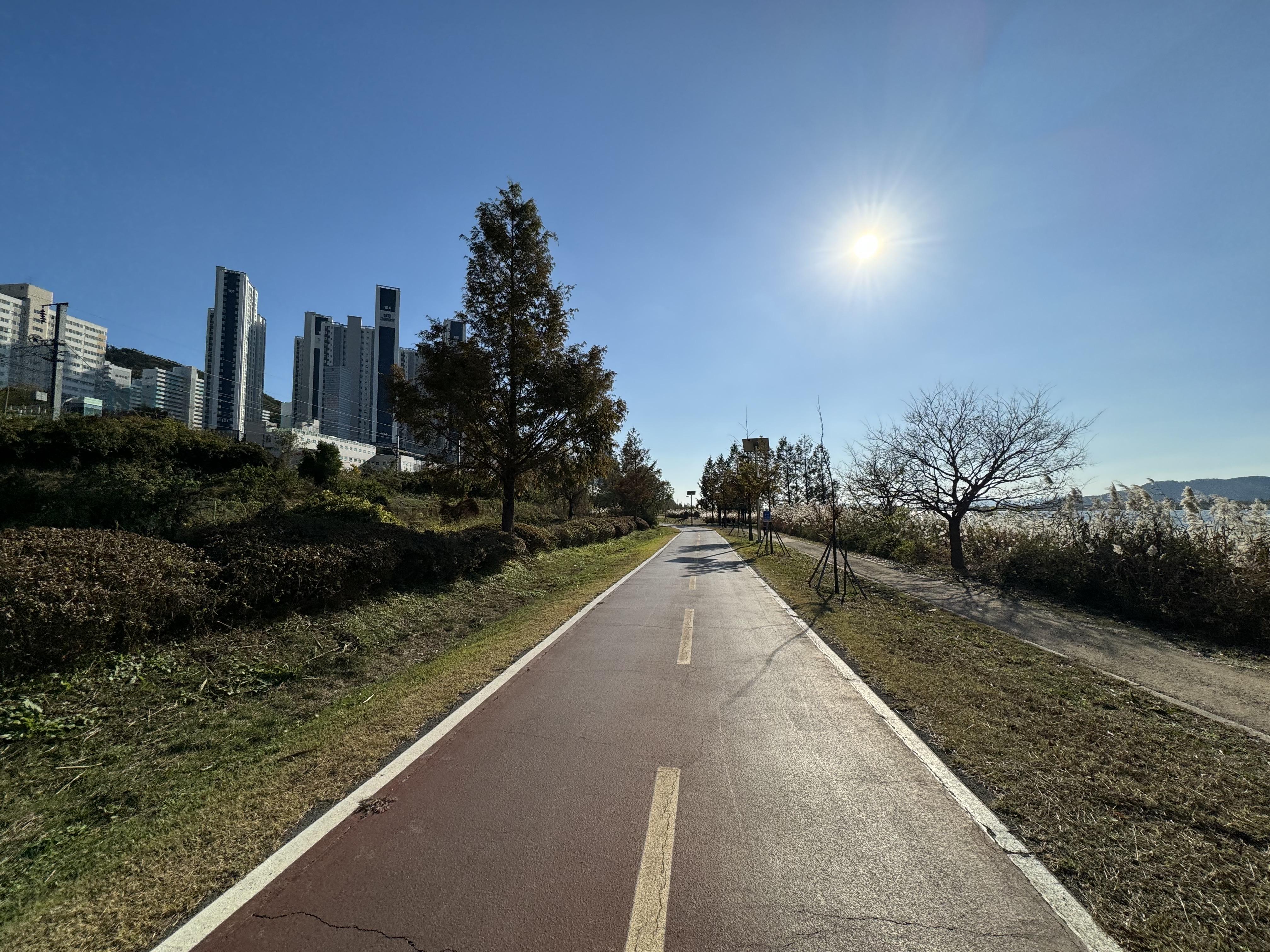 황산공원을 벗어나서 조금만 더 달리면 부산 시내로 진입할 수 있는데 부산 시내로 진입하면 낙동강 종주가 끝나는 건 아니고 부산 시내에 진입해서도 30km 정도는 더 달려야 최종 목적지인 낙동강하굿둑까지 도착할 수 있다. 예전에 왔었을 때는 공원 내에 산책하는 사람과 라이딩을 하는 사람이 많아서 달리기가 힘들었었는데 이번 낙동강 종주는 날씨 덕분인지 사람이 적어서 나름 달리기가 수월했다.