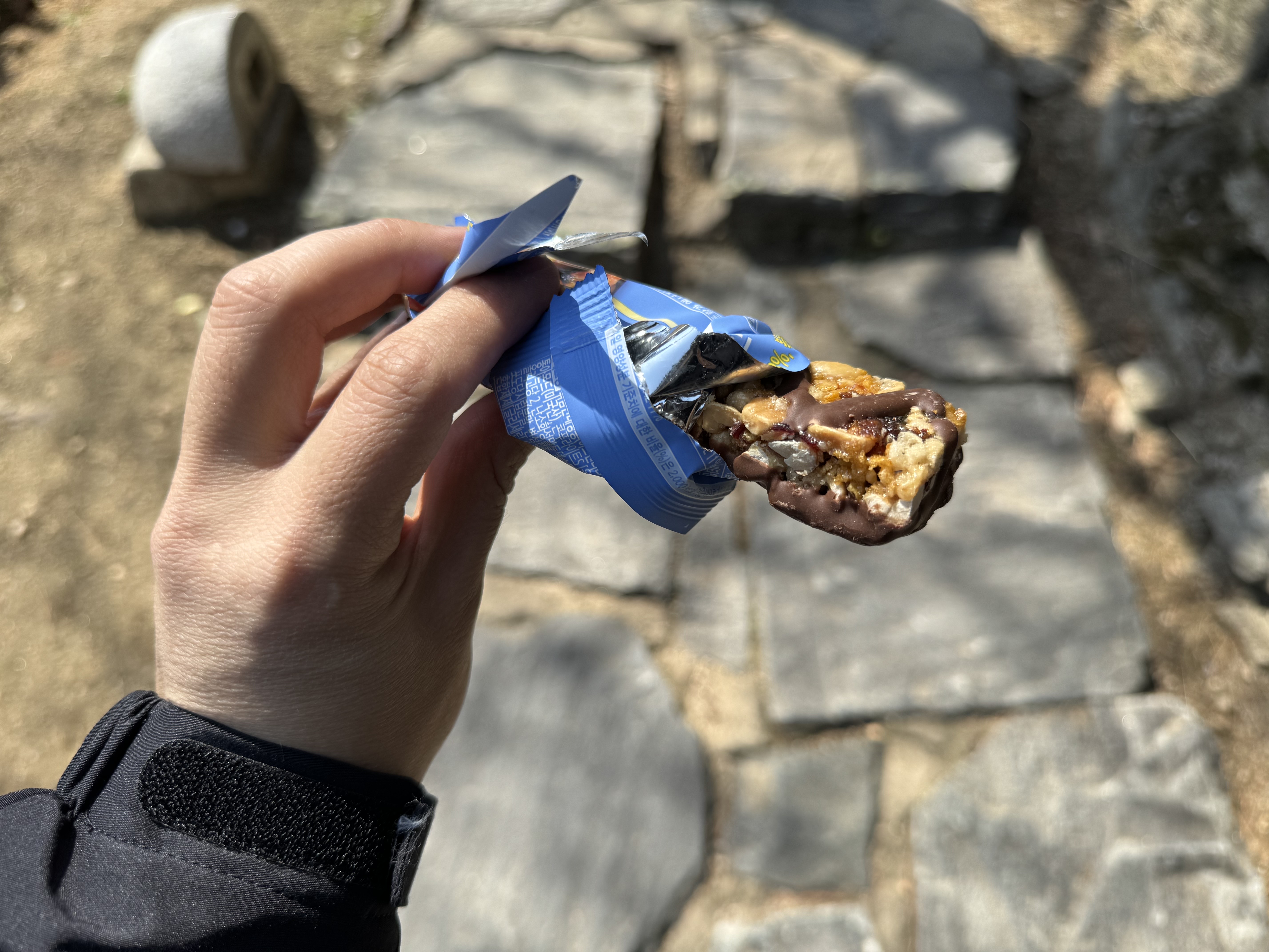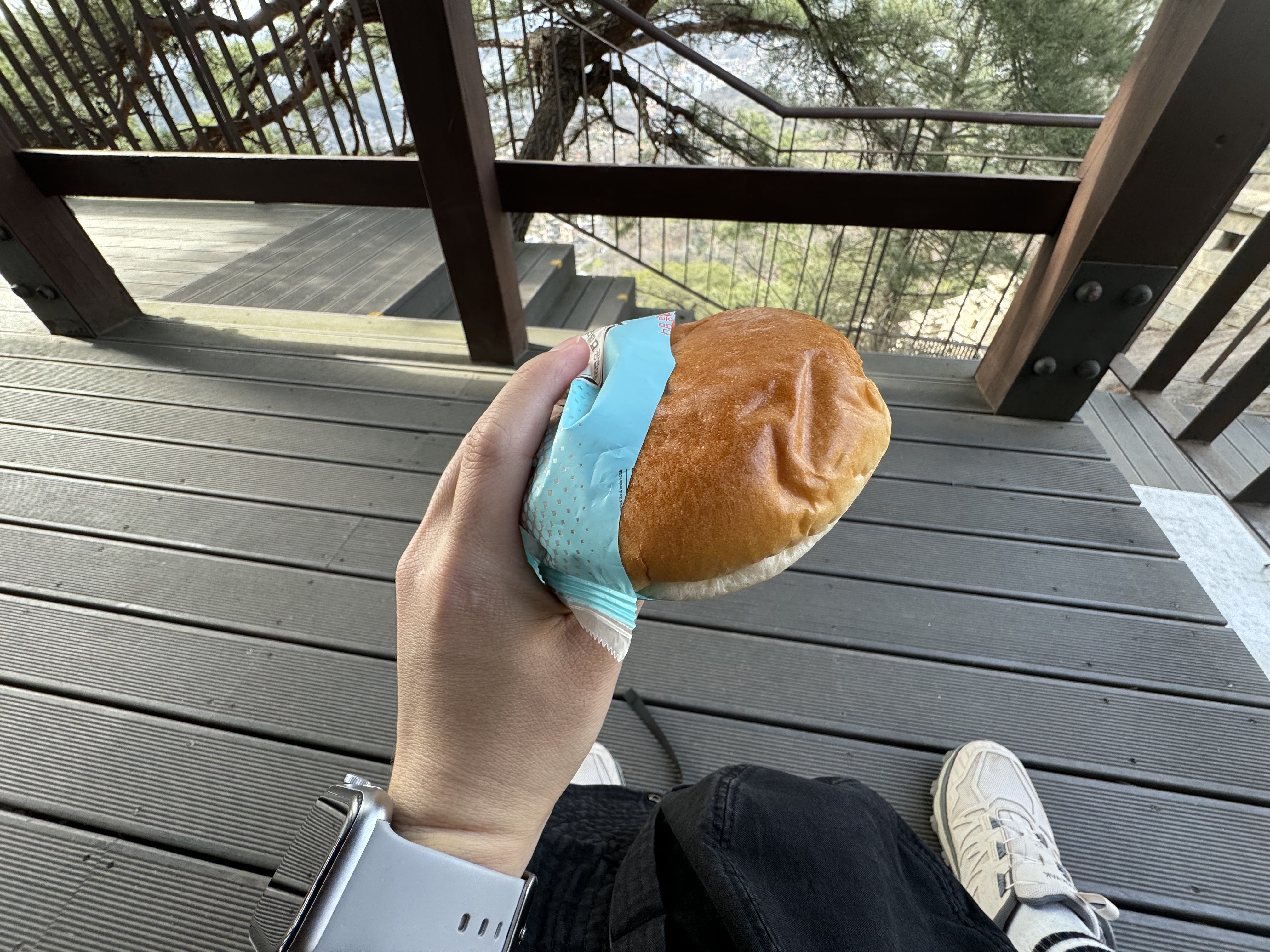 사실 백악산도 자전거를 타고 많이 왔던 곳인데 이번에 한양도성 순성길을 돌면서 느낀 건 자전거를 타고 올라오는 건 운동도 아니다 였다. 걸어서 올라가는 게 찐이다. 자전거를 타고 올라오는 것보다 8,345,471배는 더 힘든 것 같았다. 그냥 끝까지 올라가려다가 도저히 안 될 것 같아서 편의점에서 미리 구매해온 빵을 꺼내물었다.