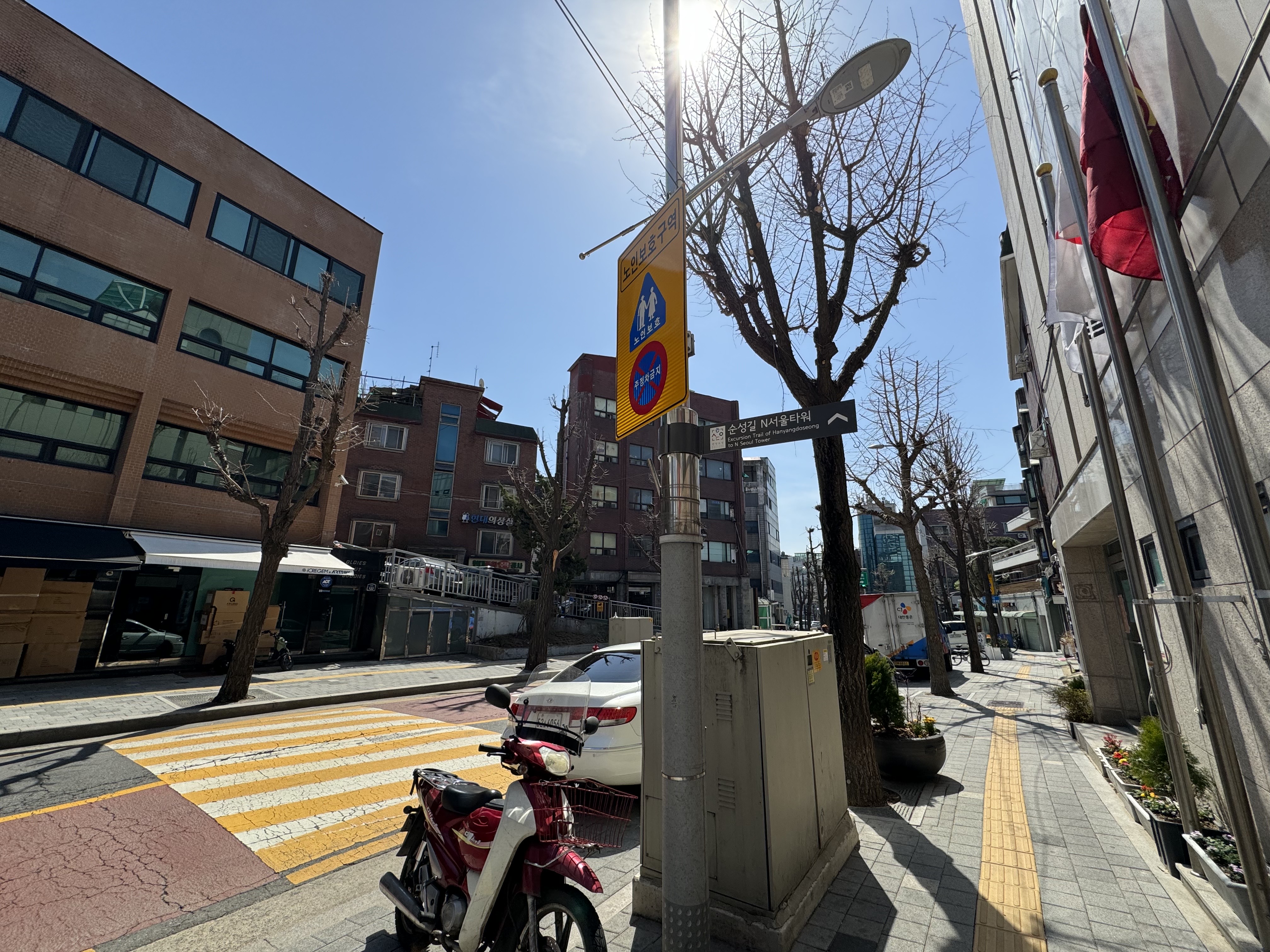 그 뒤로는 안내 표지를 따라서 주택가를 계속 걷다보면 신라면세점이 나온다. 물론 신라면세점으로 갈 건 아니고 순성길 N서울타워 안내 표지를 따라서 계속 걸어갔다. 이쪽 골목은 편의점, 나들슈퍼, 카페가 있어서 중간에 힘들면 쉬어갈 수도 있는데 벌써부터 쉬고 싶은 마음이 한가득이었다.