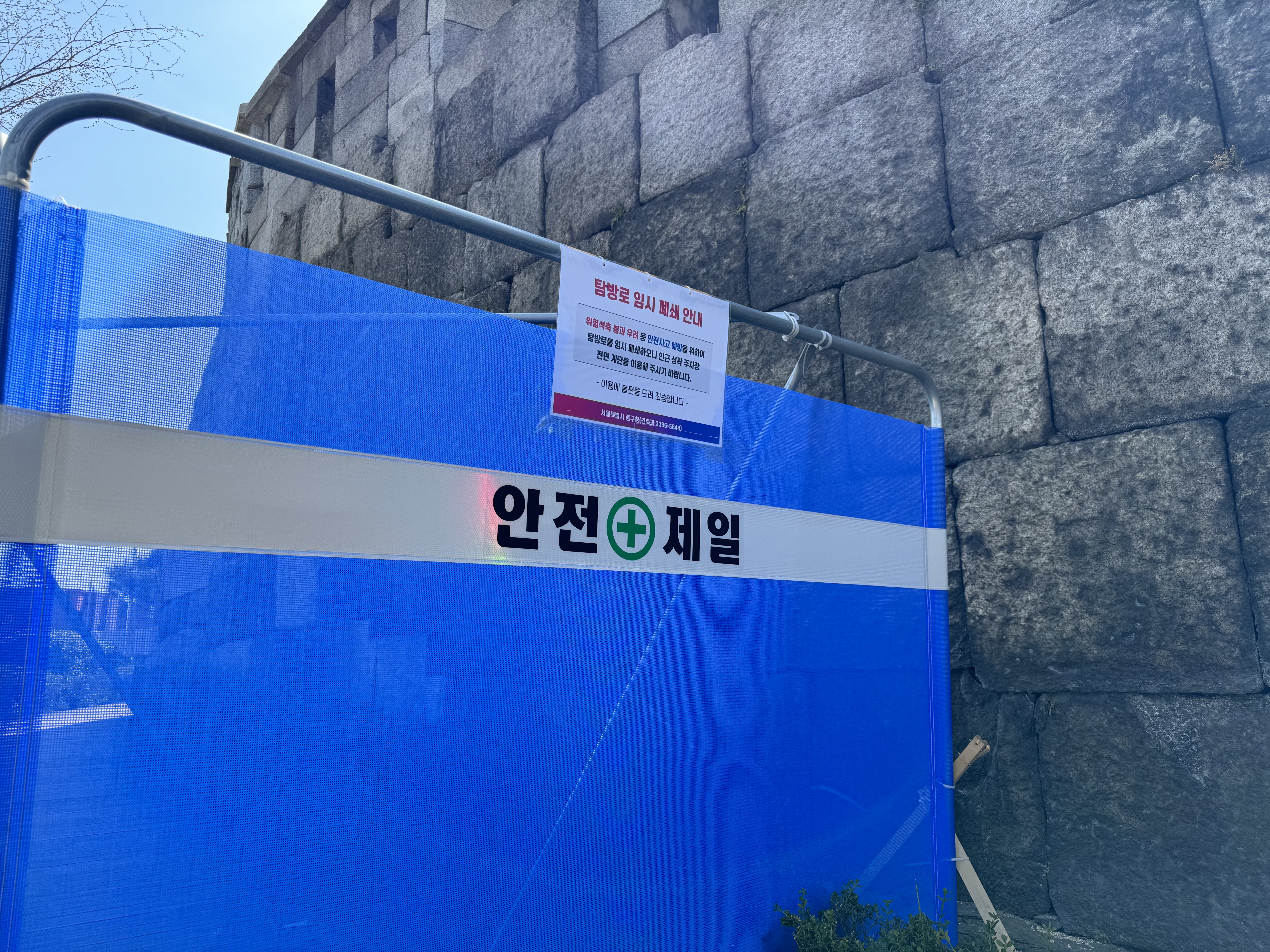 계속해서 가다보니 공사 중이라고 길이 막혀있었는데 바깥 길로 돌아가는 김에 공영주차장에 있는 화장실에 들렀다. 한양도성 순성길을 걷다보면 그래도 인왕산, 백악산 구간을 제외하고는 간간이 화장실은 있는 편이었다. 백악산 구간에도 화장실이 있기는 했다.