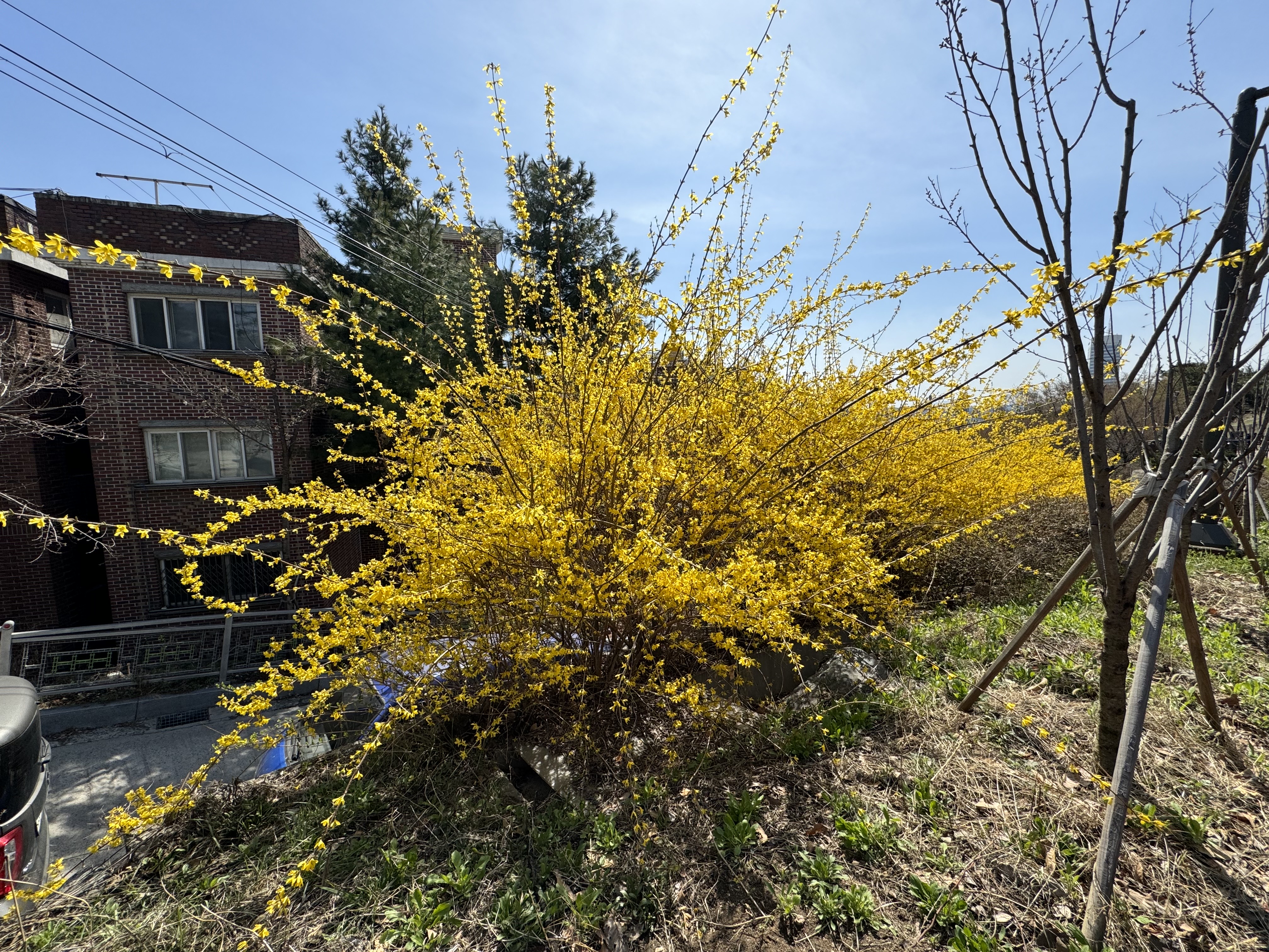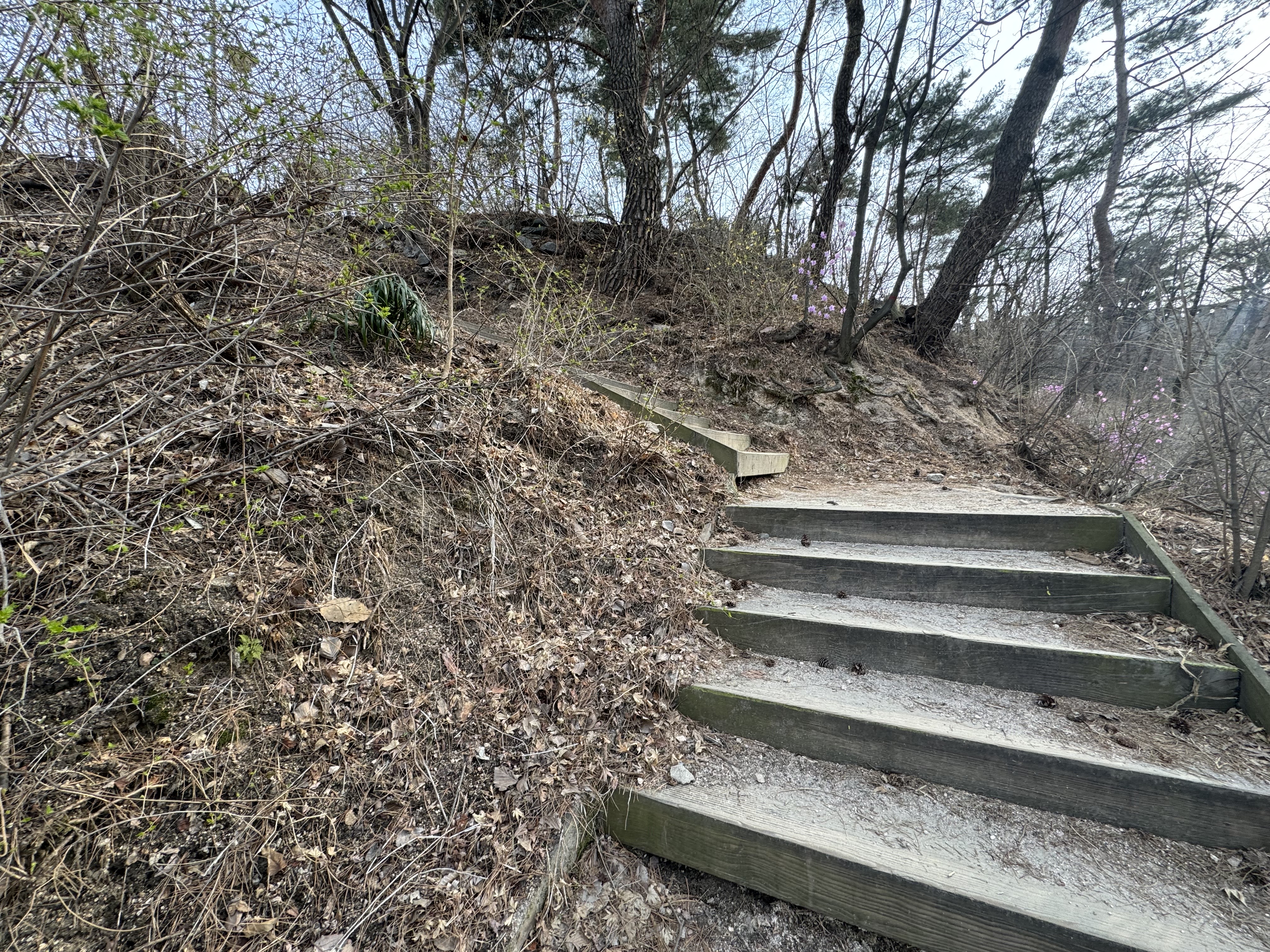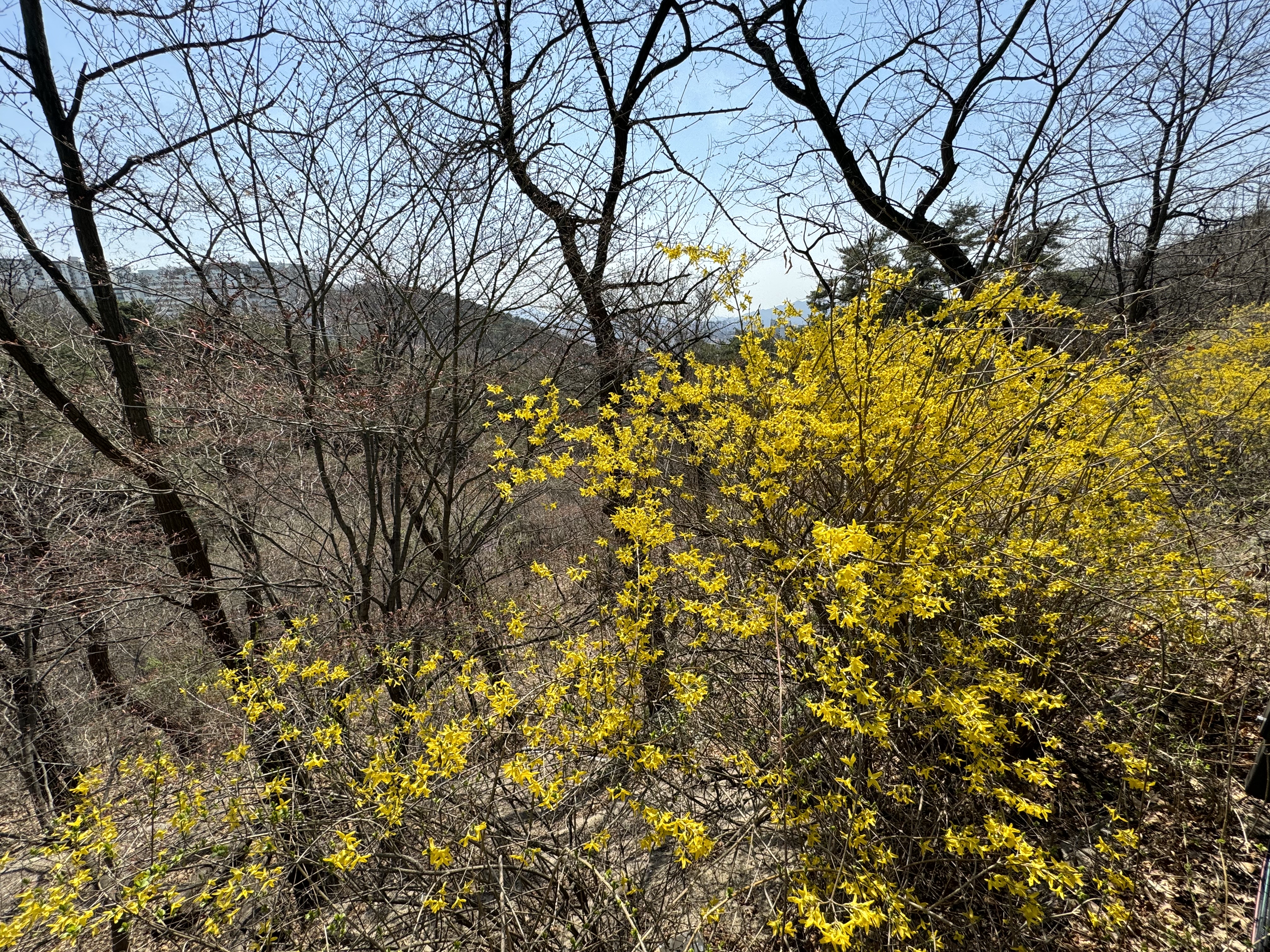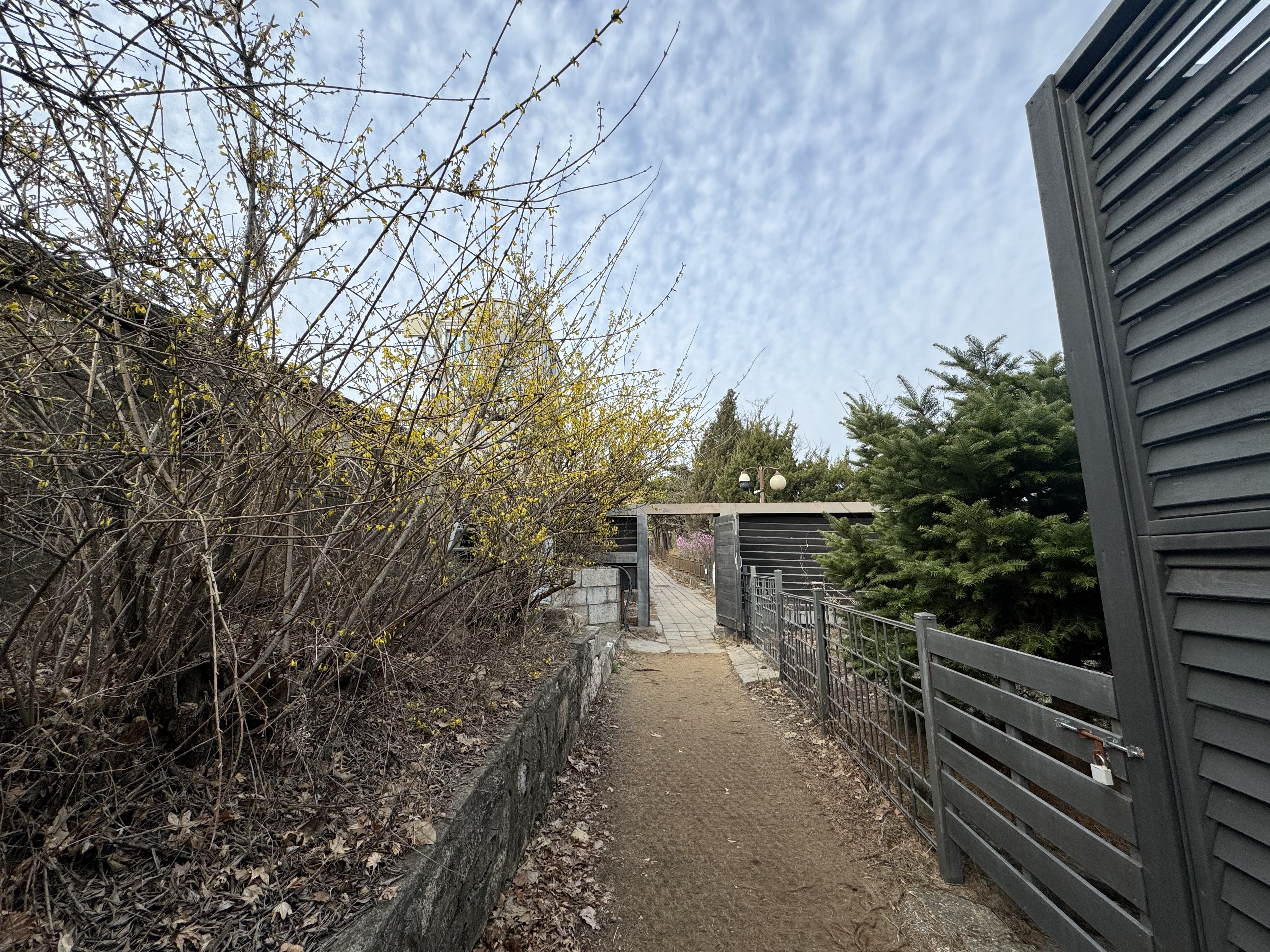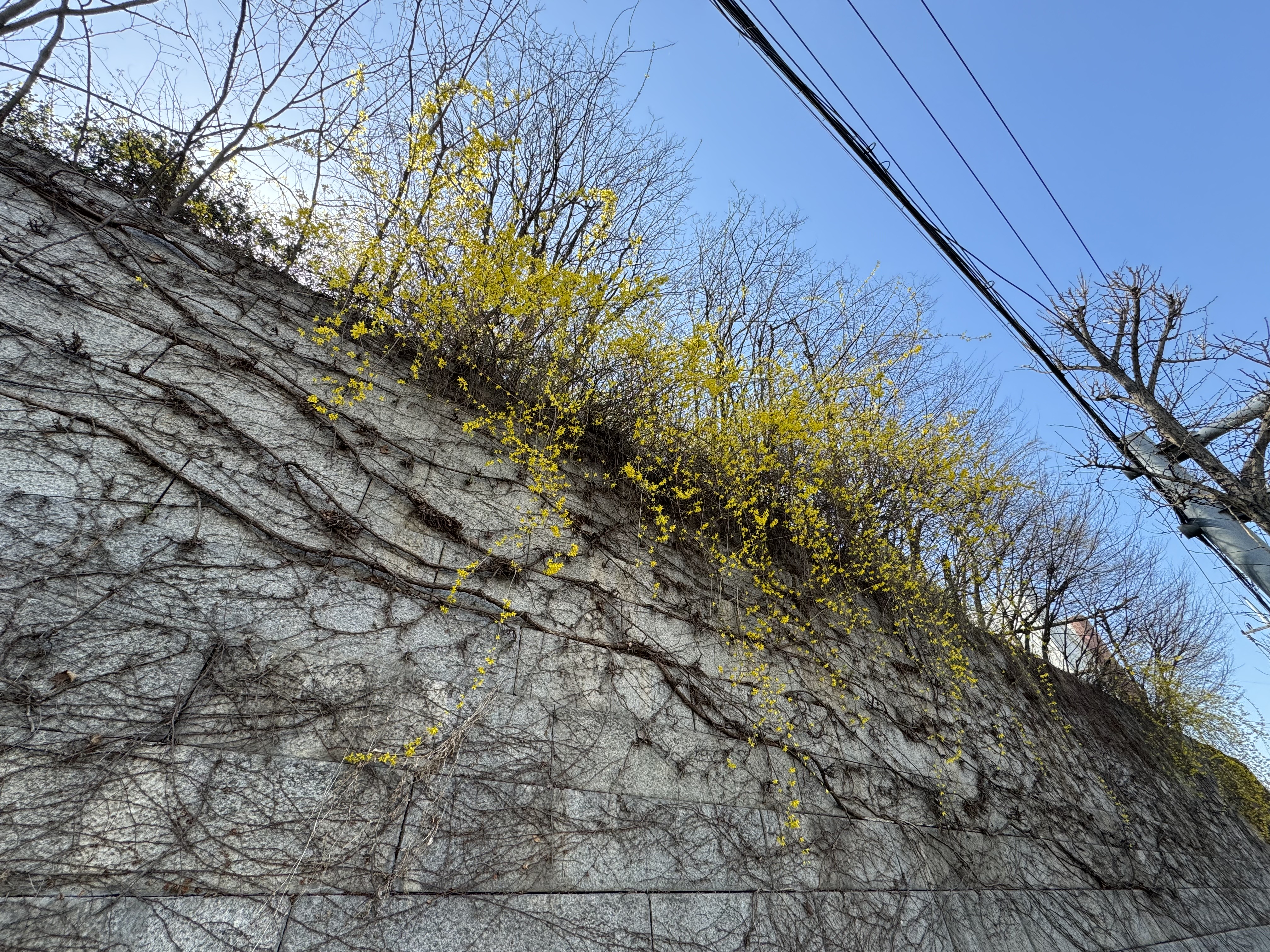 날씨가 따뜻해서 그런지 여기저기 개나리가 많이 피어있었다. 위에도 적었지만 시간이 널널할 거라고 생각해서 사진도 몇 번씩이나 찍으면서 살방살방 걷고 있으니 갑작스런 오르막이 나타났다. 솔직히... 적잖이 당황했다. 그러고보니 여기까지 오면서 카페가 하나 있길래 커피를 한 잔 하려다가 그냥 왔는데 그랬으면 큰일날 뻔 했다.
