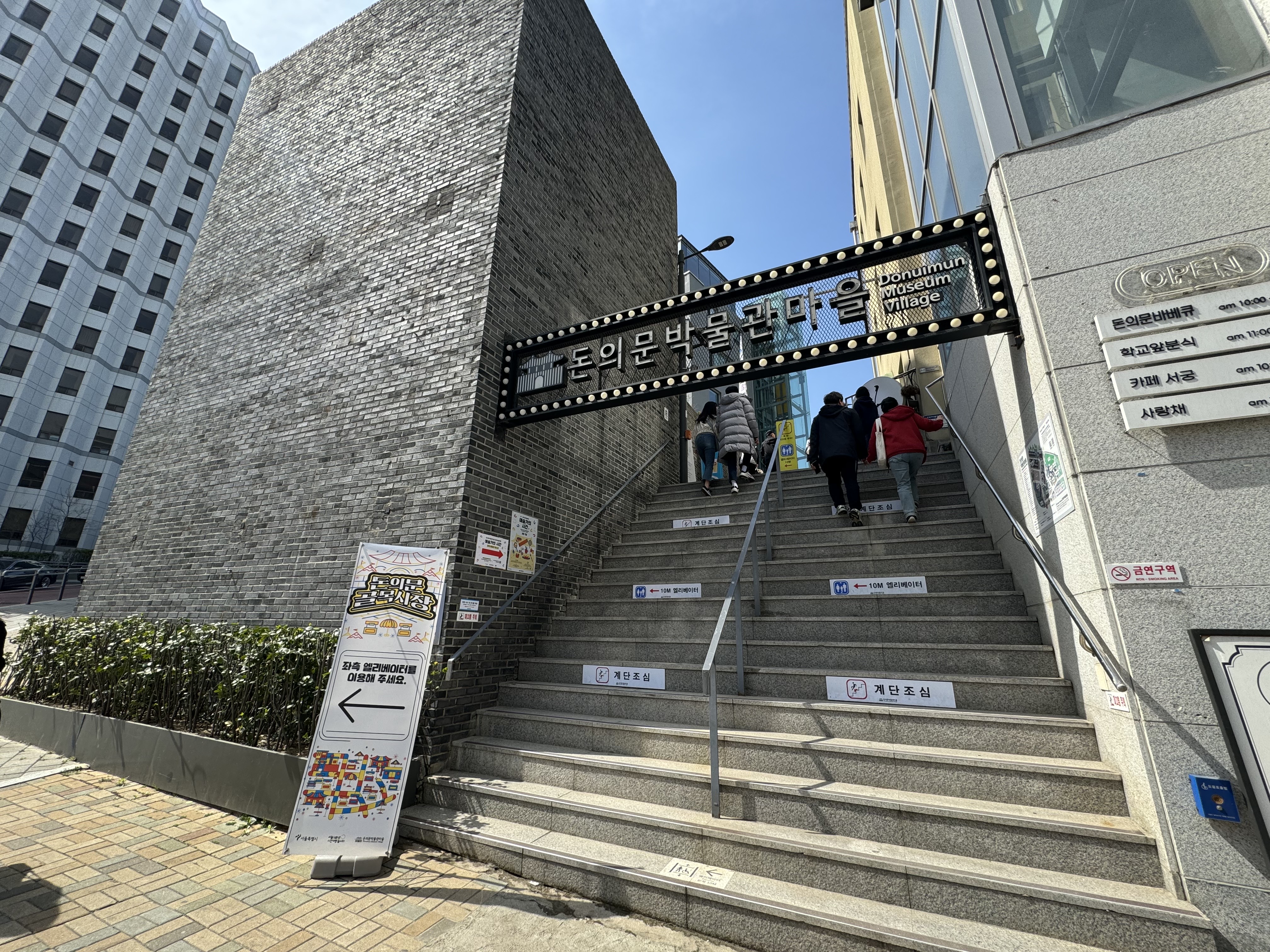 한양도성 순성길 4코스 (인왕산 구간) 의 스탬프는 돈의문박물관마을에 있는데 여기에서 시간을 좀 많이 잡아먹었다. 도대체 스탬프가 어디에 있는건지 한참을 찾아헤맸는데 아래 사진에 보이는 계단을 올라가서 앞으로 더 가면 있는 마을안내소의 입구를 들어가지 말고 그 옆에 있는 작은 통로로 들어가면 그쪽에 스탬프가 위치해있다.