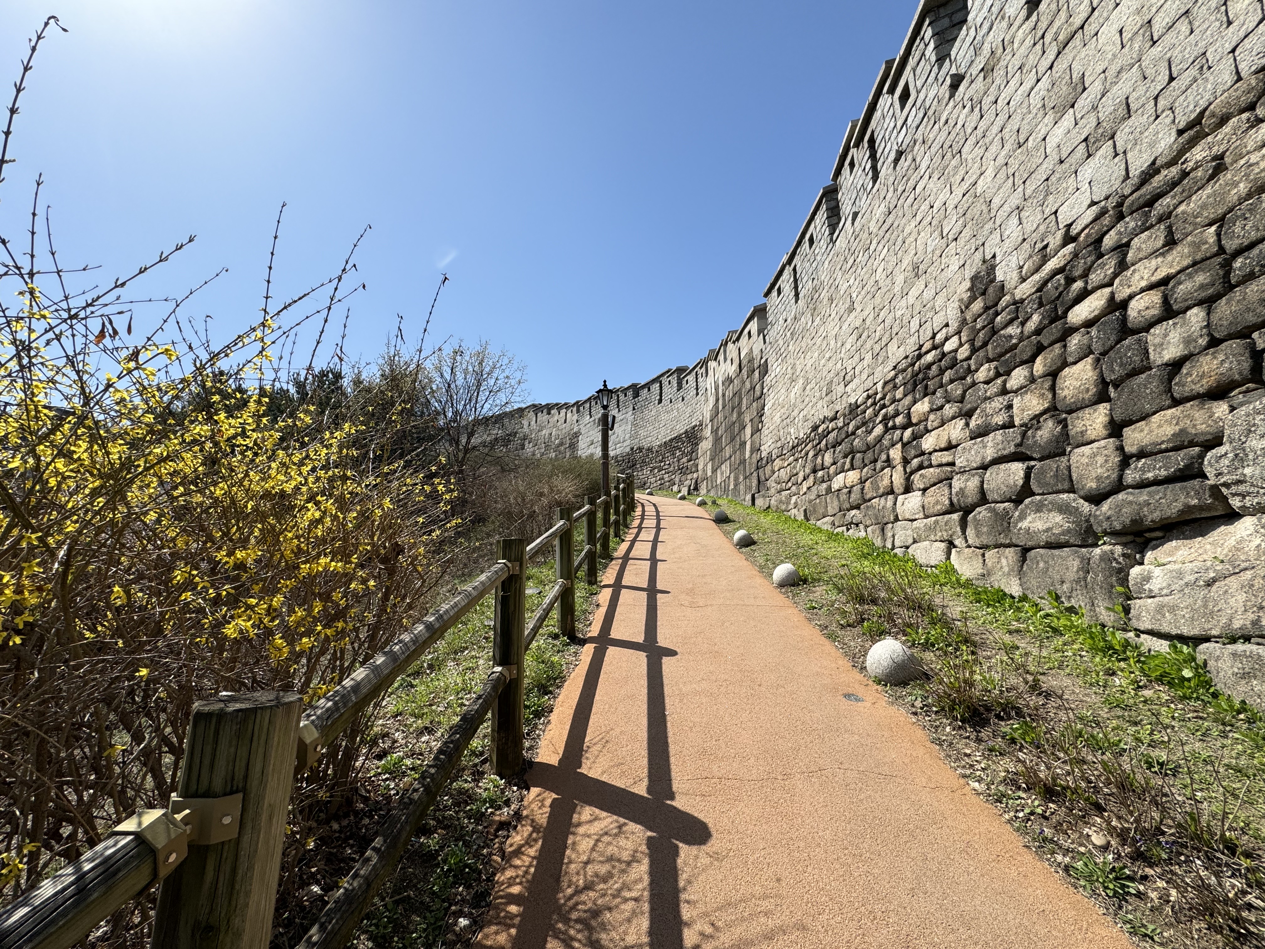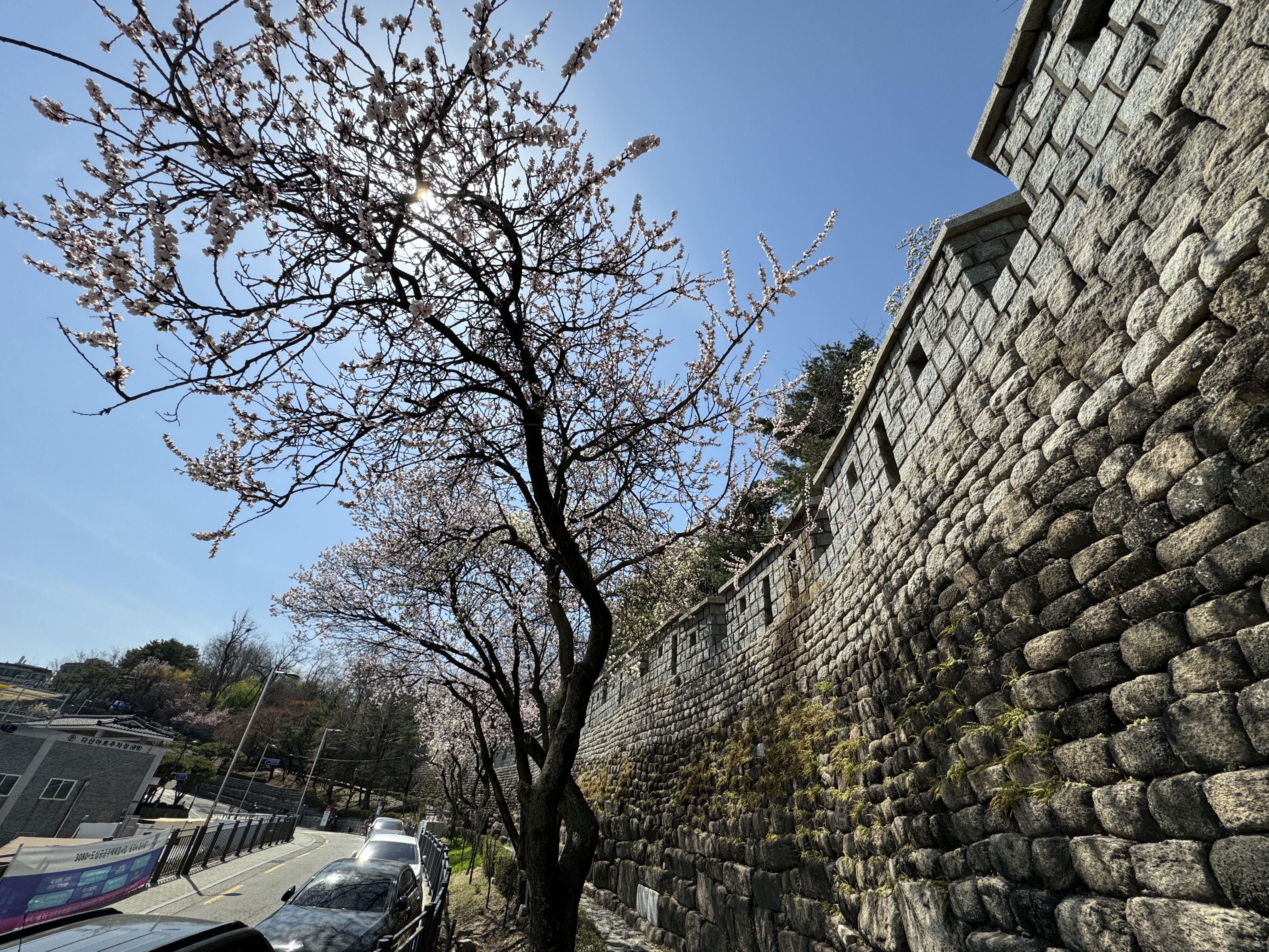 지나가던 분에게 부탁해서 사진도 남기고 다시 걸음을 옮겼다. 아마 이쪽으로 걷다보면 흥인지문 근처의 정그리다 카페 옆 골목으로 나올 것 같은 느낌이 들었다. 완전히 만개 하진 않았지만 개나리만이 아니라 간간이 벚꽃도 피어 있어서 나도 모르게 자꾸만 사진을 찍게 됐다.