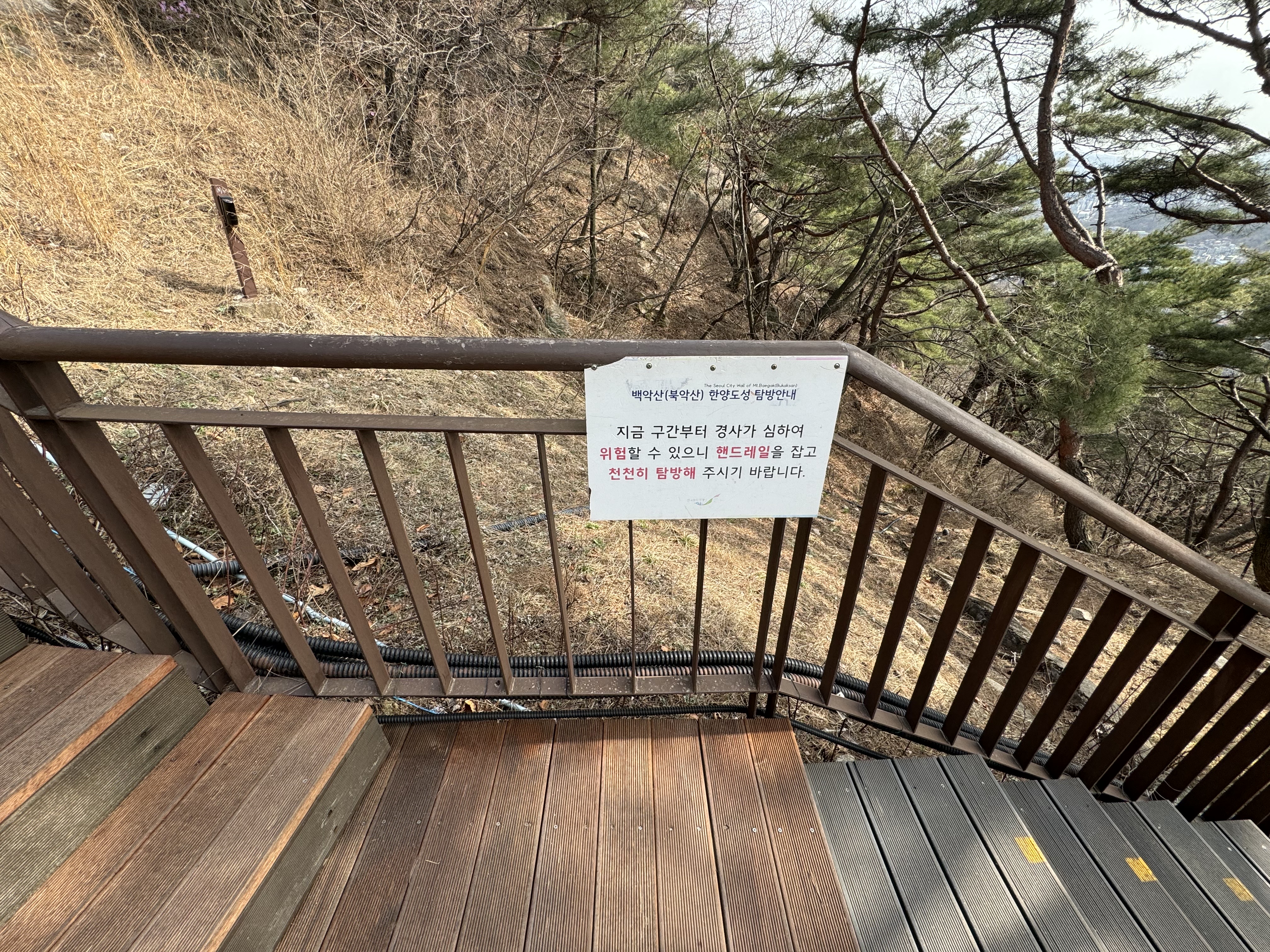오르다보면 아래처럼 지금 구간부터 경사가 심하다는 안내 문구가 나오는데 이쪽 구간부터는 정말 경사가 심했다. 한번인가 두번인가 미끄러질 뻔도 하고 역시 '악' 이 들어간 산은 가는 게 아니라더니 딱 그 말이 맞았다.